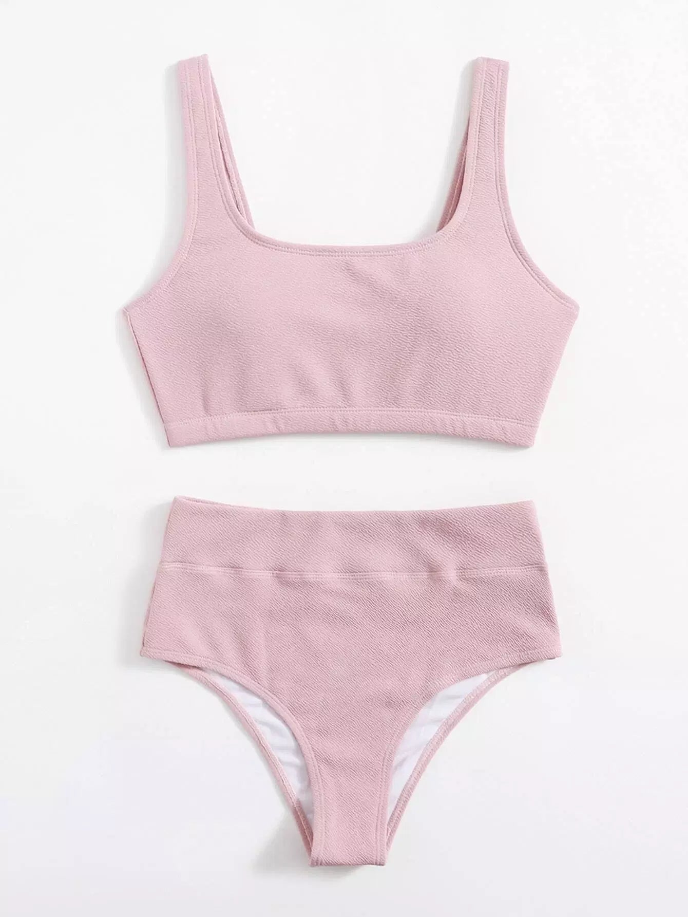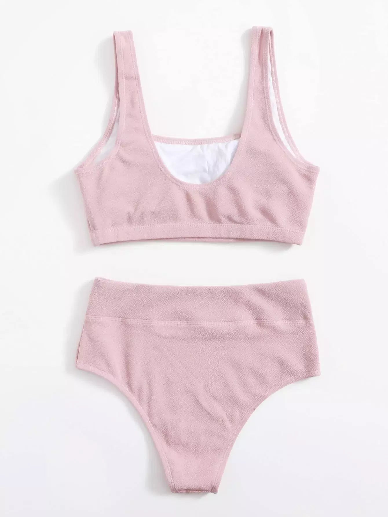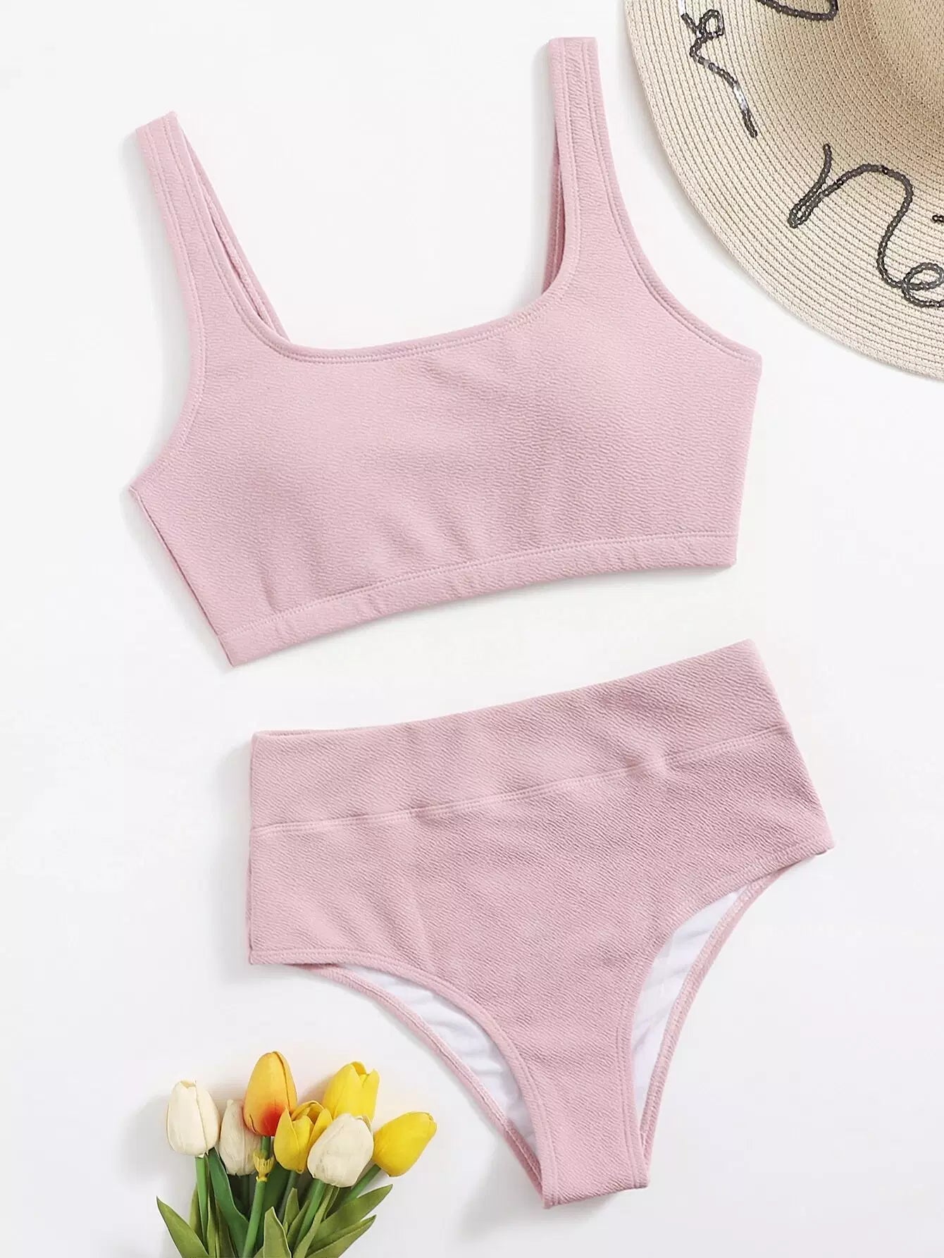بدلة سباحة بيكيني برقبة دائرية عالية الخصر