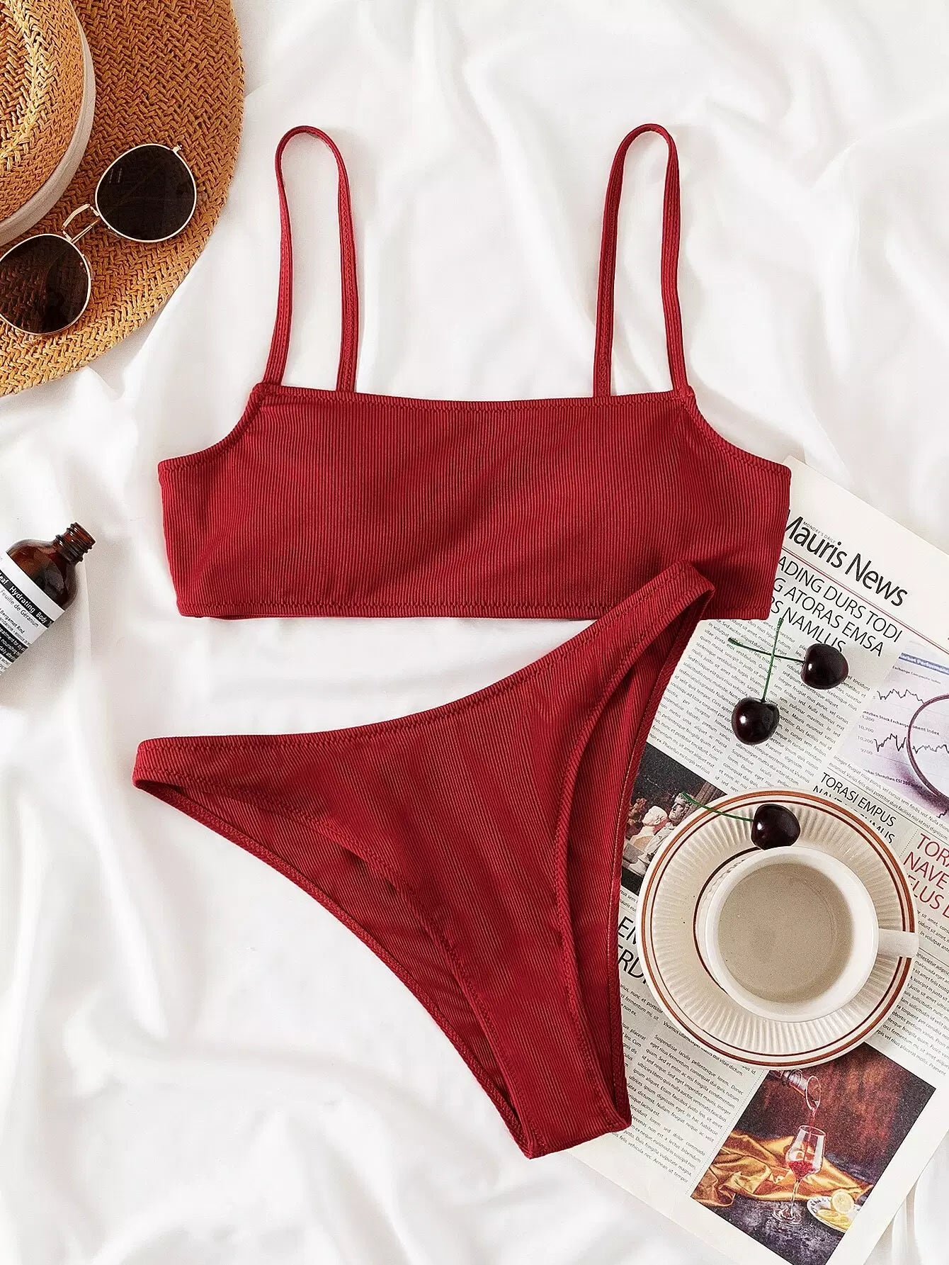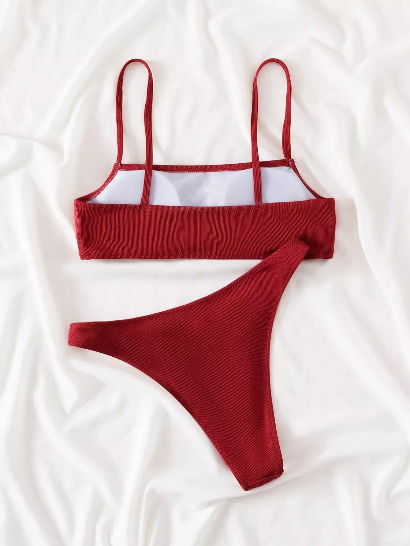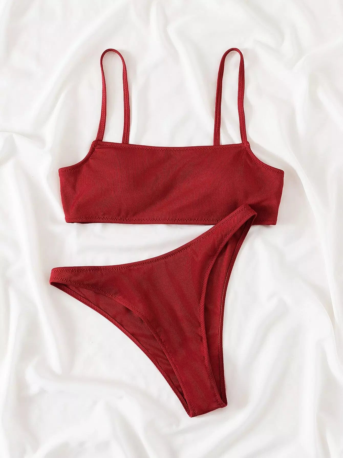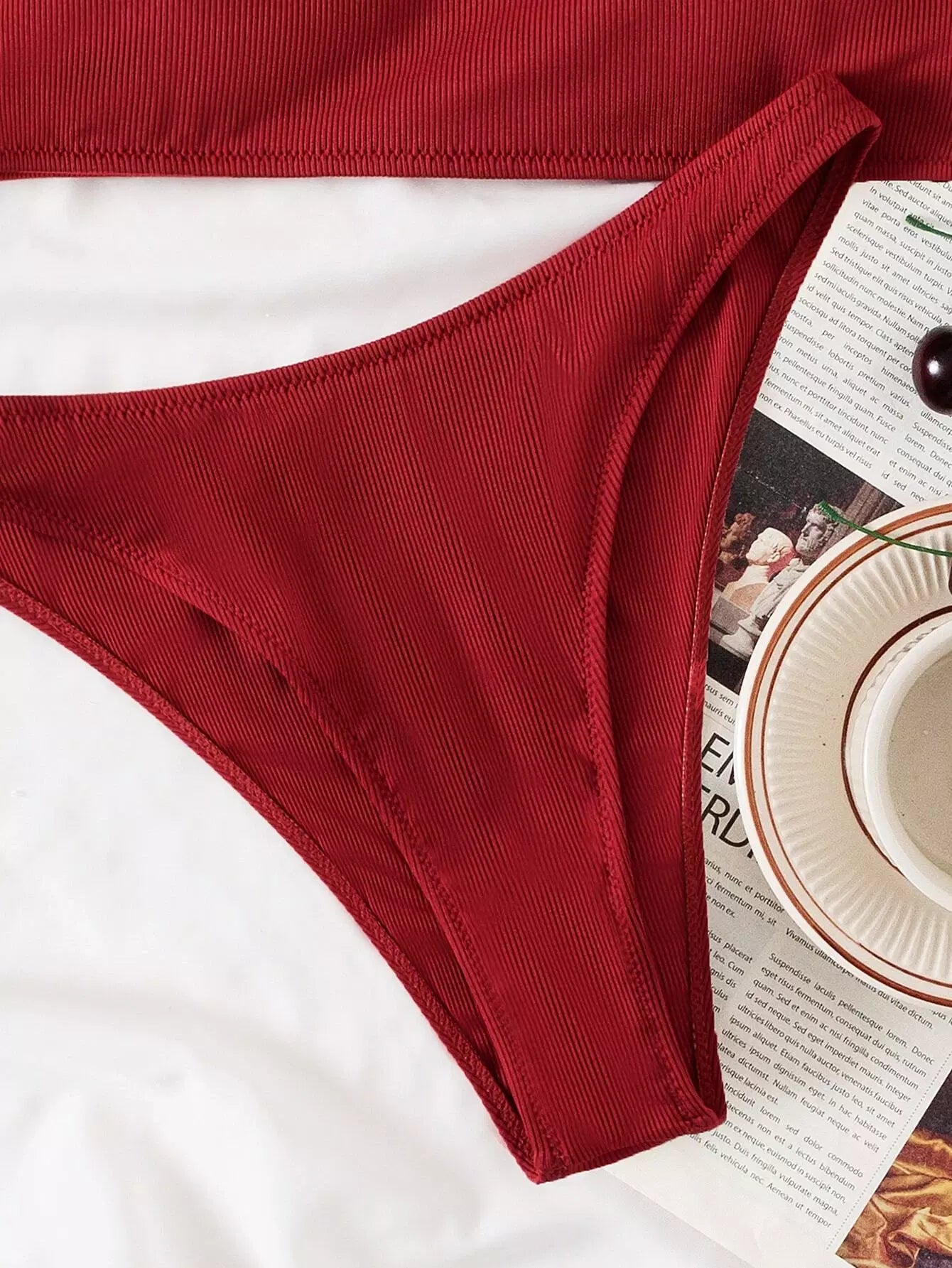 بدلة سباحة بيكيني سادة بقصّة عالية