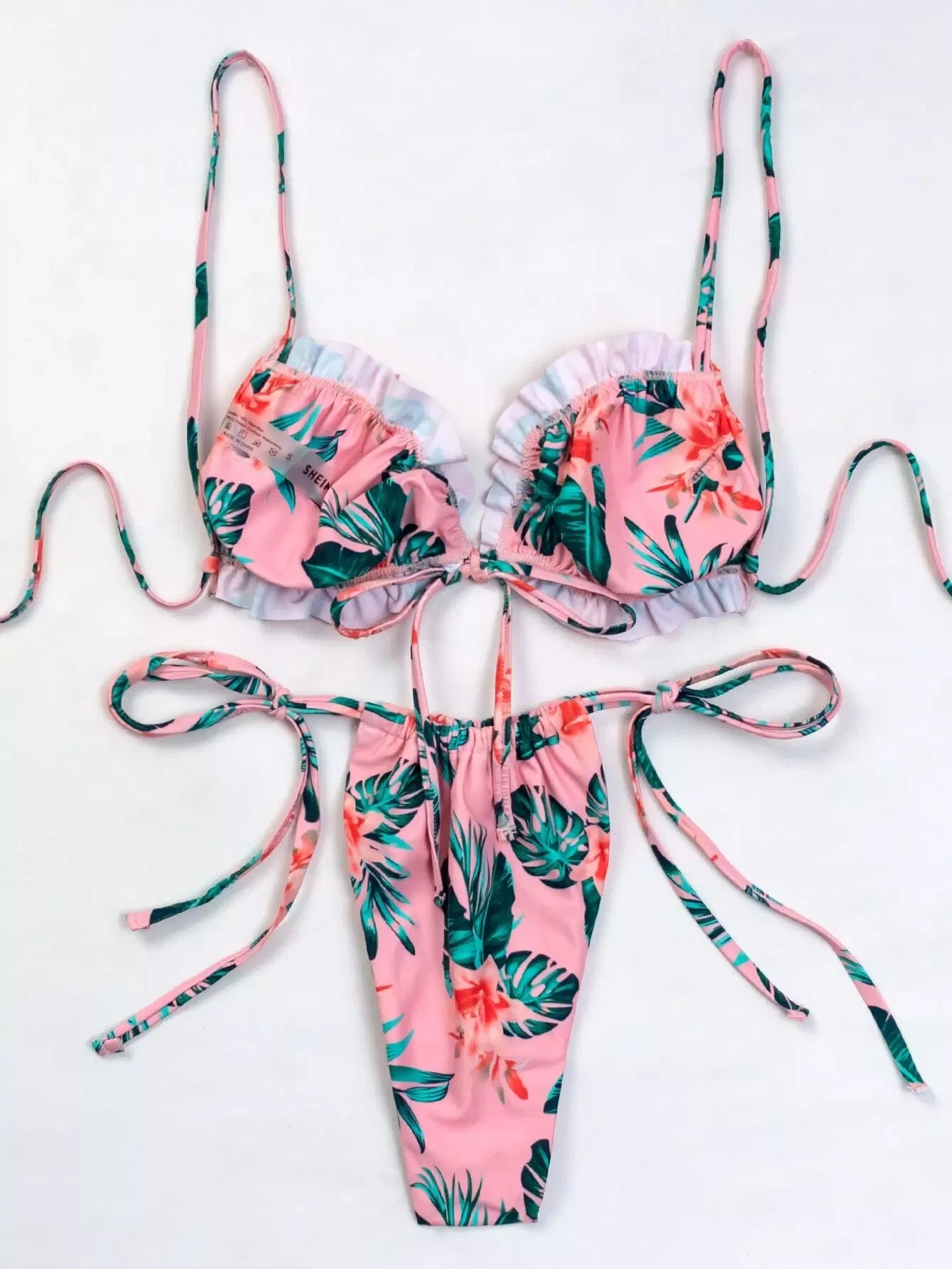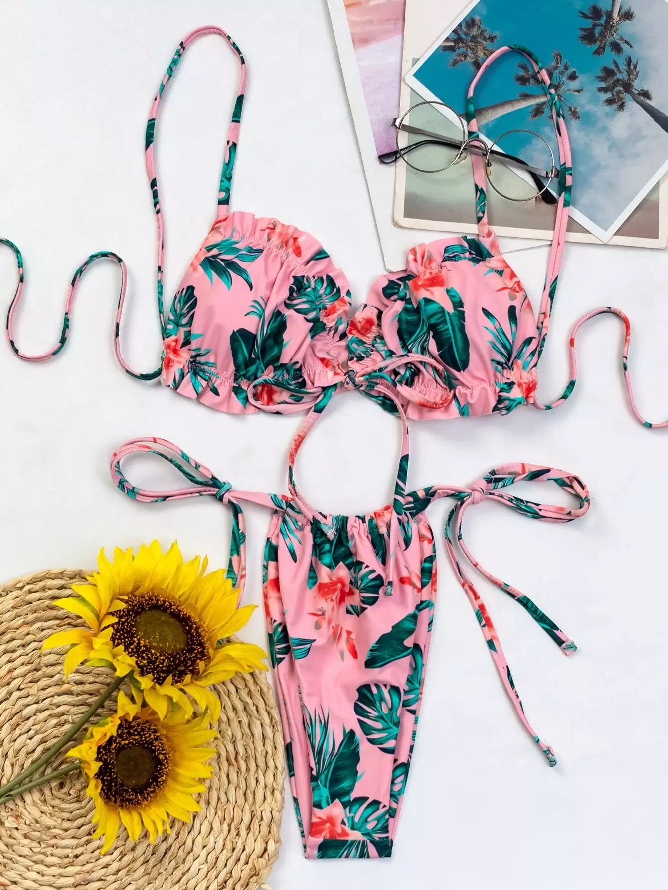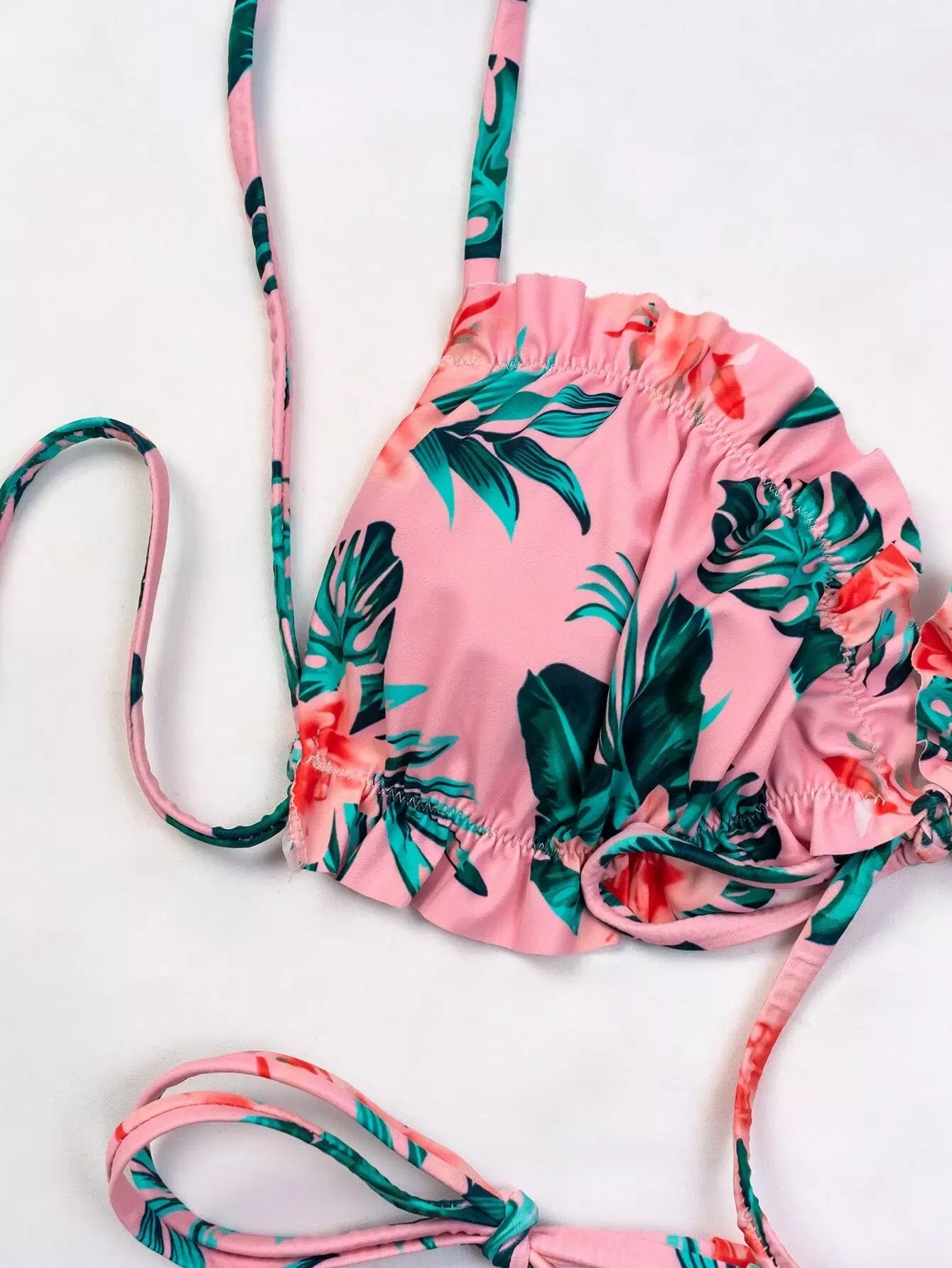 ملابس سباحة بيكيني برباط جانبي مزين بكشكشة استوائية