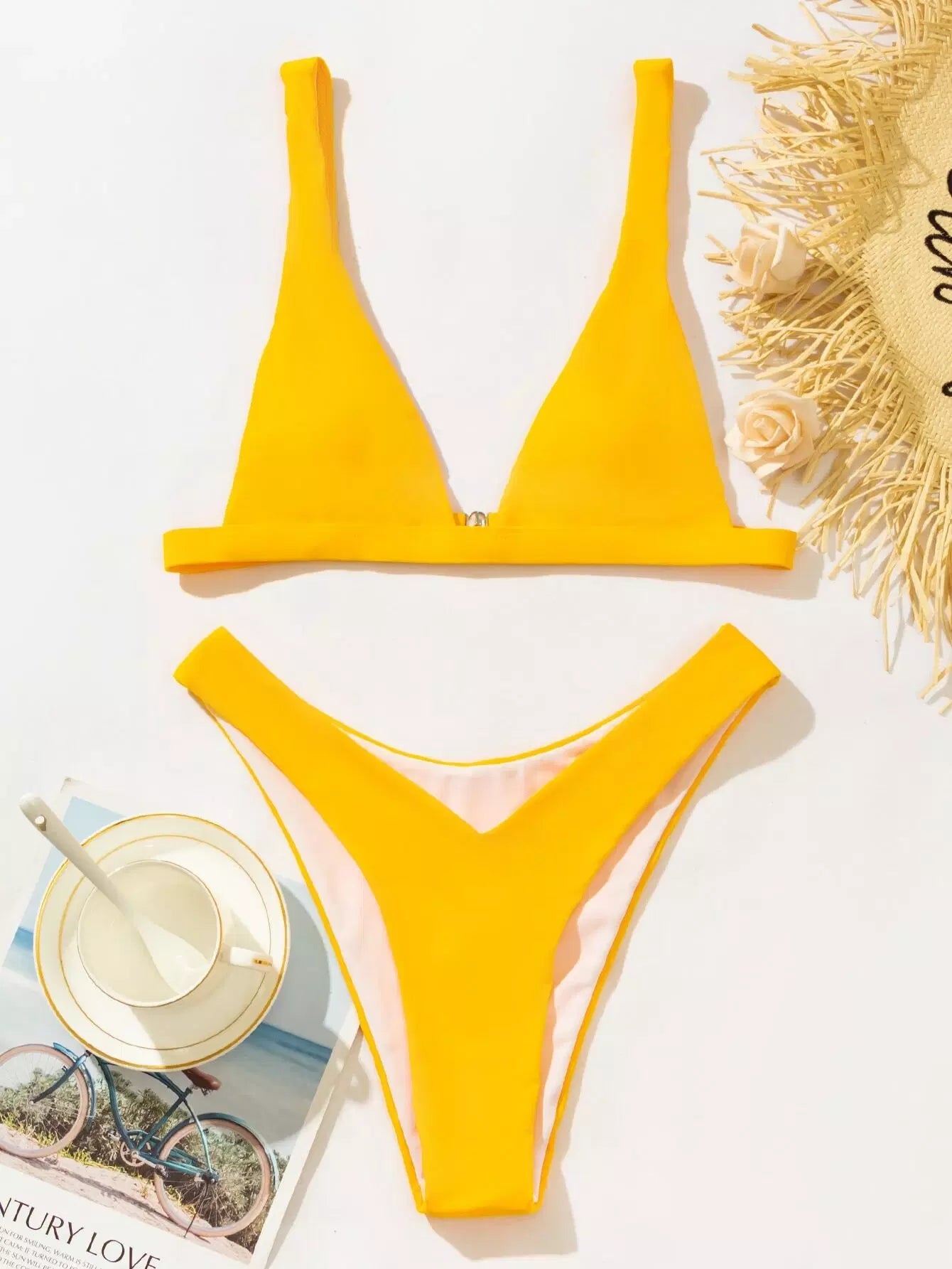 بدلة سباحة بيكيني برقبة على شكل V بقصّة عالية