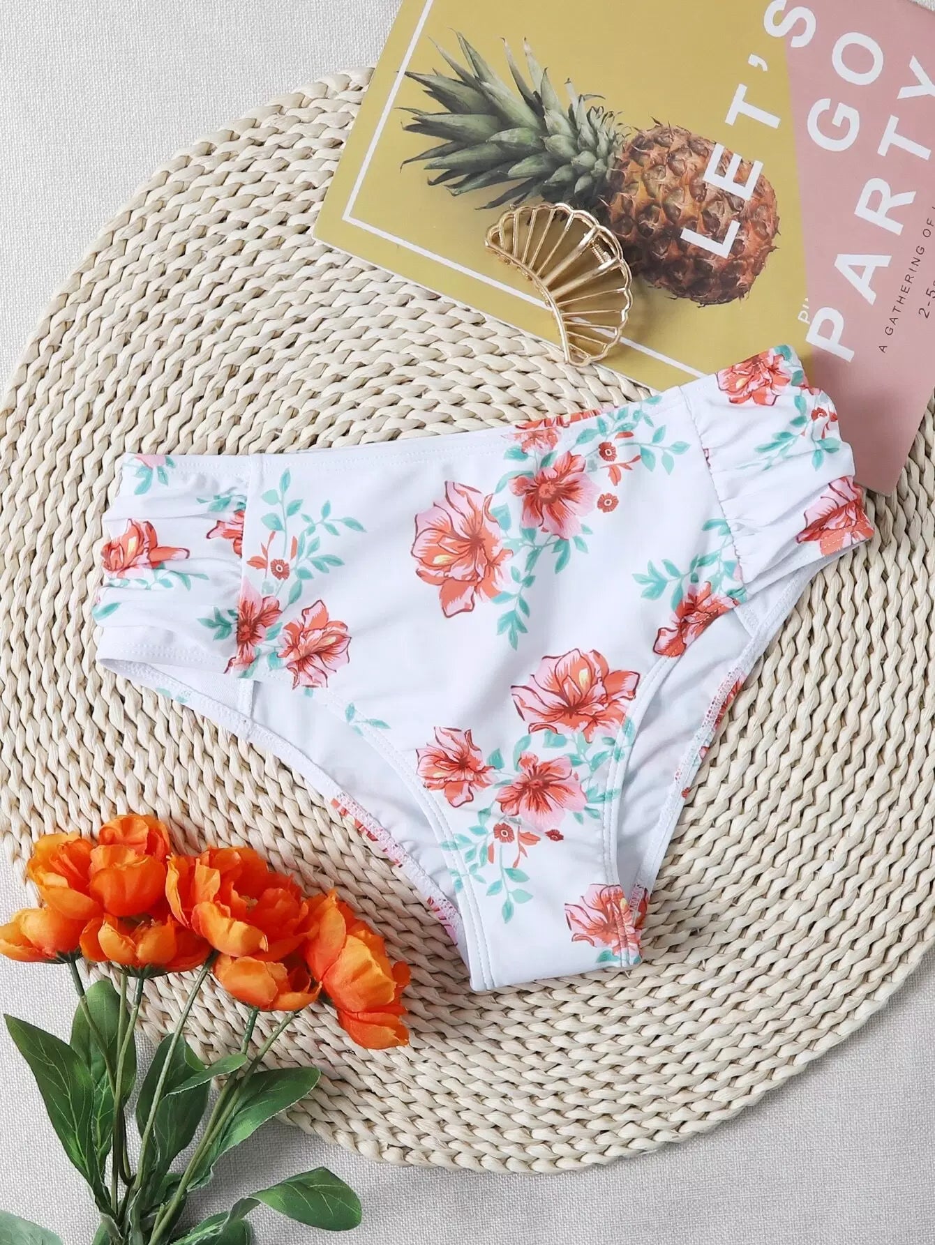 بيكيني داخلي بيكيني مكشكش مزين بالورود