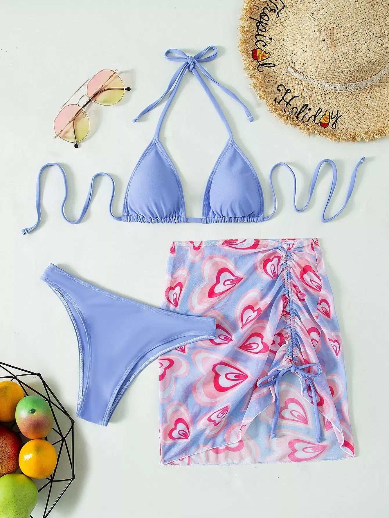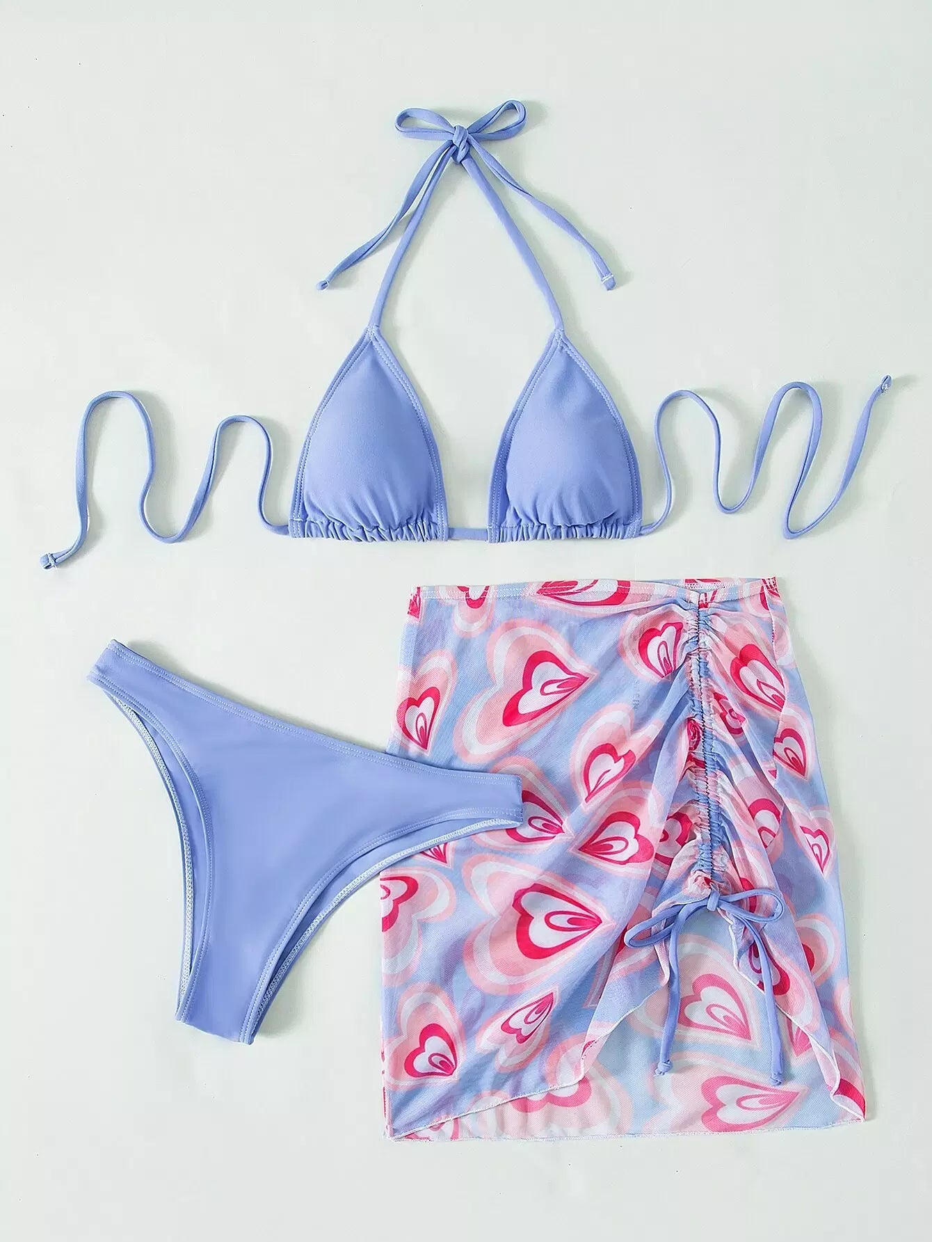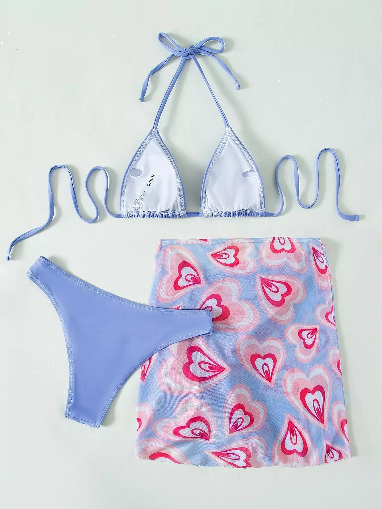 3 عبوات ملابس سباحة بيكيني بطبعة قلب عشوائية بطبعة قلب مع غطاء