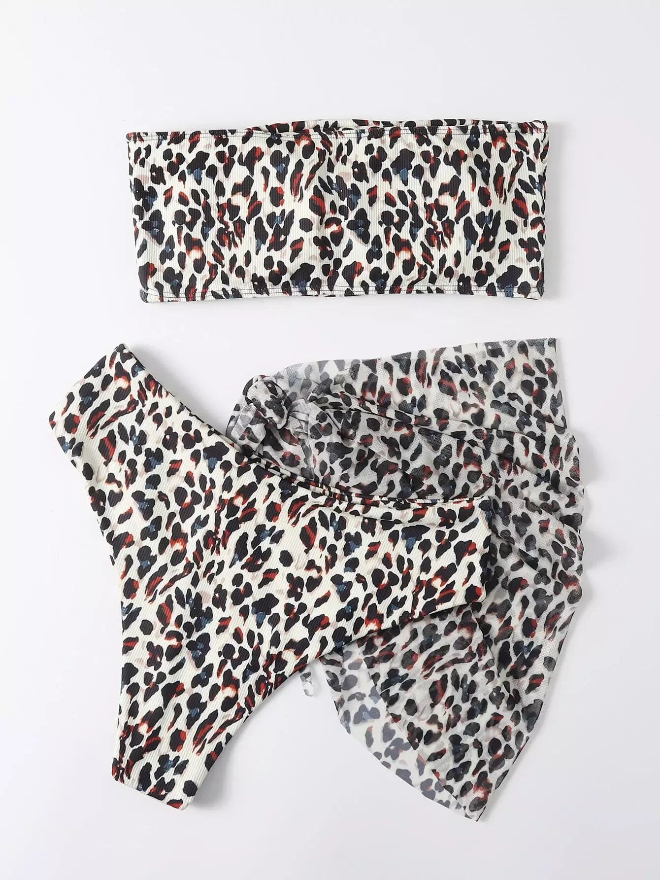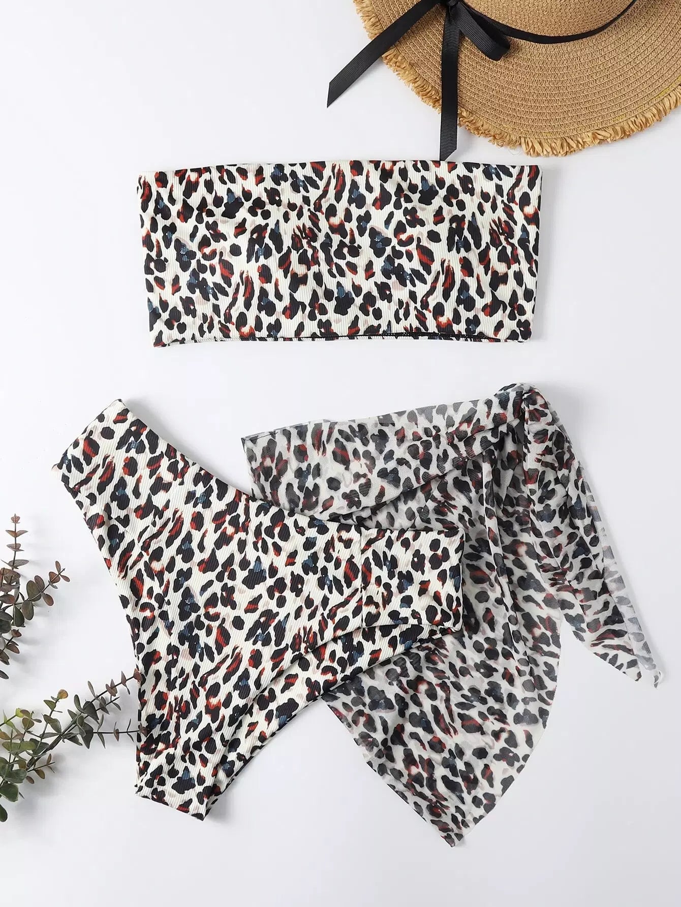 3 عبوات ملابس سباحة بيكيني بعصابة من جلد الفهد وتنورة شاطئية