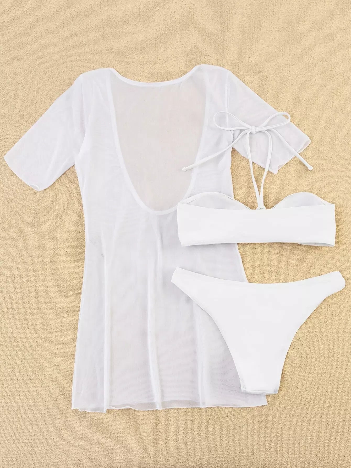 3 عبوات ملابس سباحة بيكيني سادة بدون أكمام وغطاء سباحة