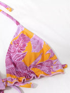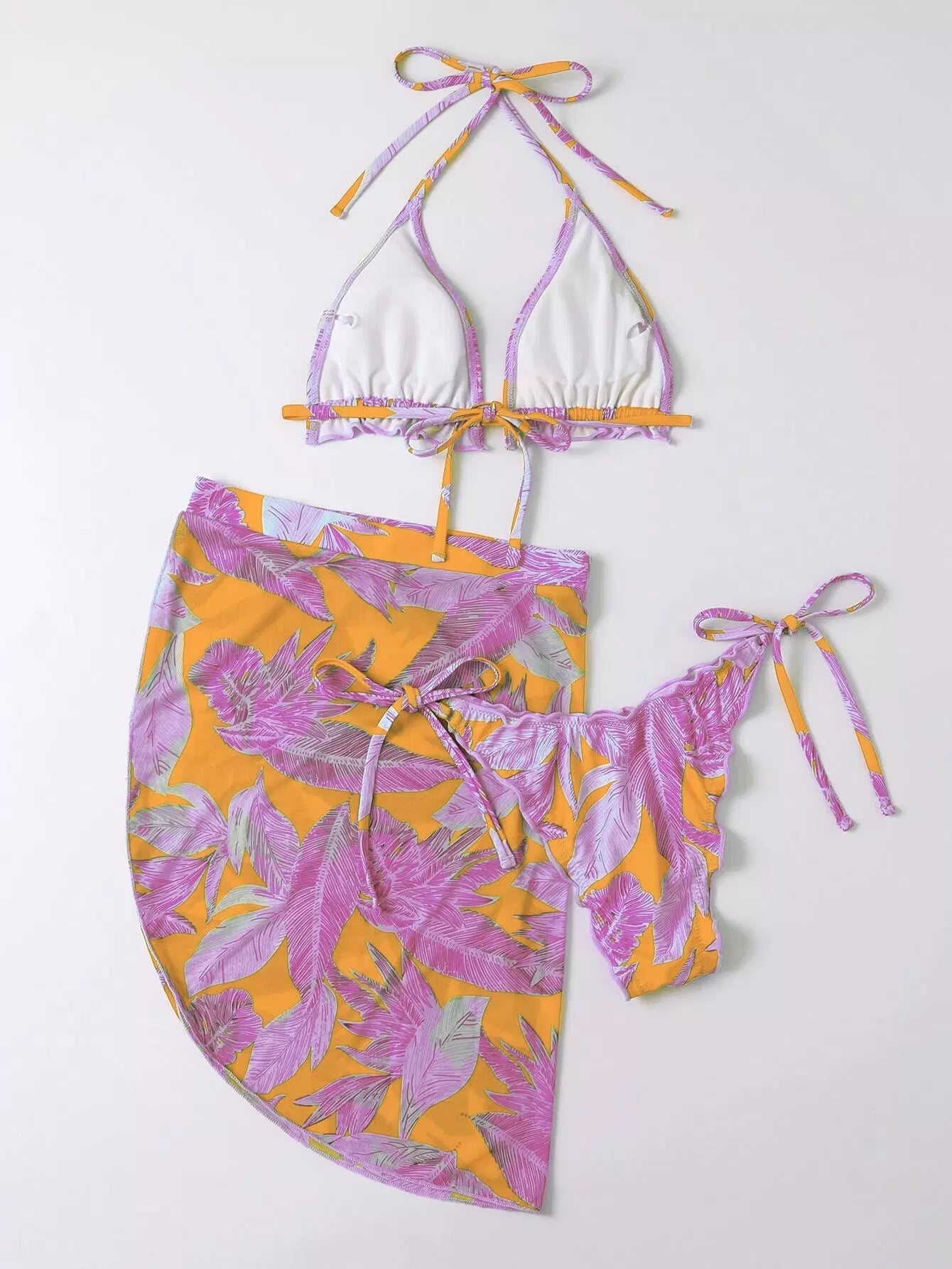 3 عبوات ملابس سباحة بيكيني بيكيني مثلث بطبعة نباتات صغيرة مثلثة وتنورة شاطئية