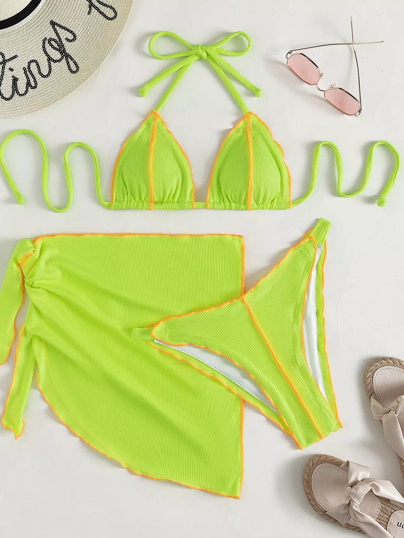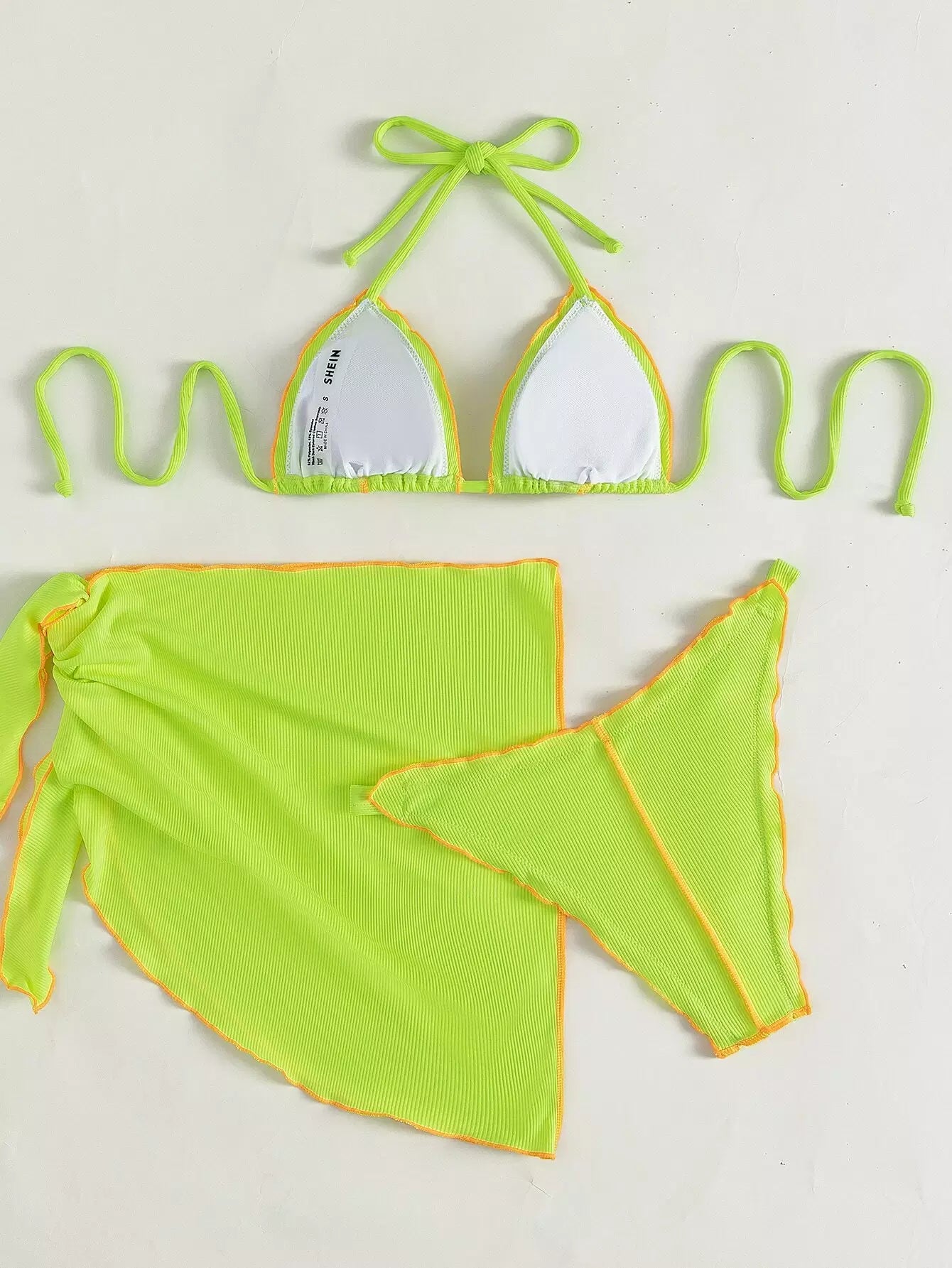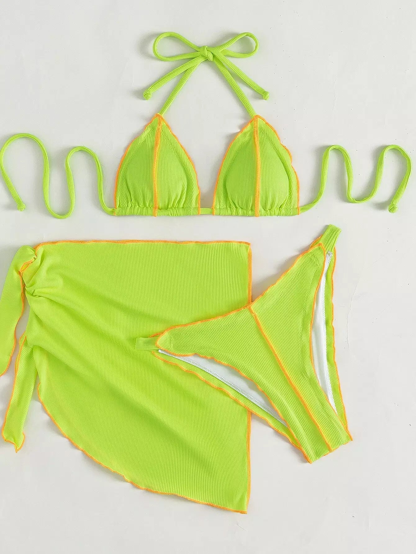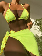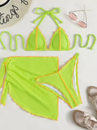 3 عبوات ملابس سباحة بيكيني بيكيني مثلث بحزام مضلع بلون مغاير مضلع وتنورة شاطئية