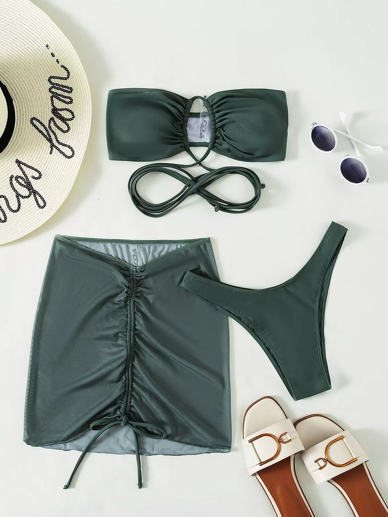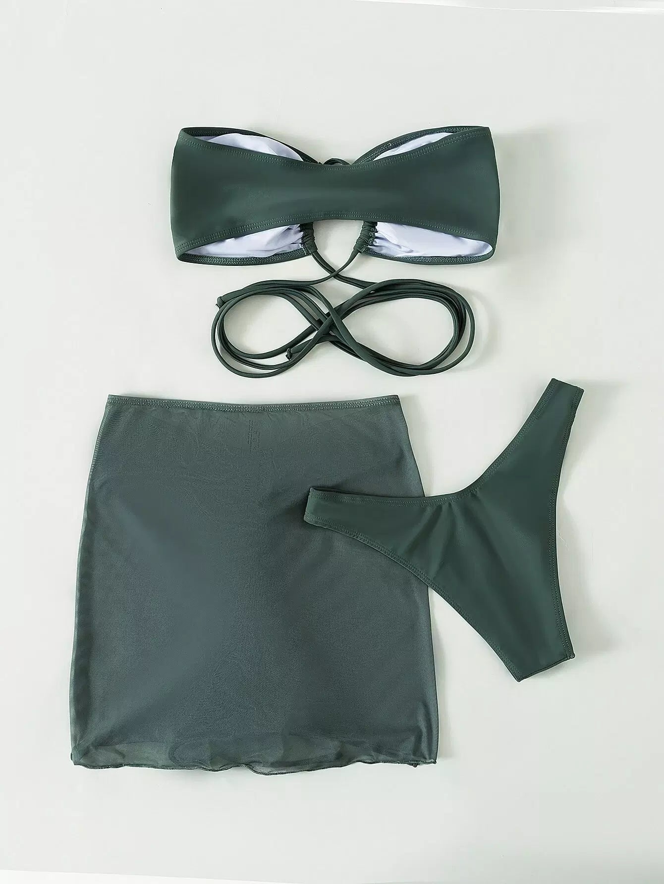 3 عبوات ملابس سباحة بيكيني سادة مع غطاء برباط رباط