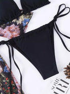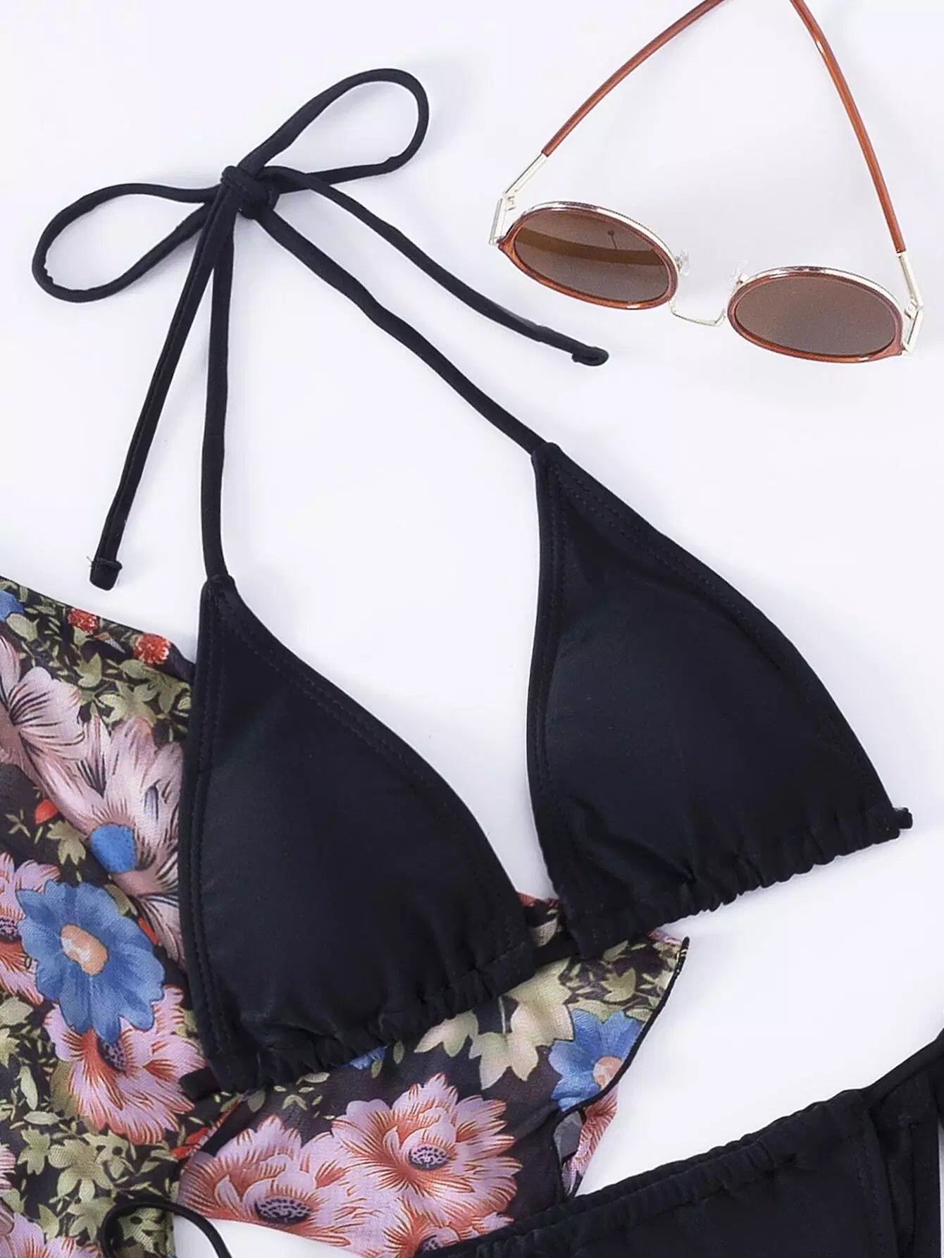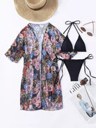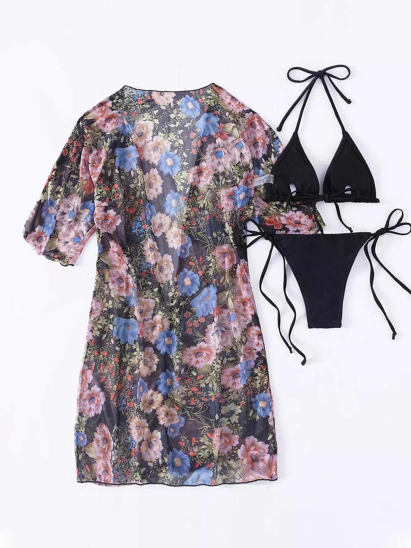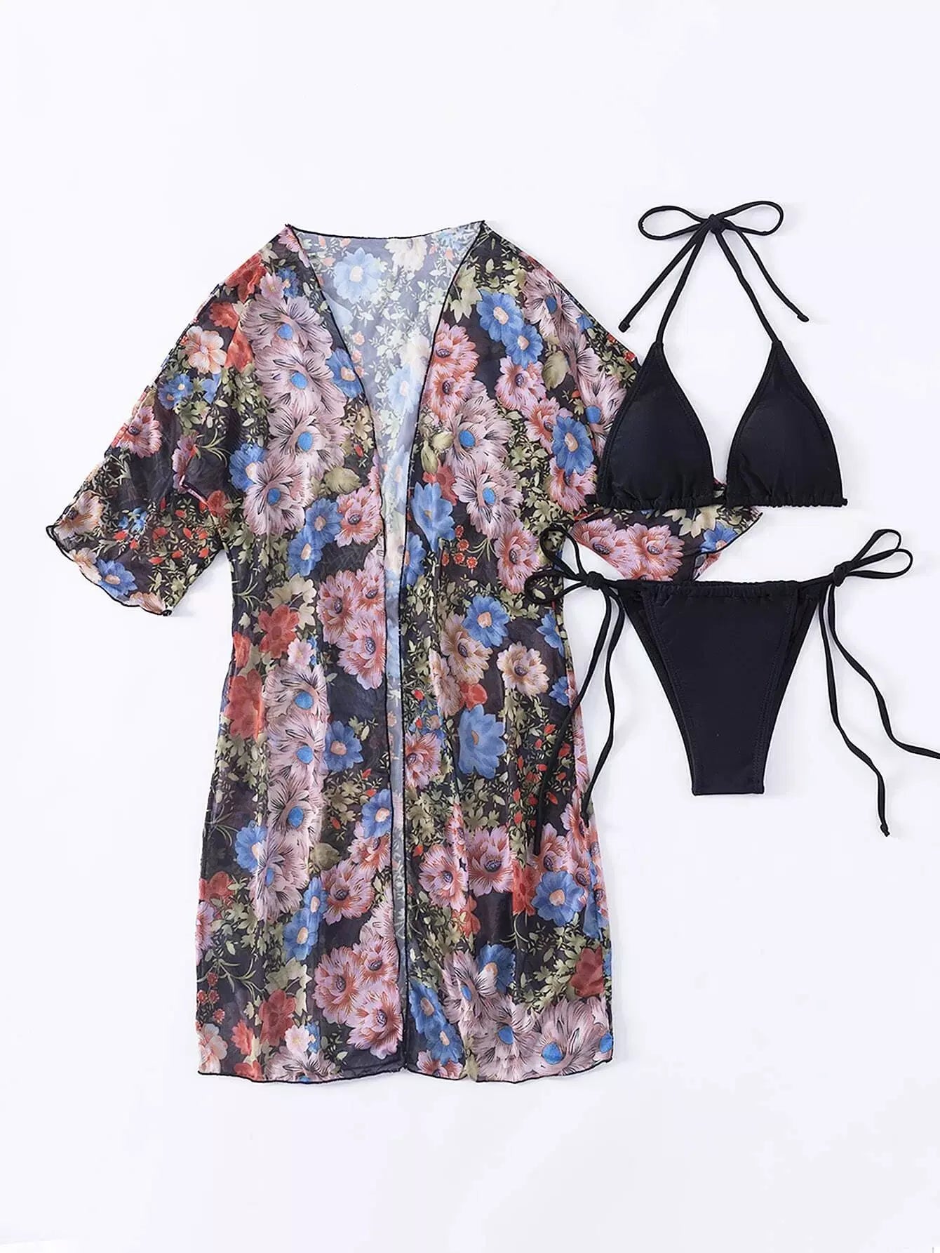 3 عبوات ملابس سباحة بيكيني مثلث بربطة جانبية على شكل مثلث وكيمونو زهري