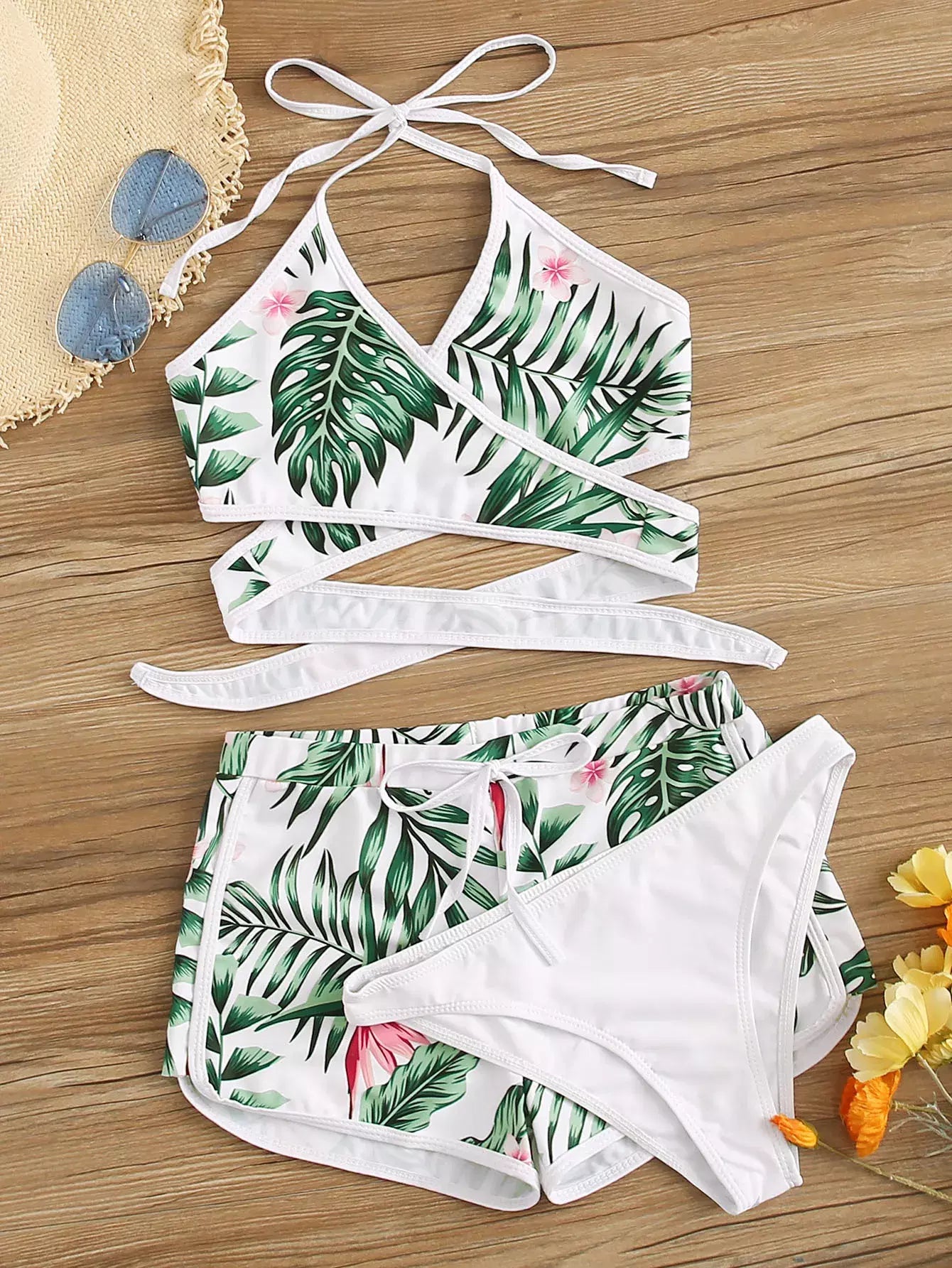 3 عبوات ملابس سباحة بيكيني بلفائف استوائية متقاطعة متشابكة من 3 قطع