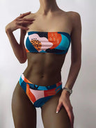 بدلة سباحة بيكيني بعصابة جرافيك بالكامل
