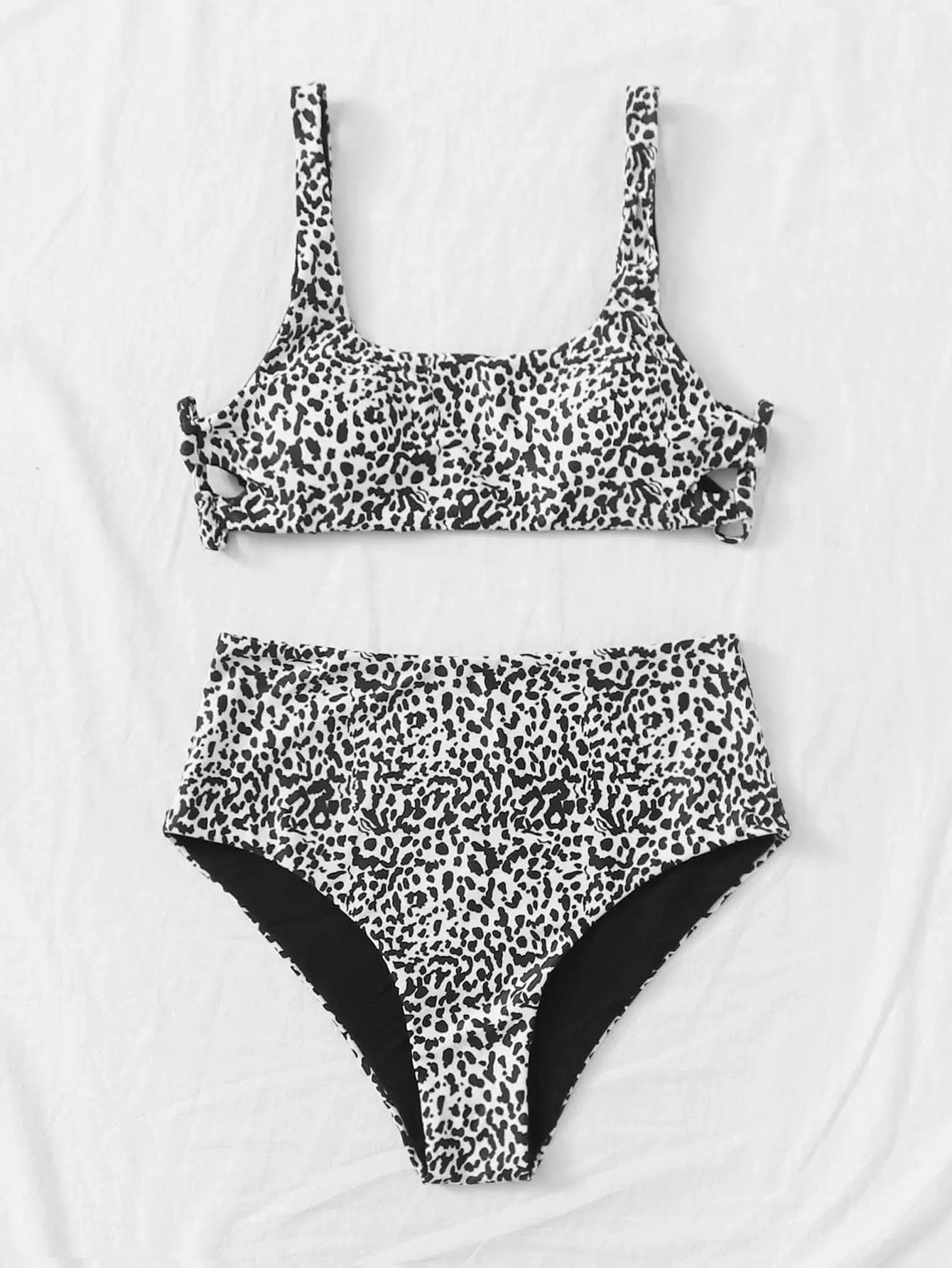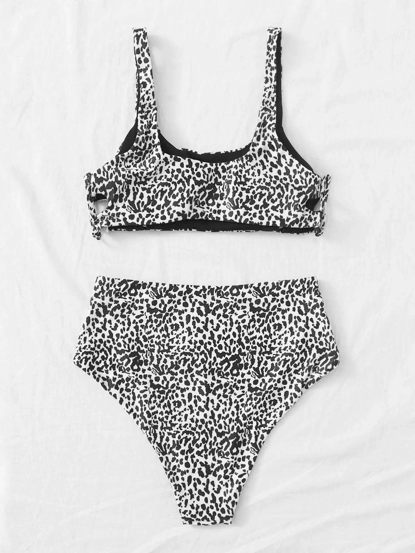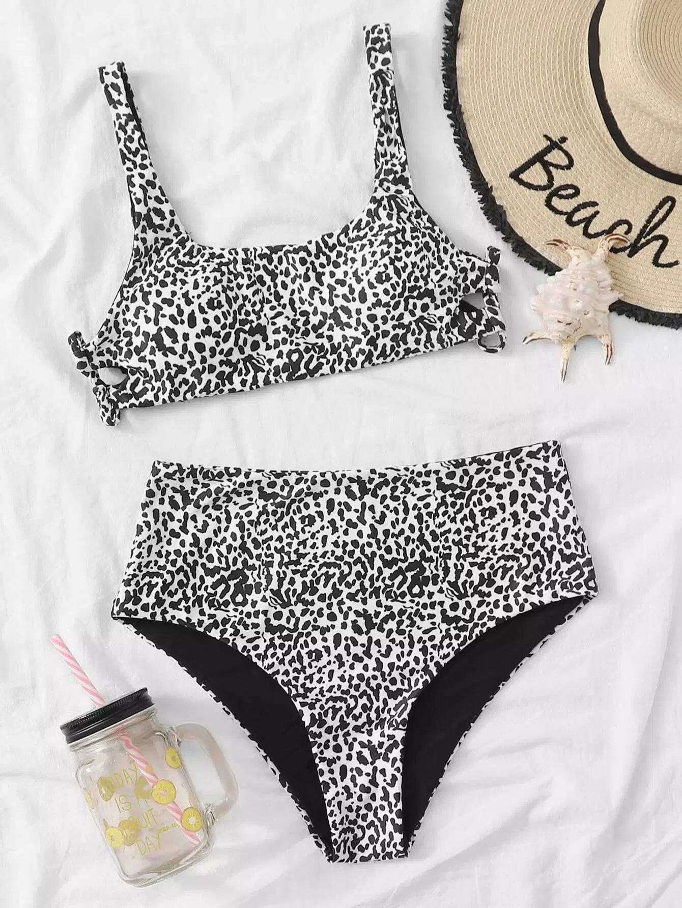 بدلة سباحة بيكيني عالية الخصر برسومات على كامل الجسم