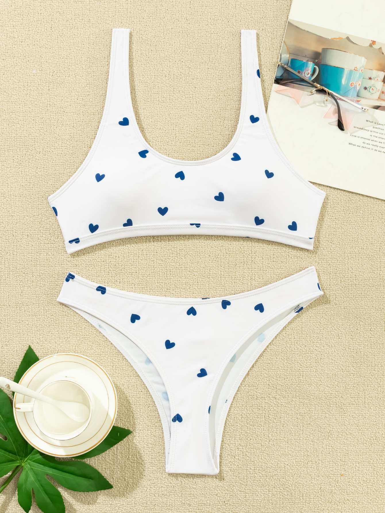 بدلة سباحة بيكيني برسومات على شكل قلب بالكامل