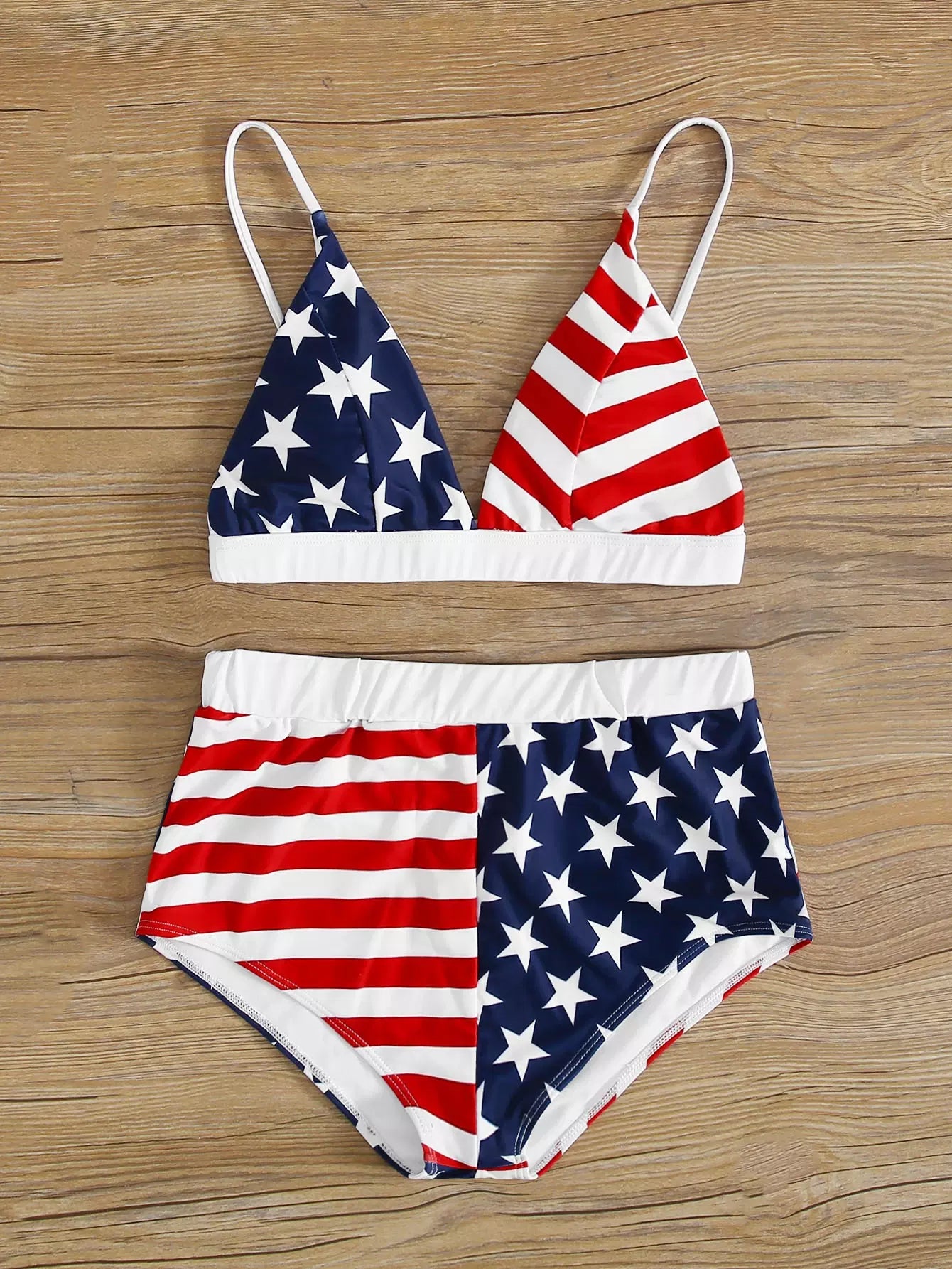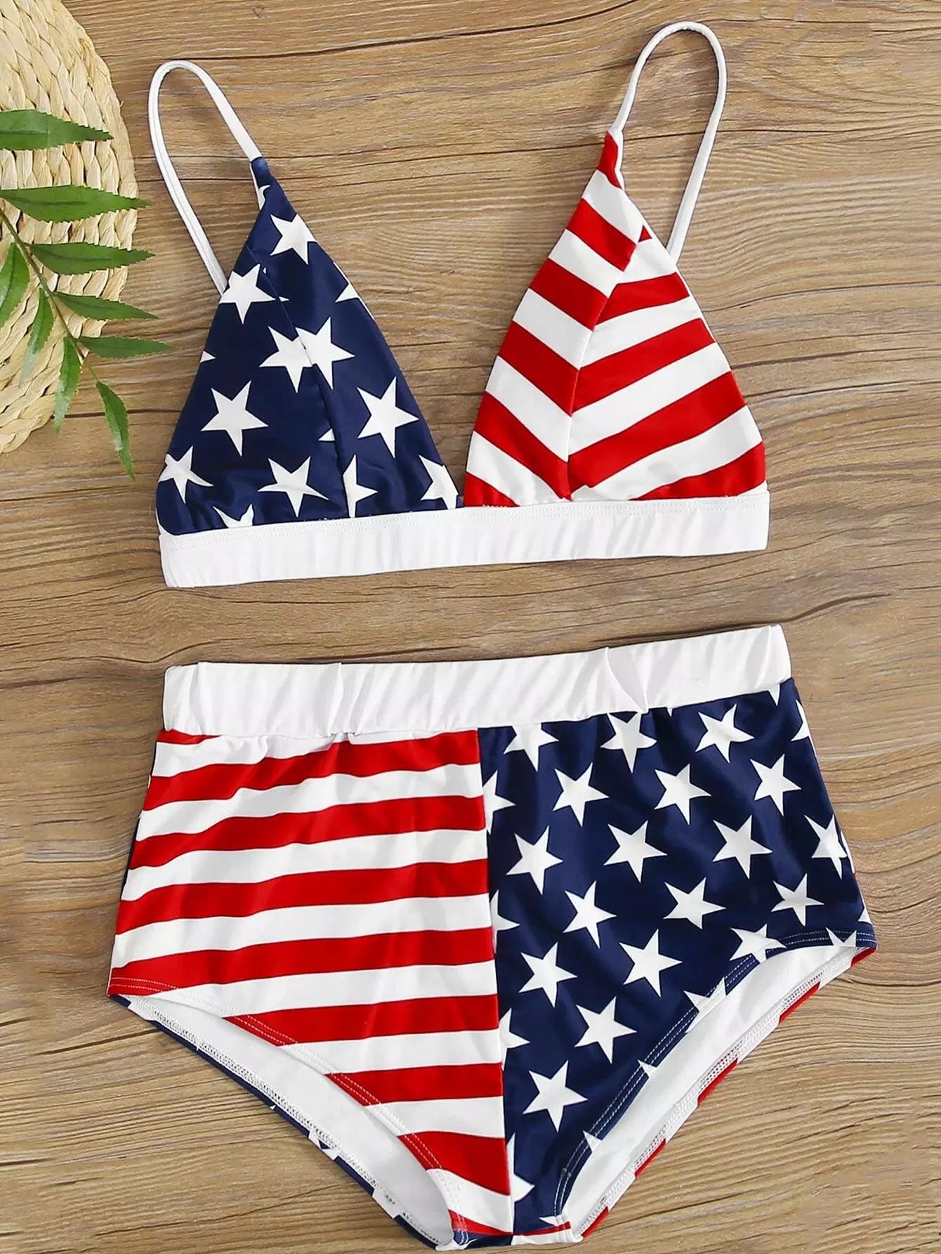 شورت سباحة بيكيني قصير بطبعة العلم الأمريكي
