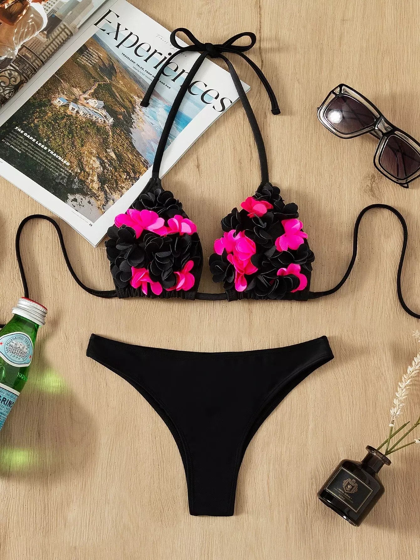 بدلة سباحة بيكيني مثلث مزين بالزخارف