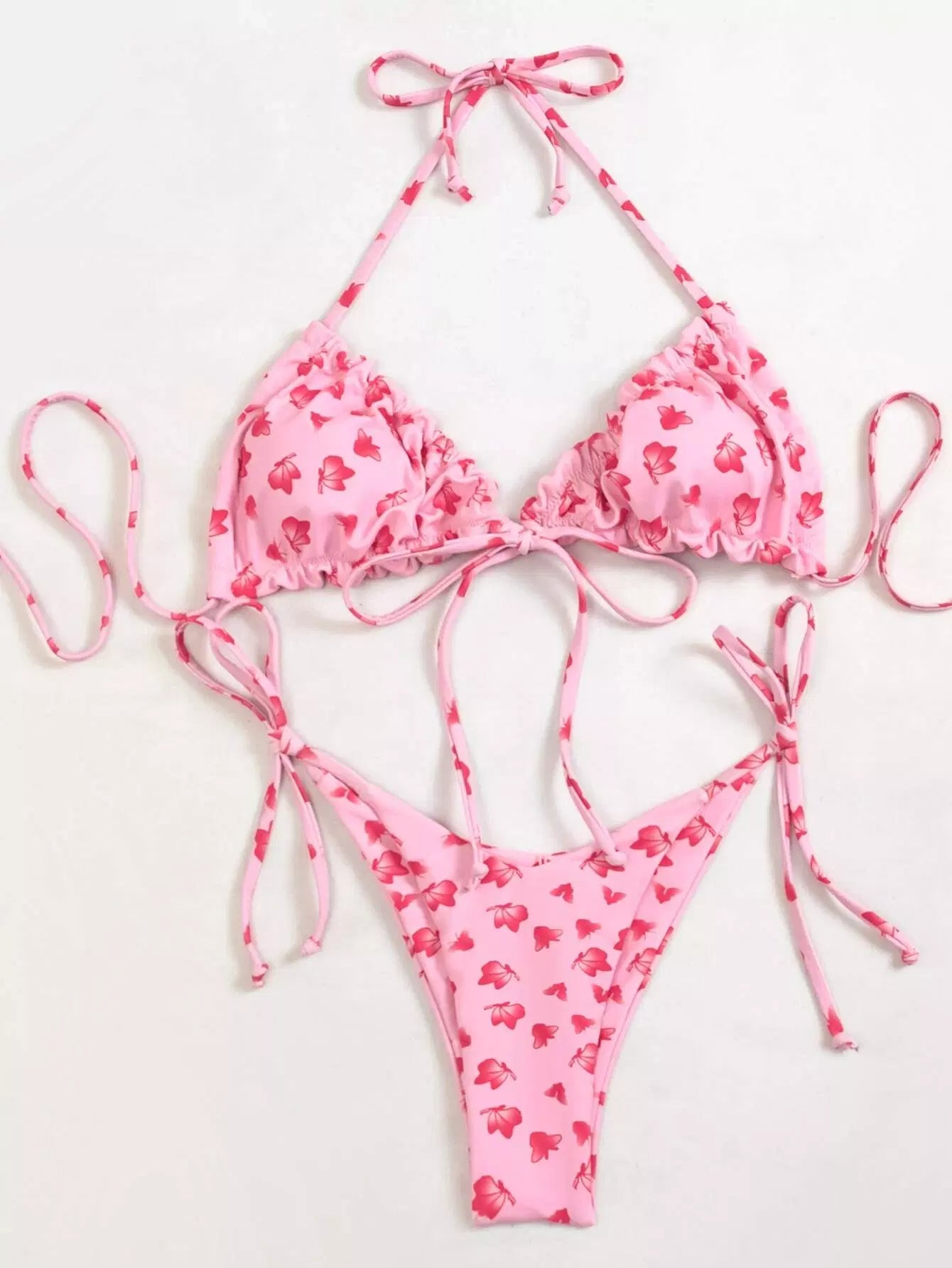 بيكيني سباحة بيكيني بطبعة فراشة على شكل ربطة جانبية