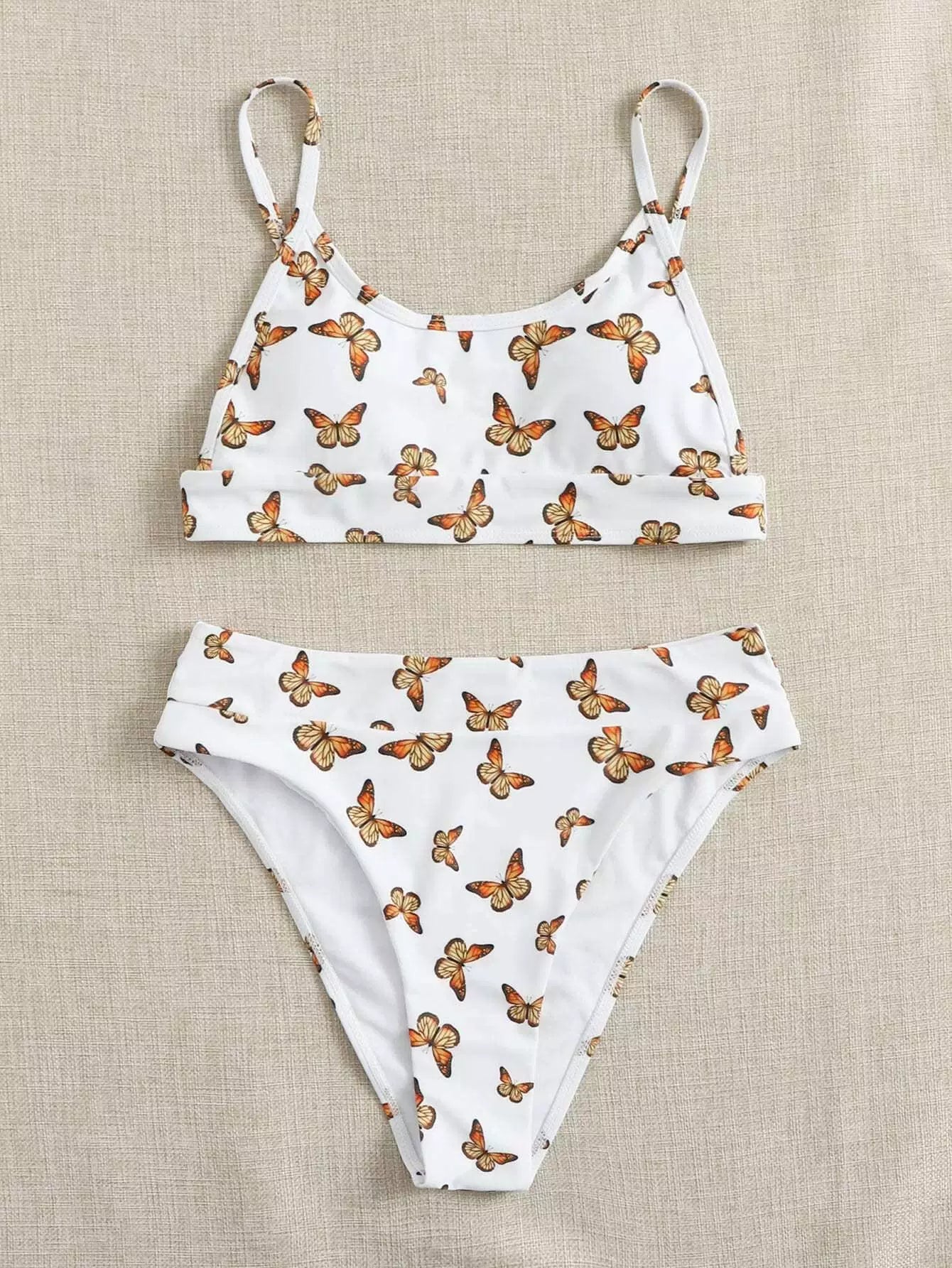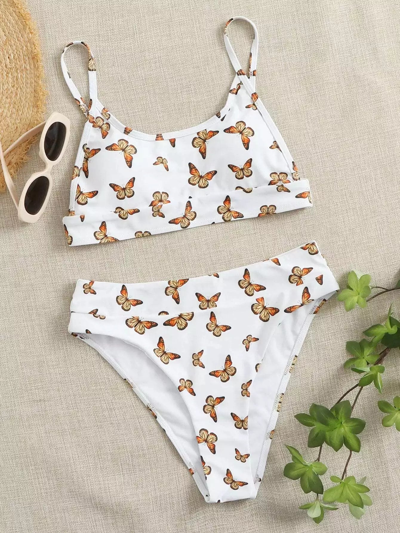 ملابس سباحة بيكيني بطبعة فراشات عالية الخصر