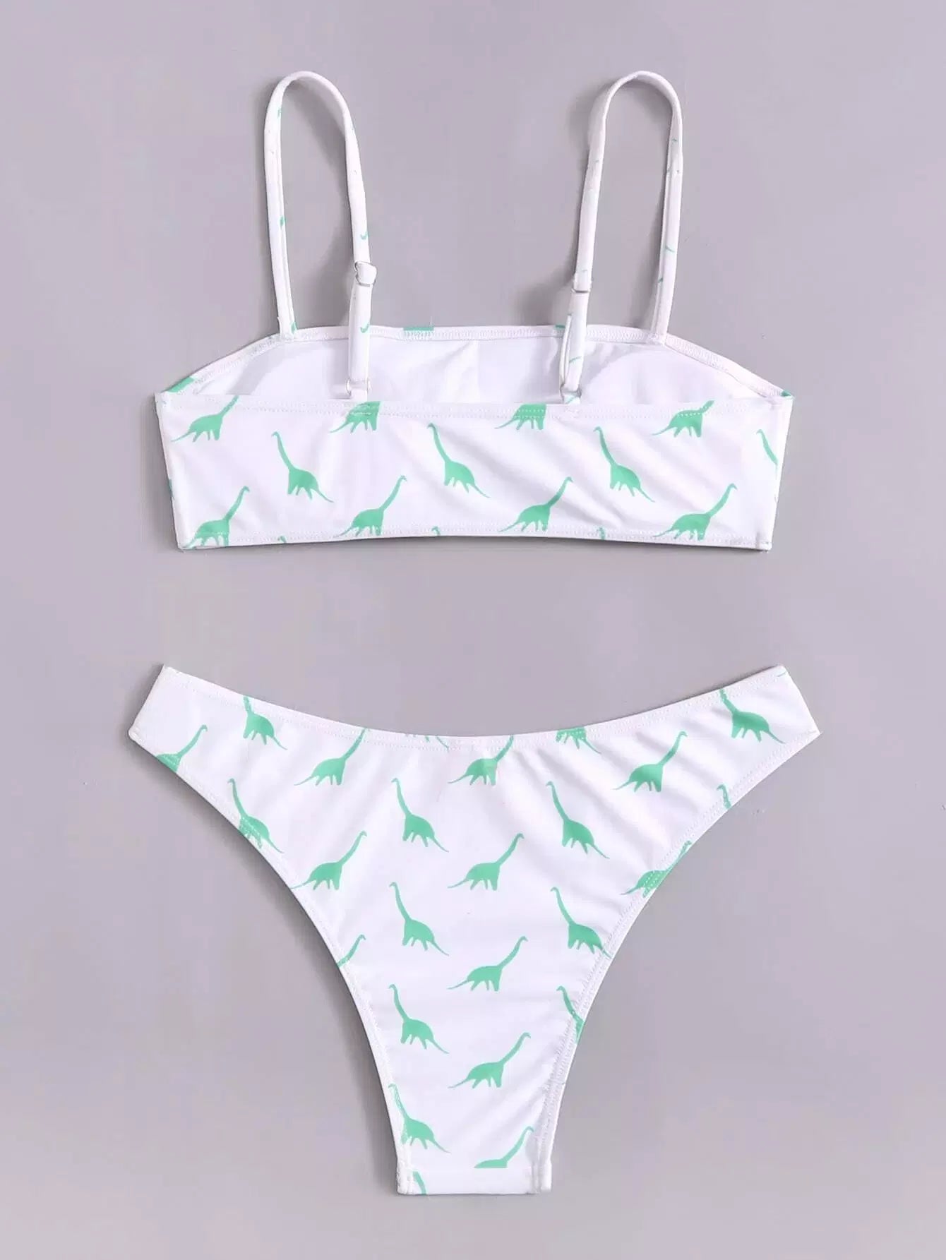 ملابس سباحة بيكيني بطبعة ديناصور كرتوني