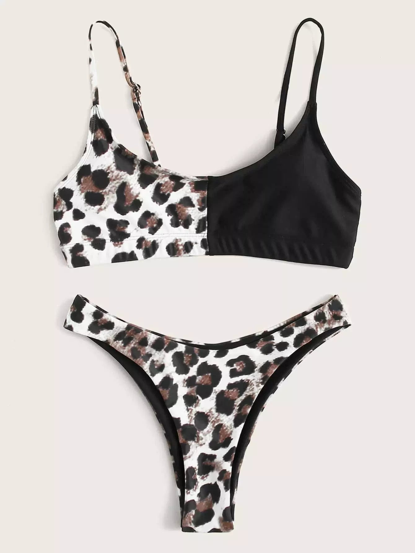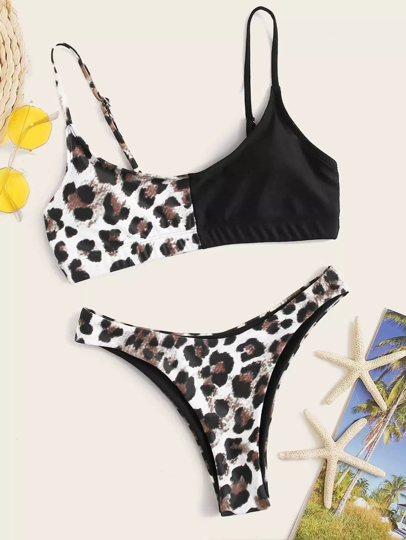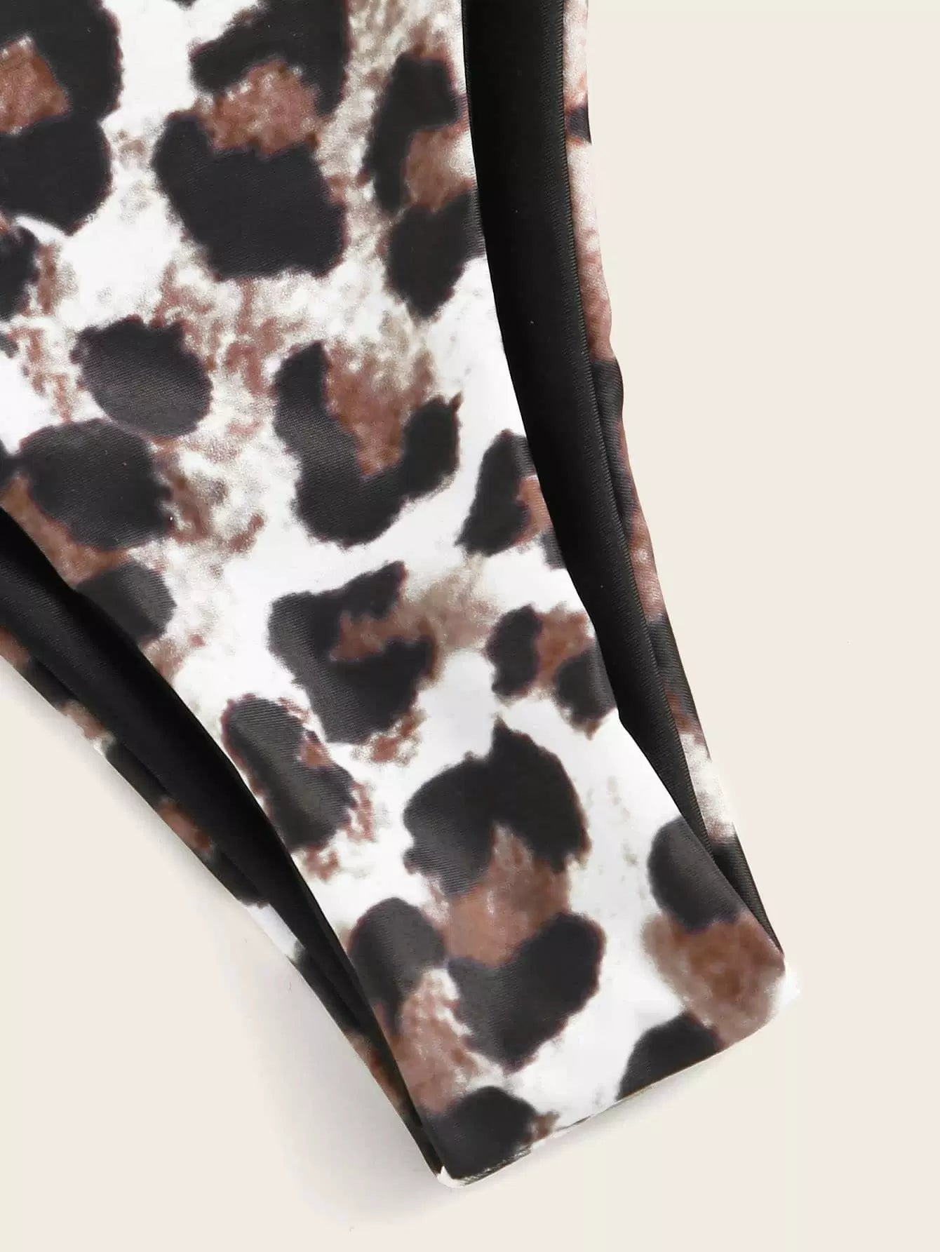 بدلة سباحة بيكيني بقصّة عالية بلون النمر المتباين