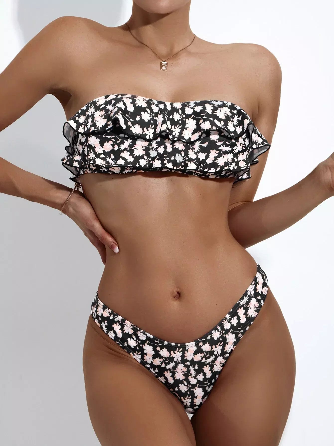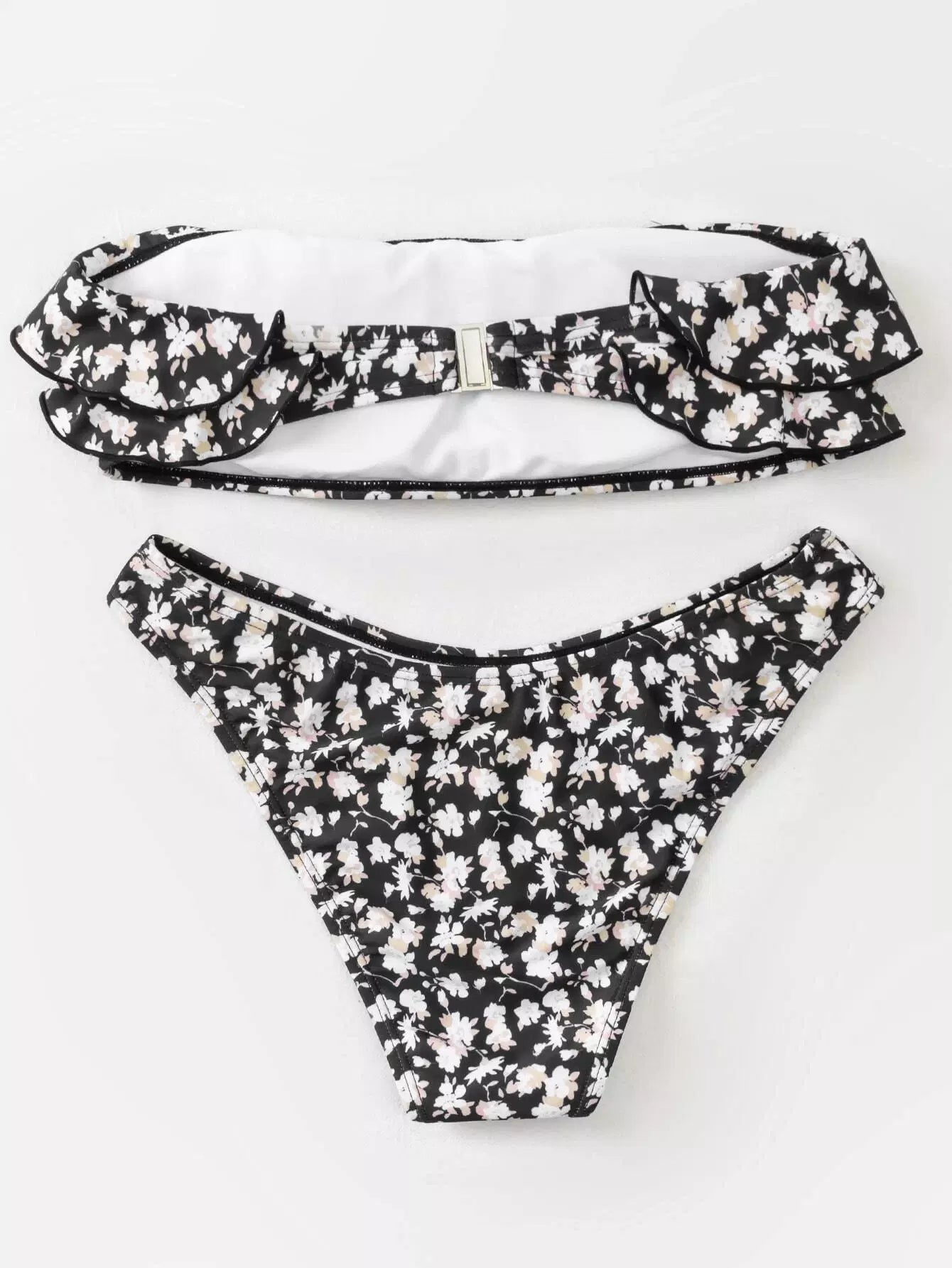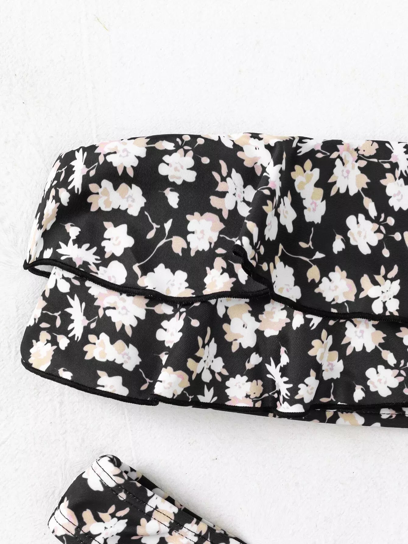 بيكيني سباحة ديتسي كشكش مزين بالورود بعصابة من الكشكش