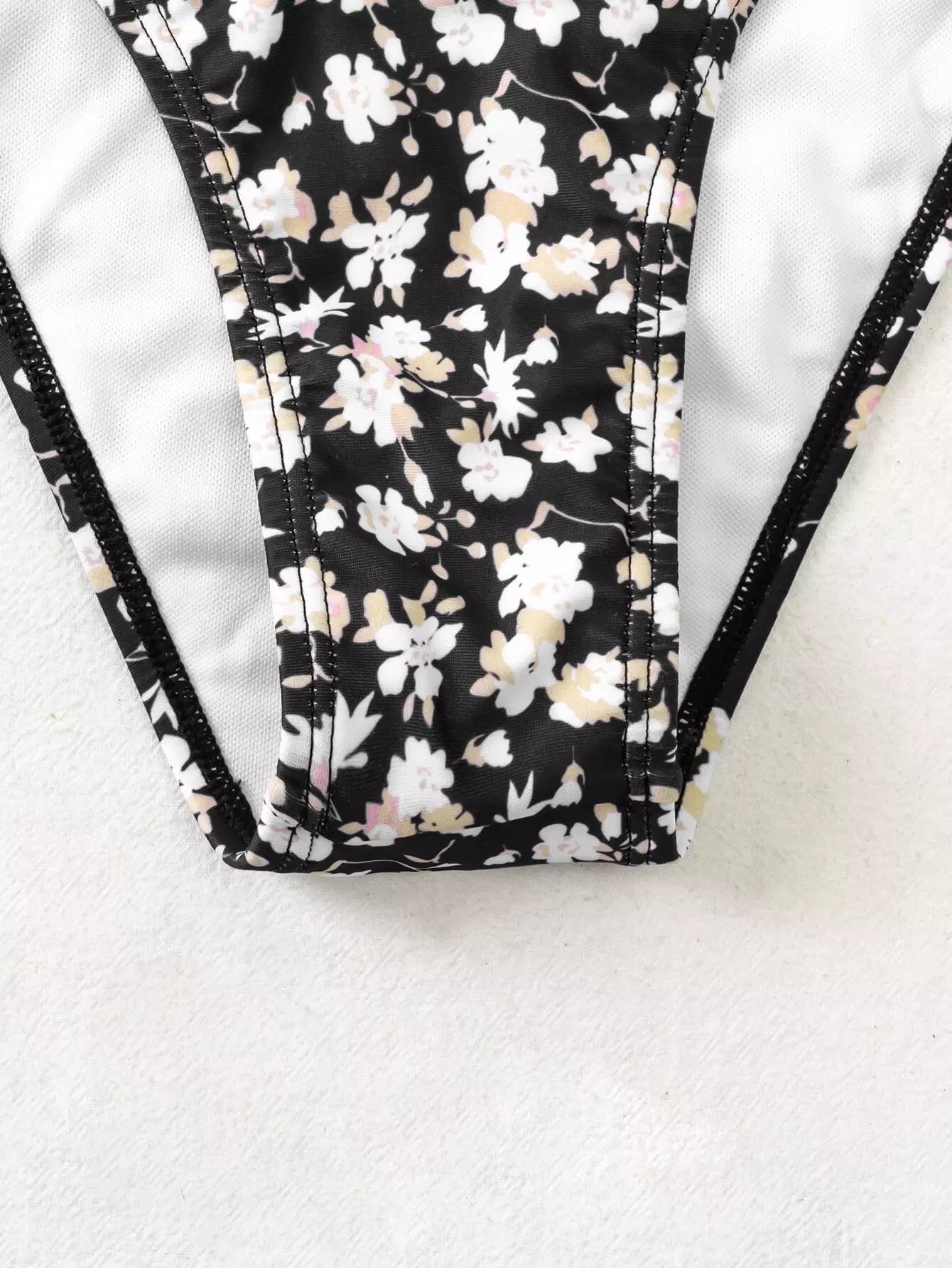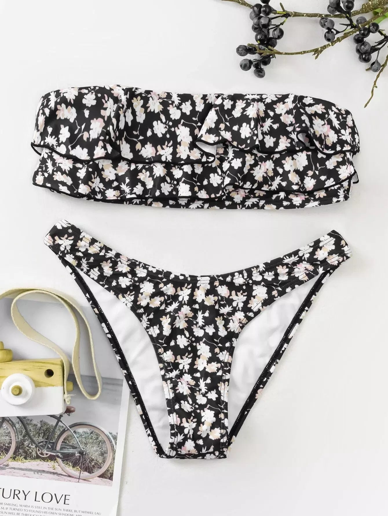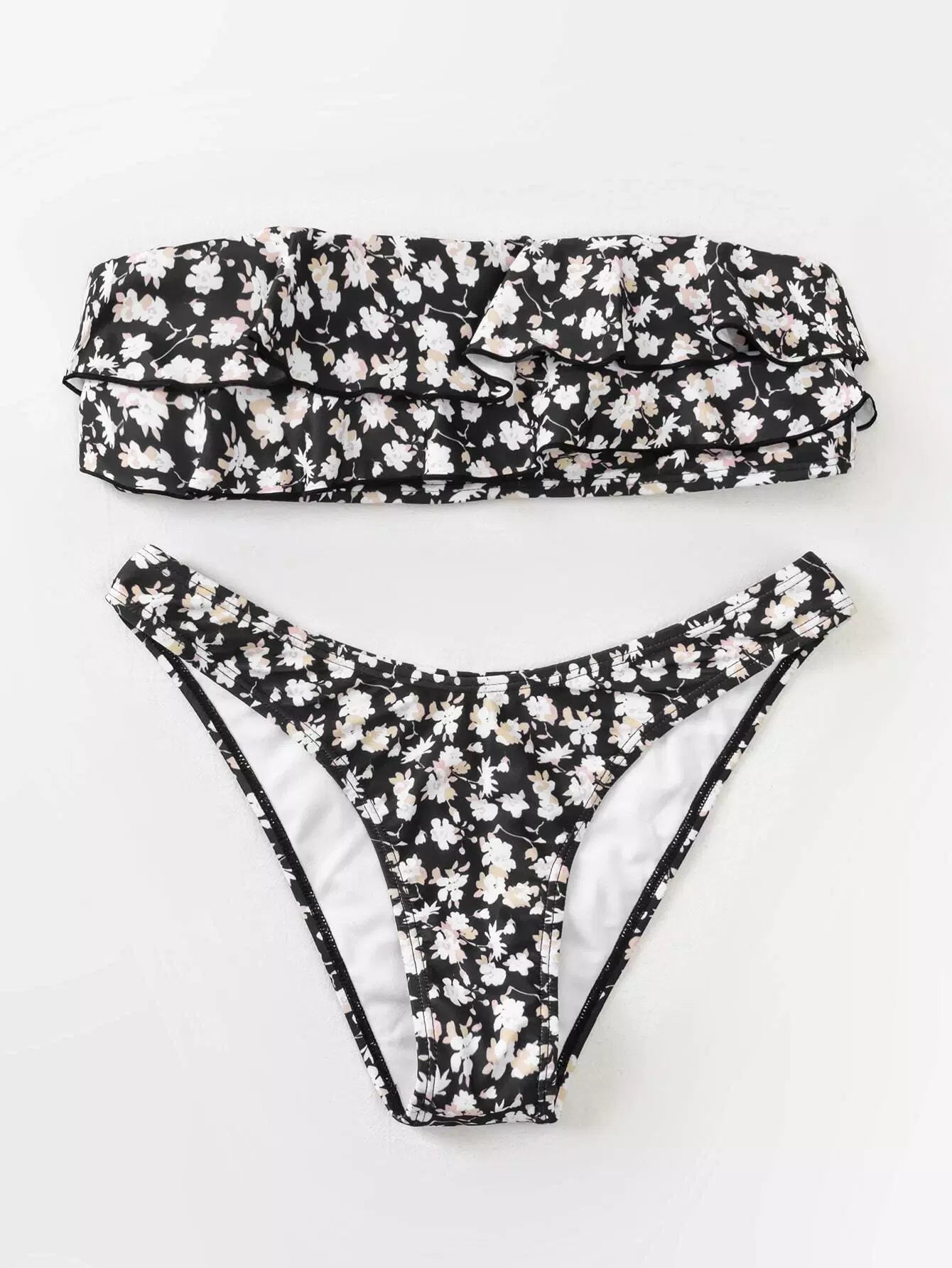 بيكيني سباحة ديتسي كشكش مزين بالورود بعصابة من الكشكش
