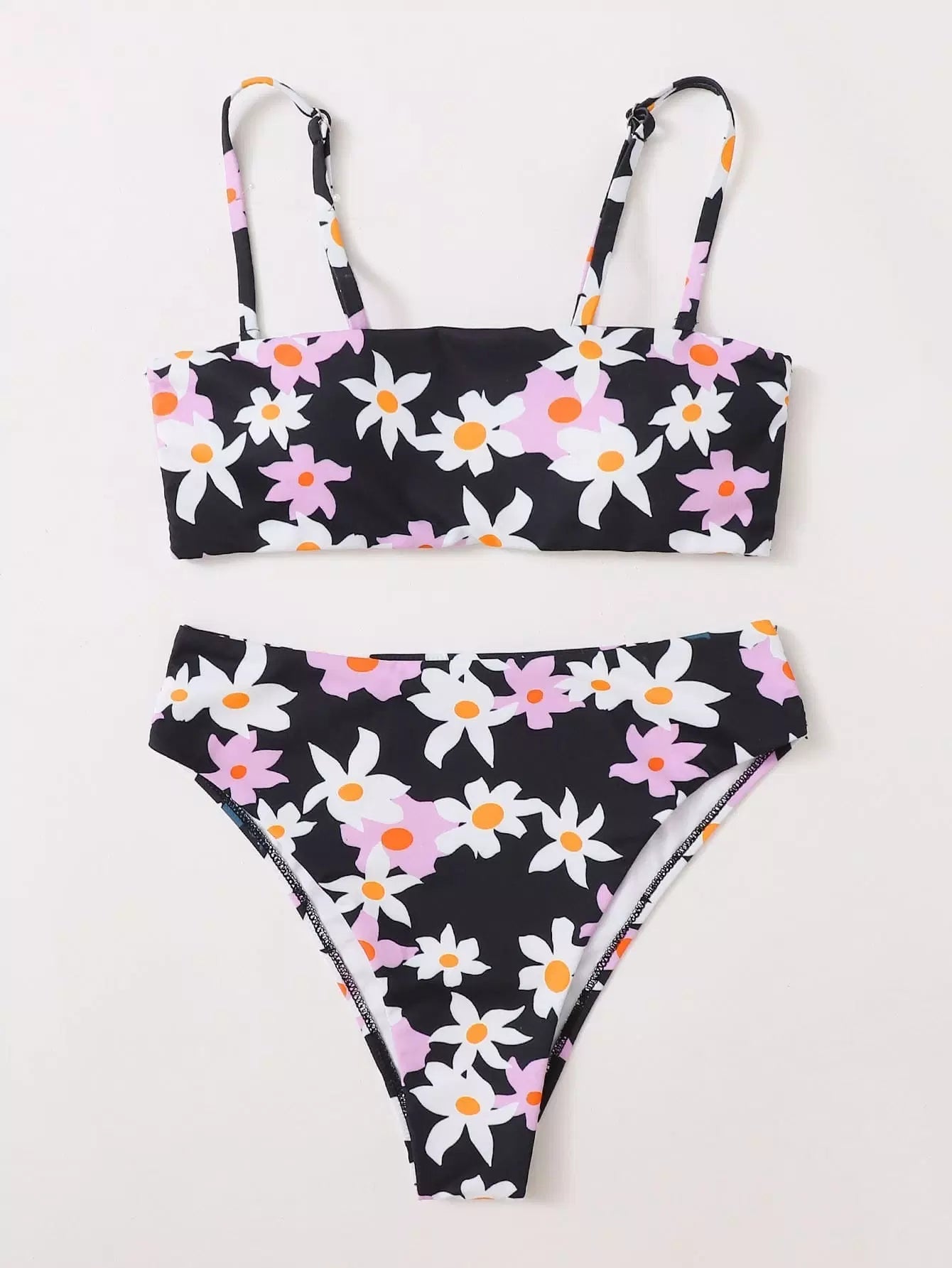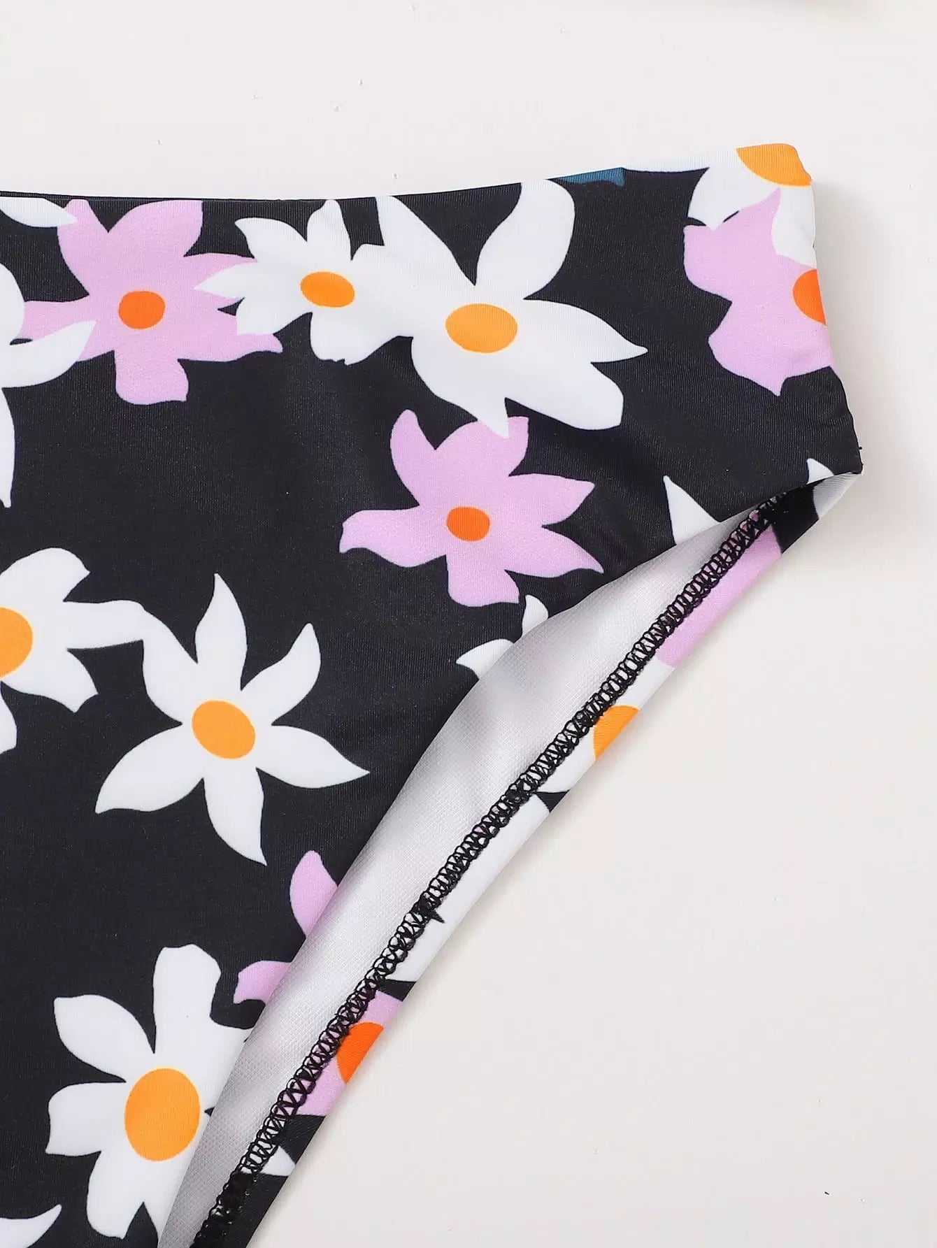 بدلة سباحة بيكيني عالية الخصر مزينة بالورود