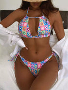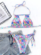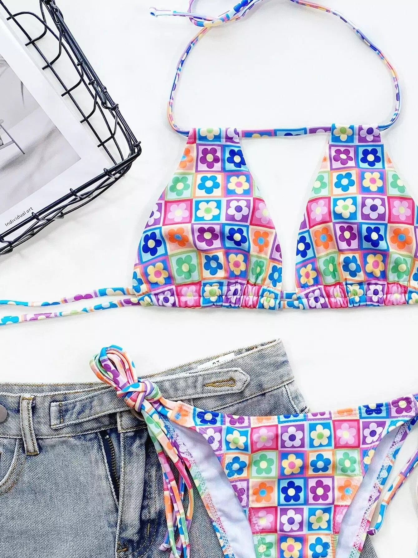 مايوه بكيني سباحة بيكيني بطبعة زهور على شكل ربطة جانبية