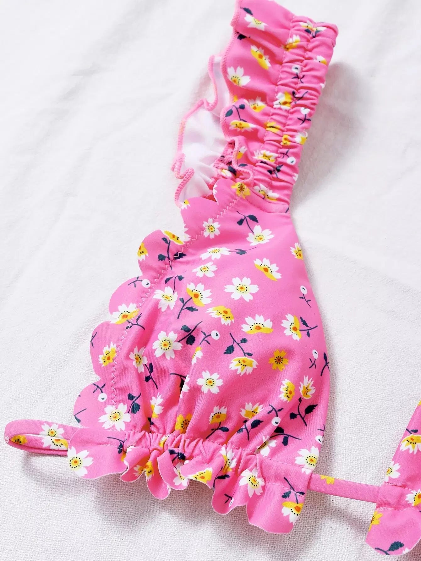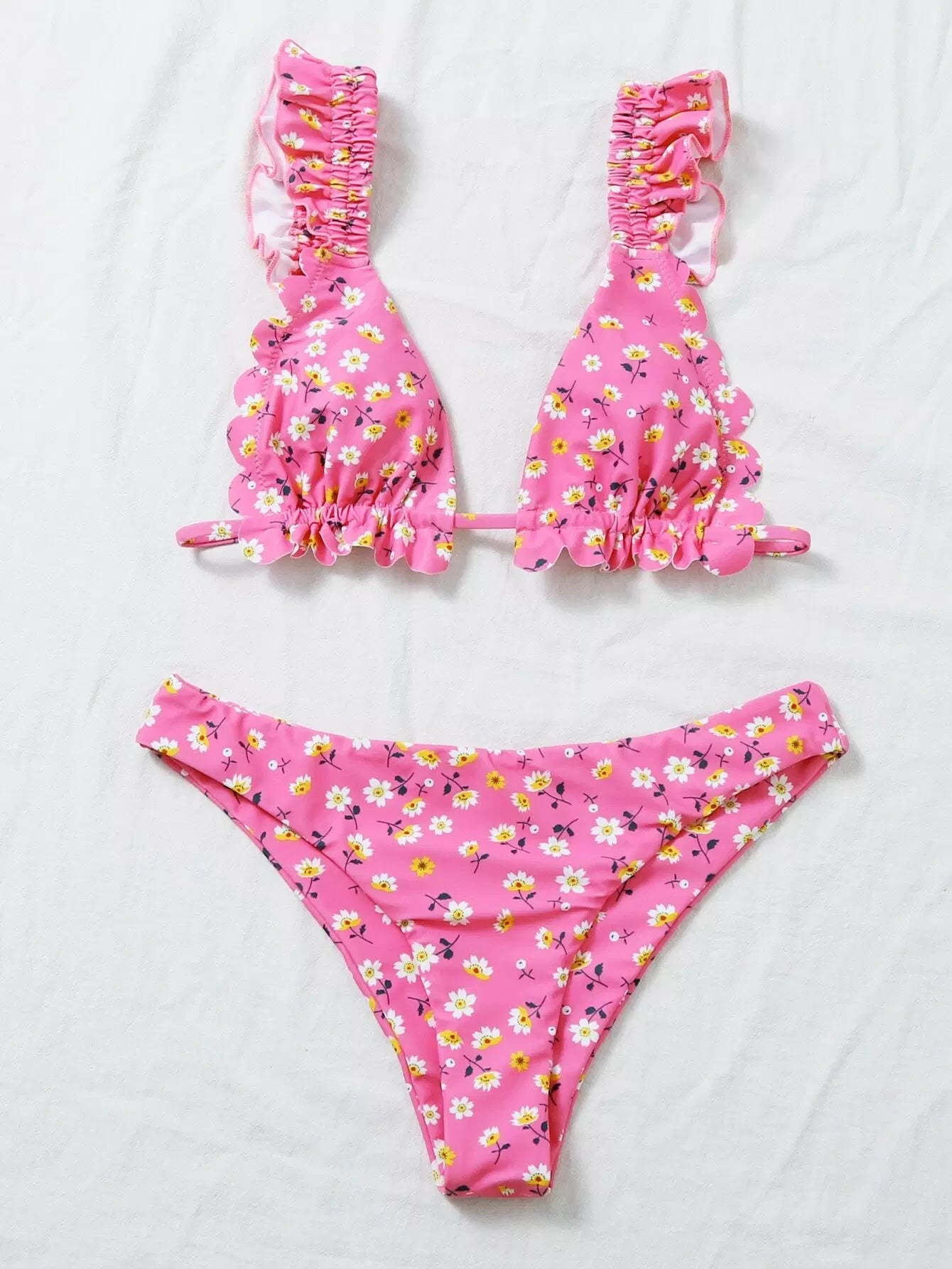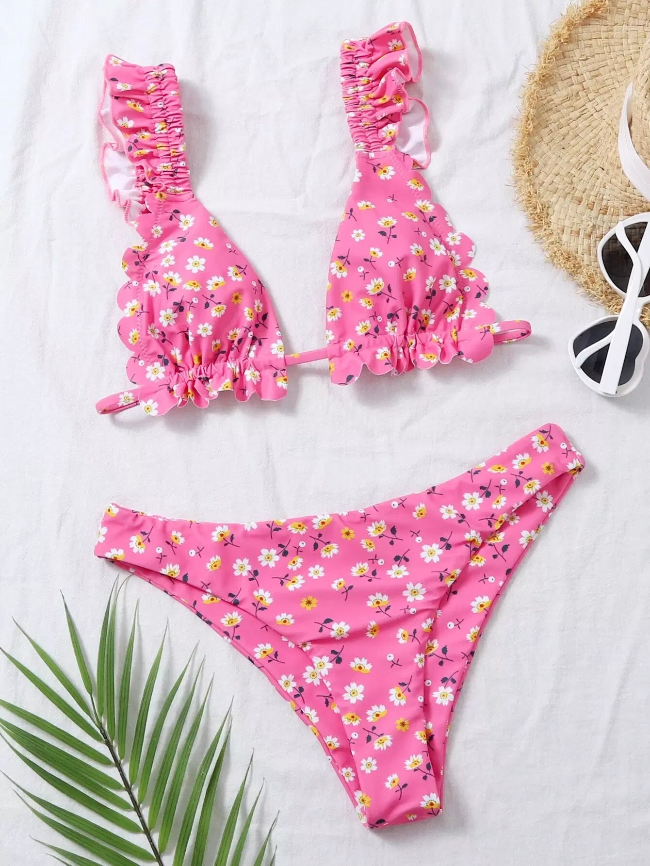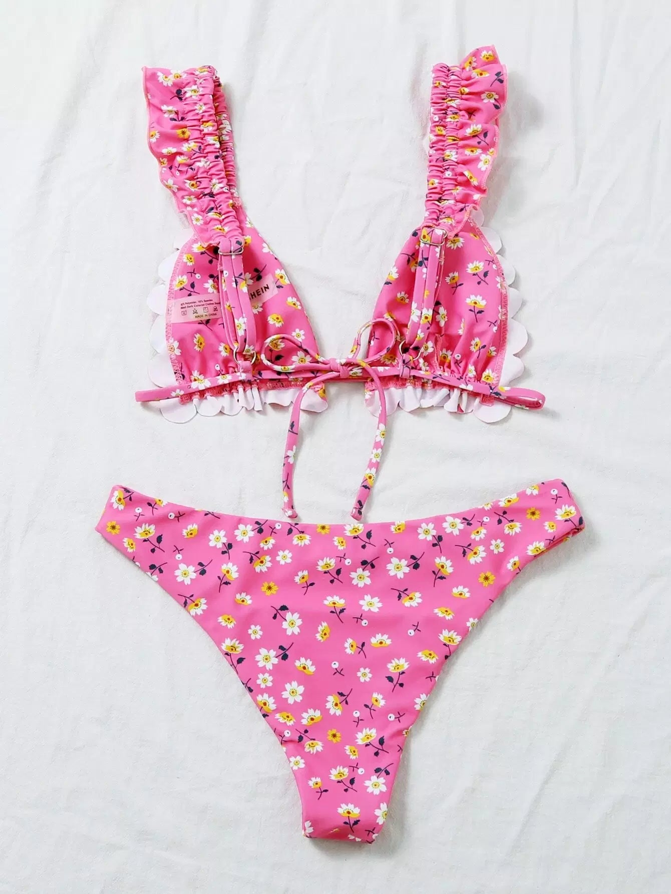 بيكيني سباحة بيكيني مثلث بحافة زهرية على شكل صدف