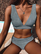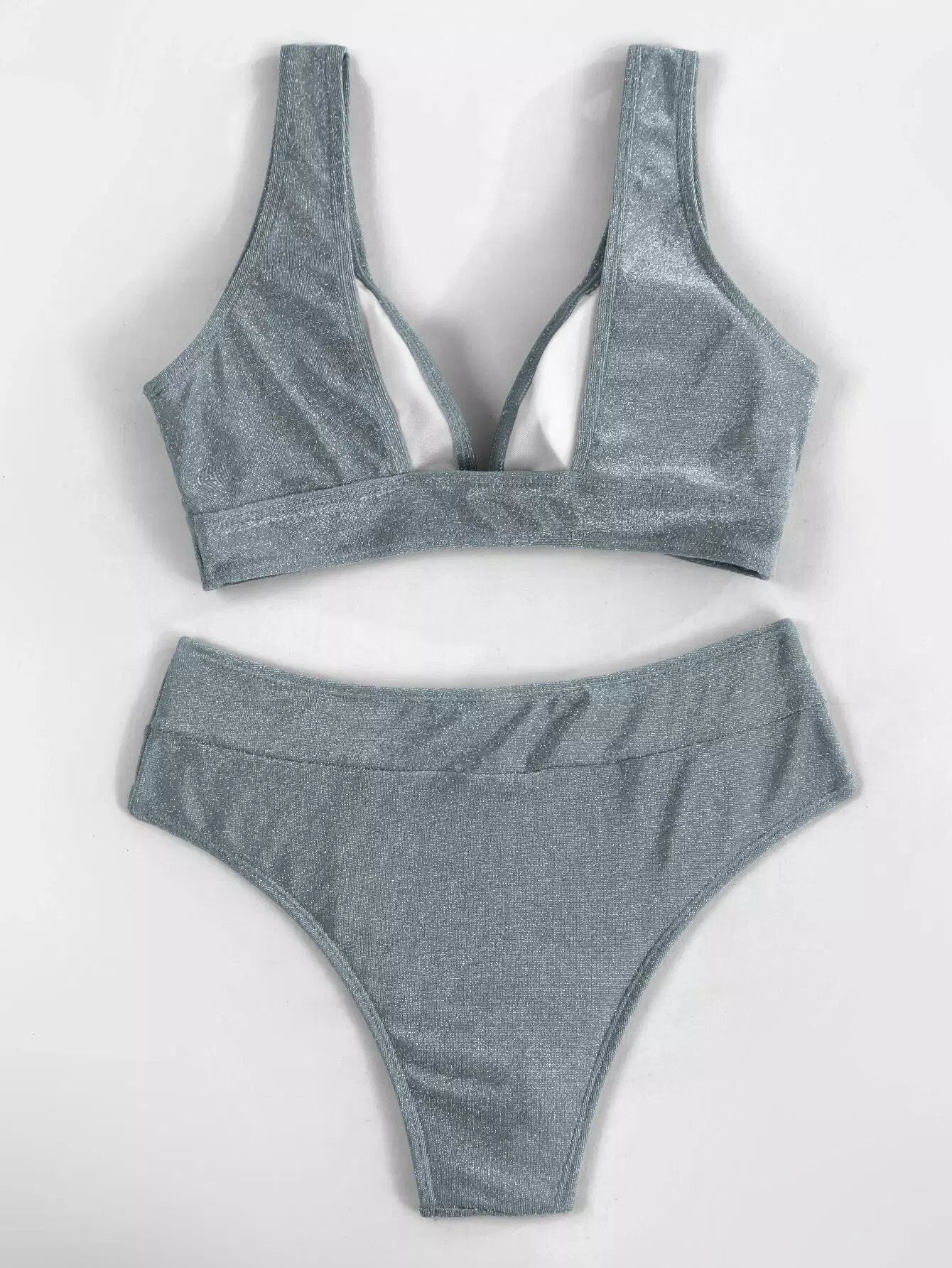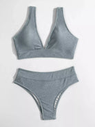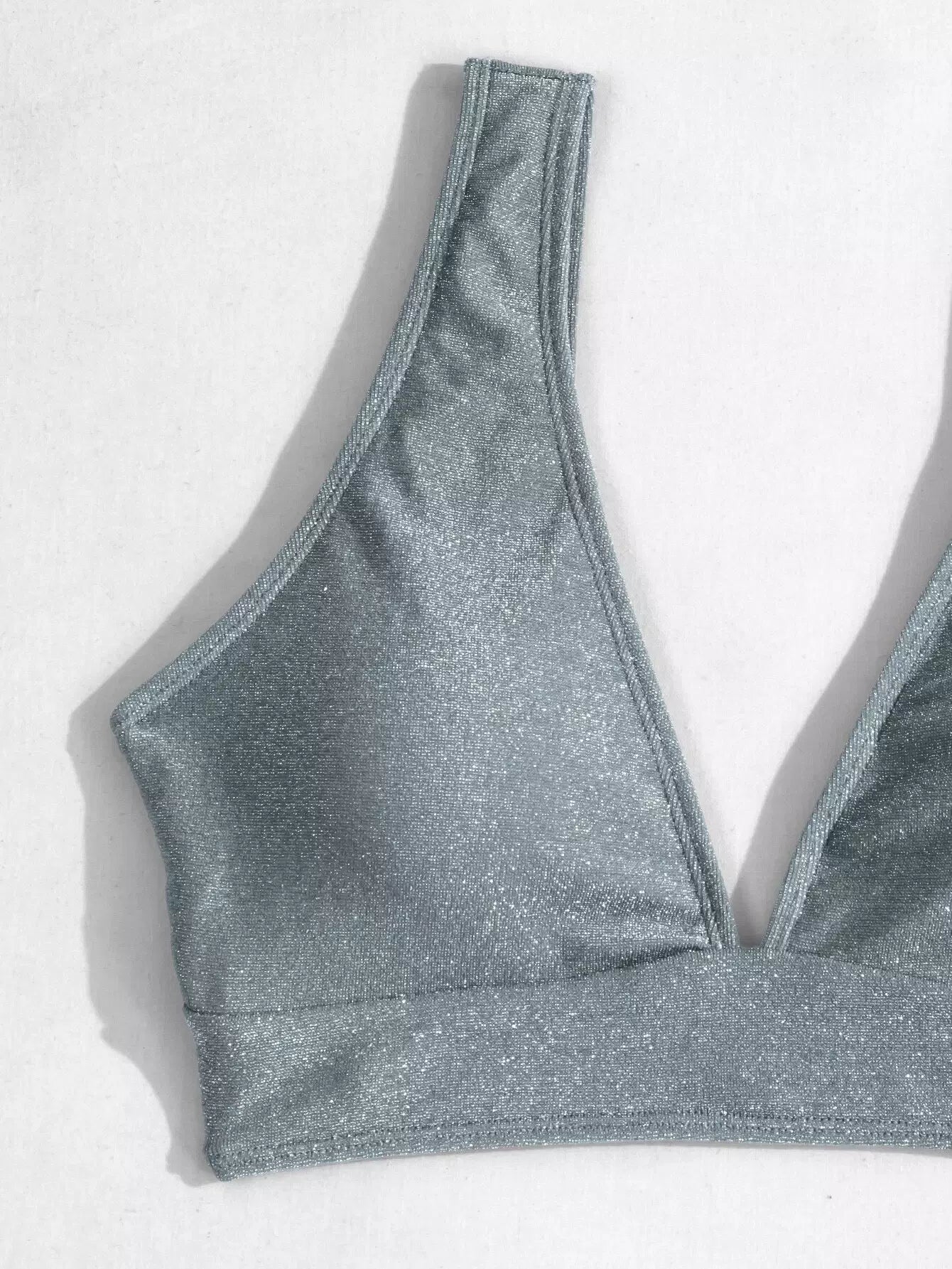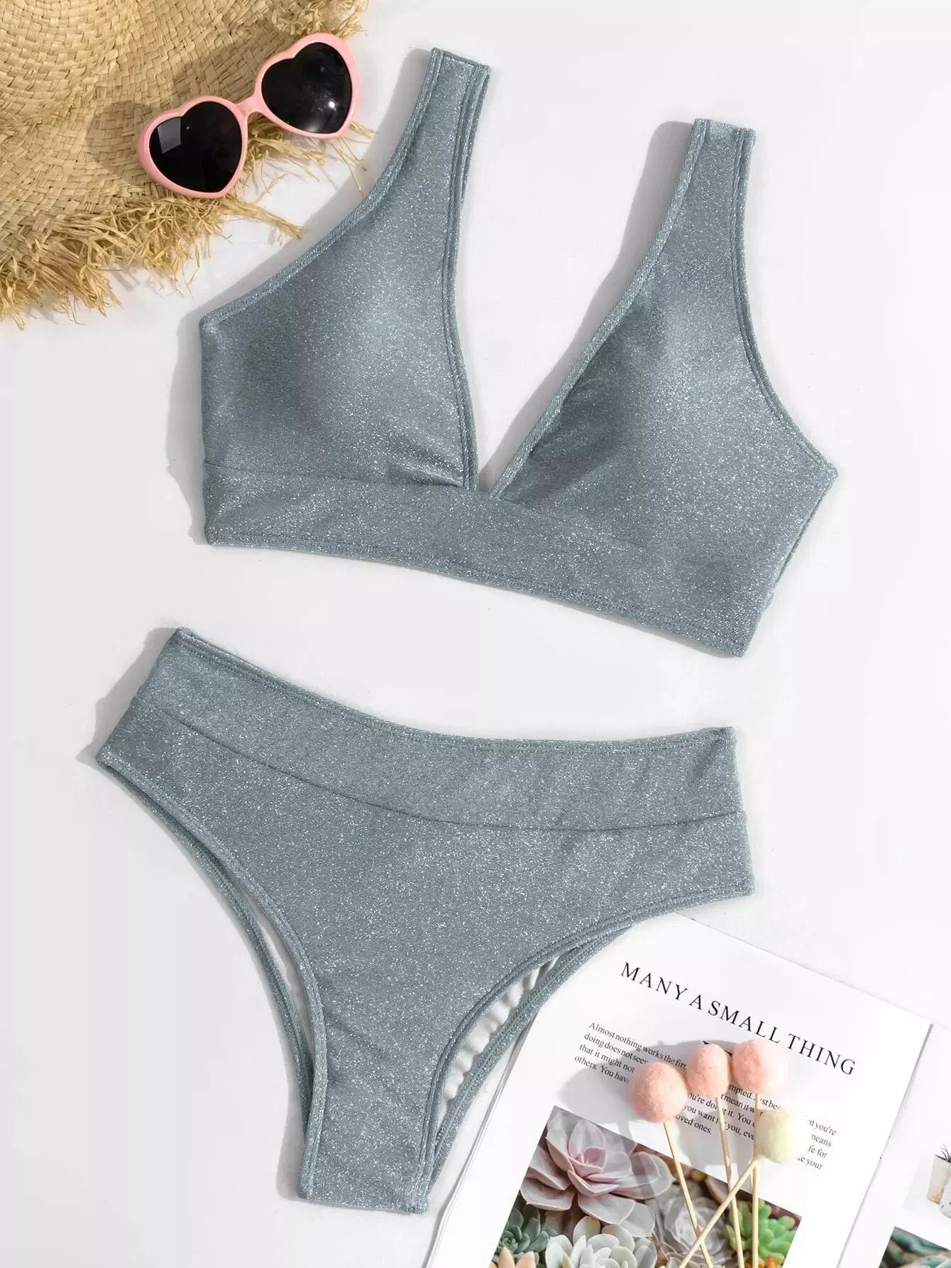 بدلة سباحة بيكيني برقبة على شكل V براق
