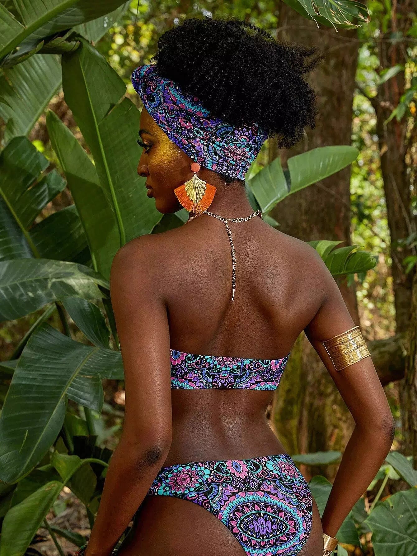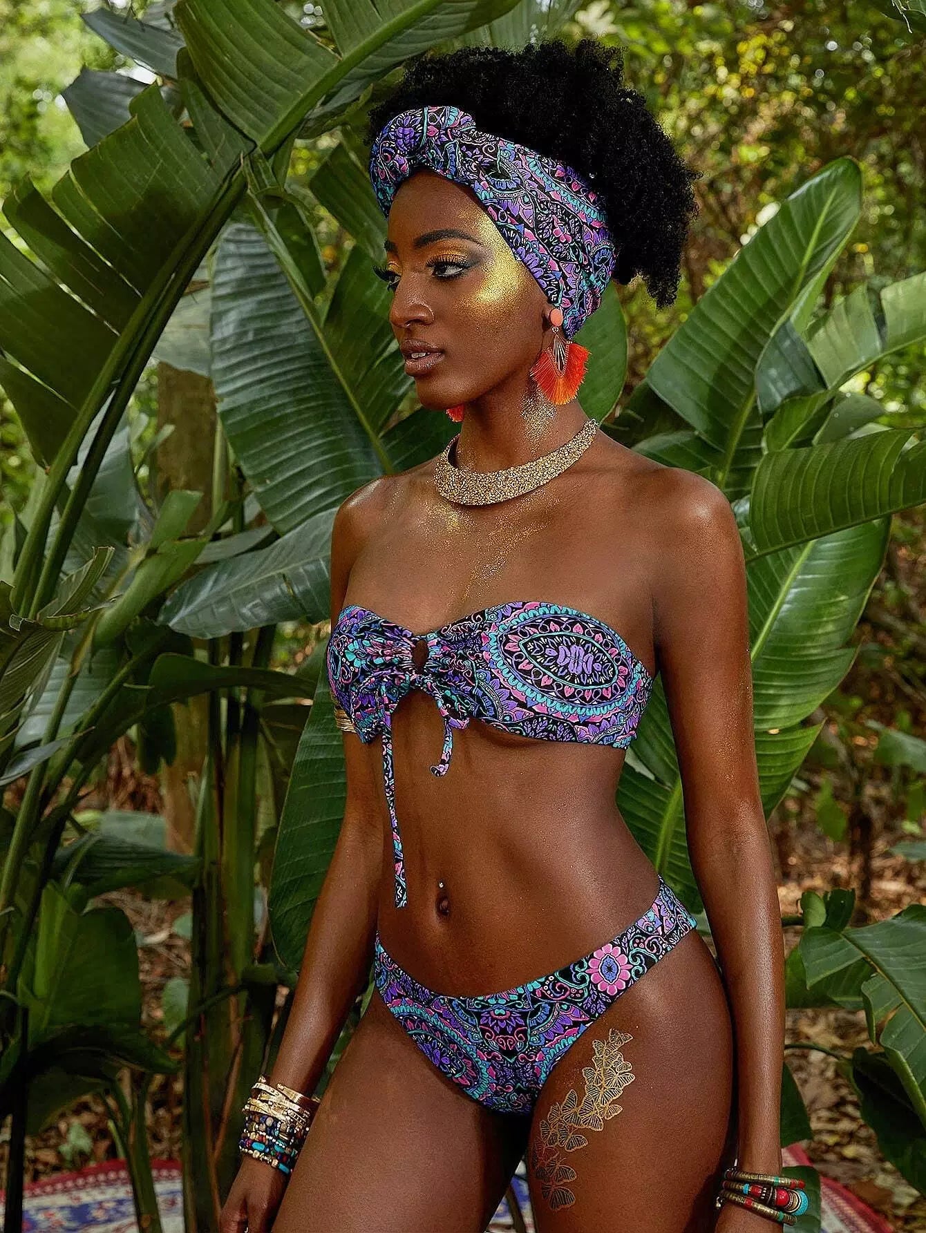 بدلة سباحة بيكيني بعقدة أمامية بعصابة من الأمام