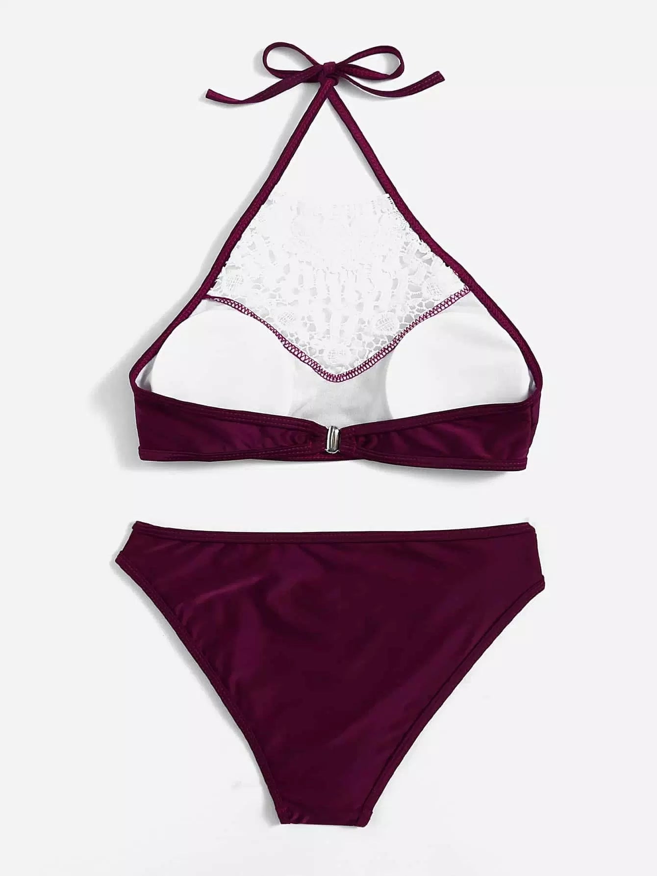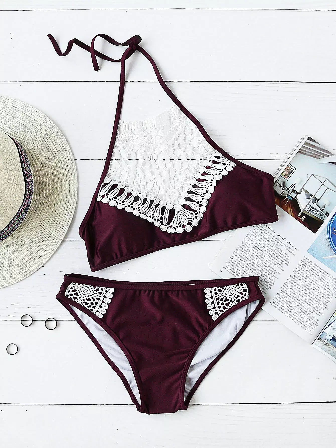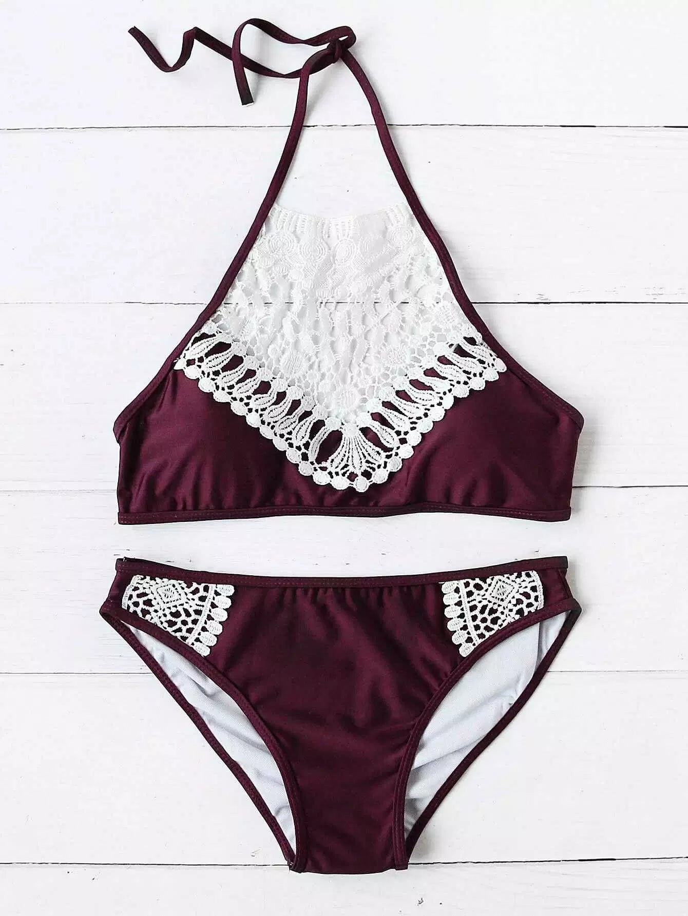 بدلة سباحة بيكيني دانتيل كروشيه رسن كروشيه