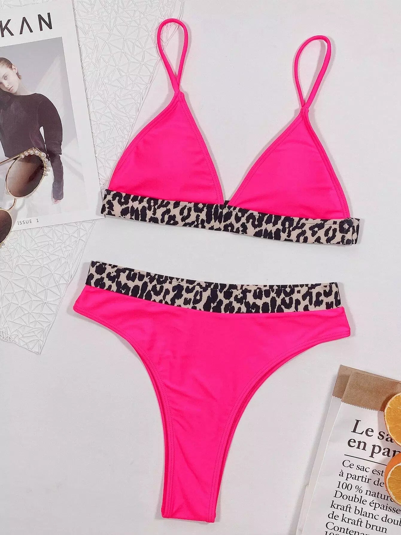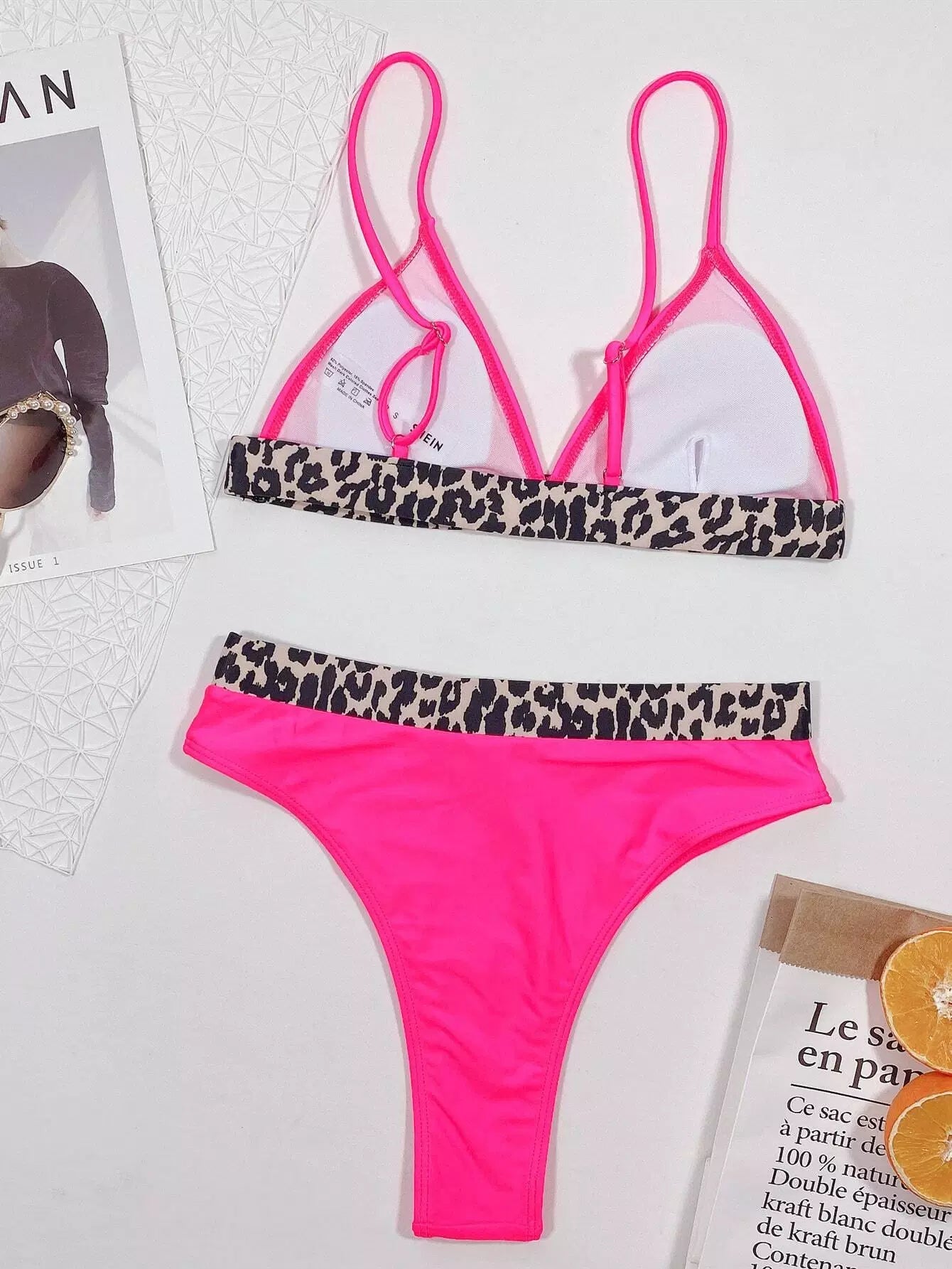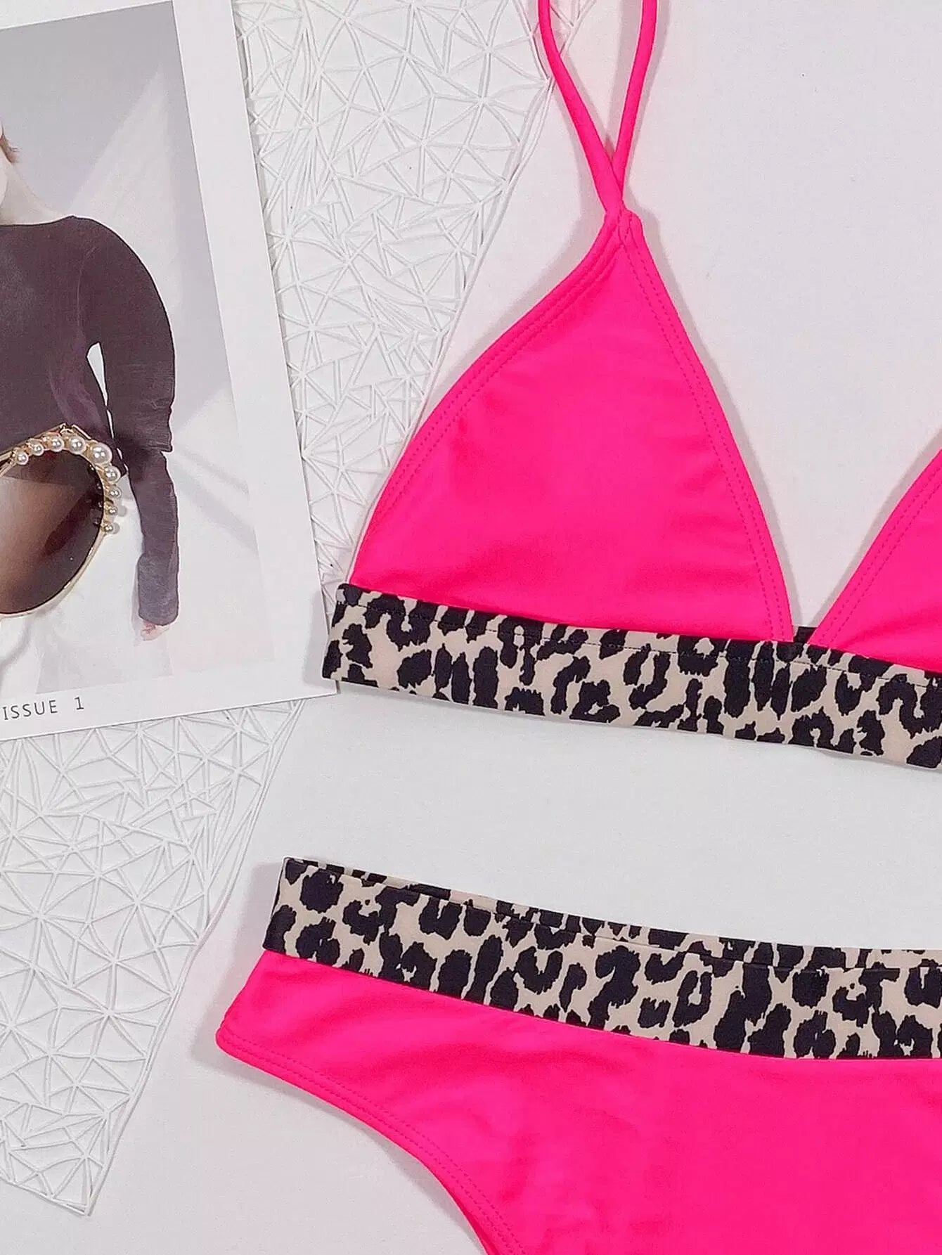 بدلة سباحة بيكيني برقبة على شكل جلد النمر على شكل V