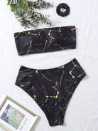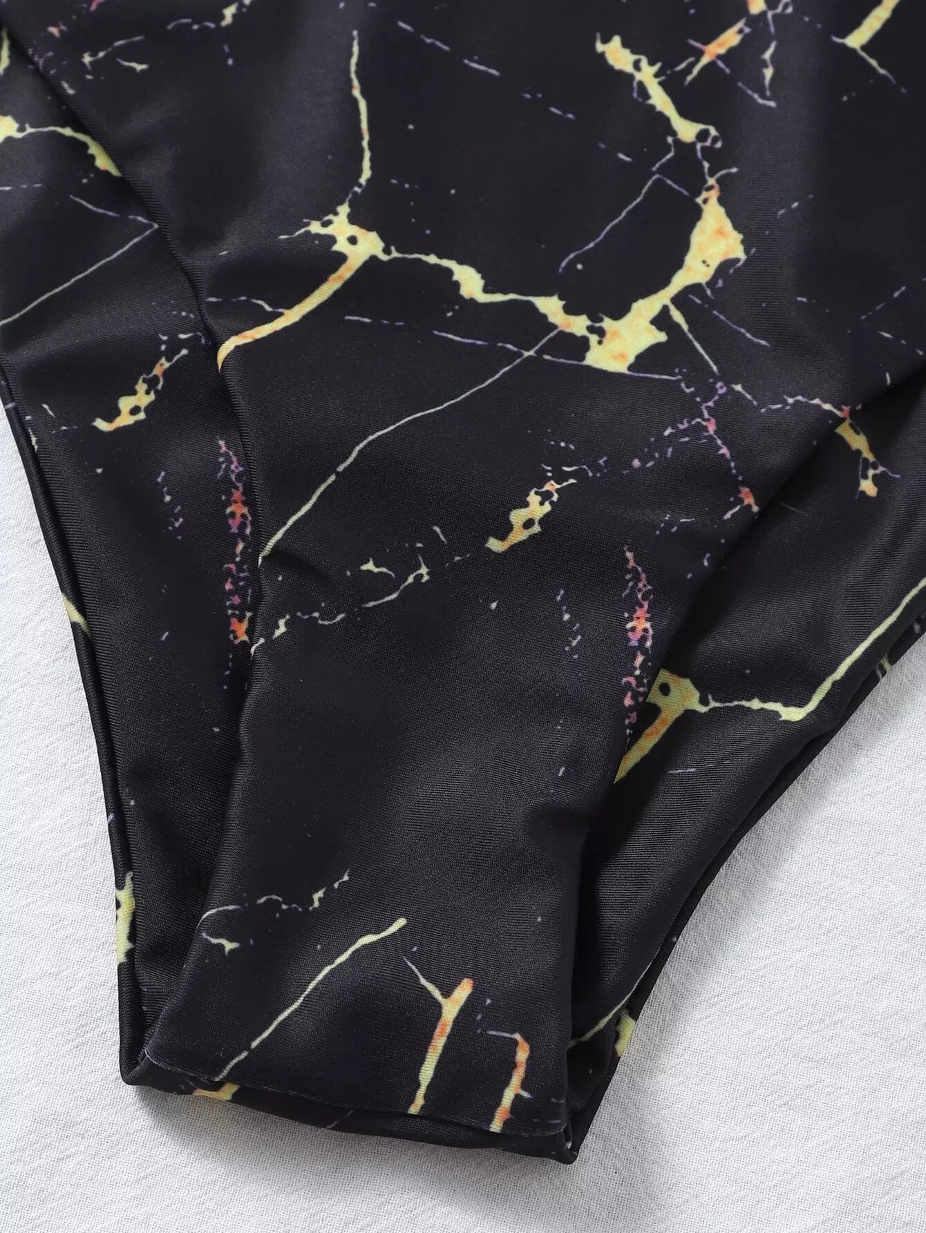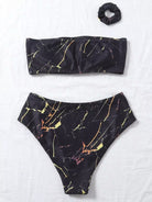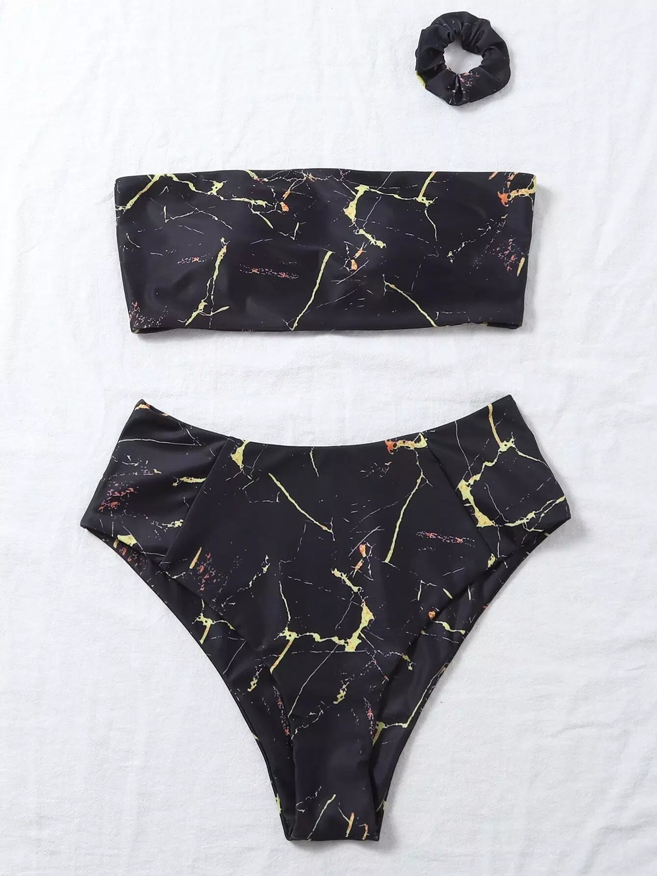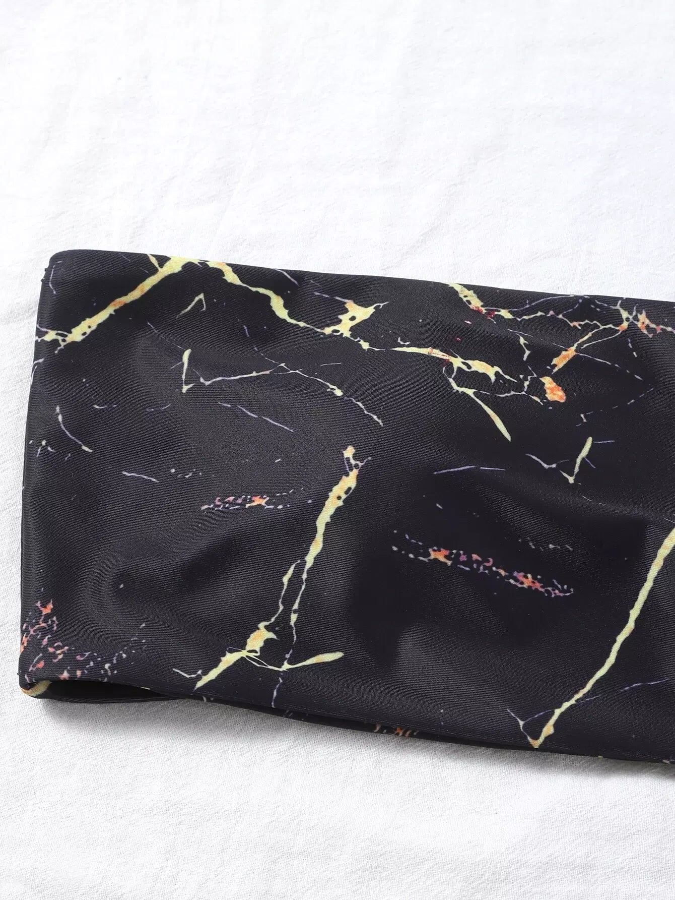 ملابس سباحة بيكيني بعصابة بنقشة رخامية وعصابة سباحة
