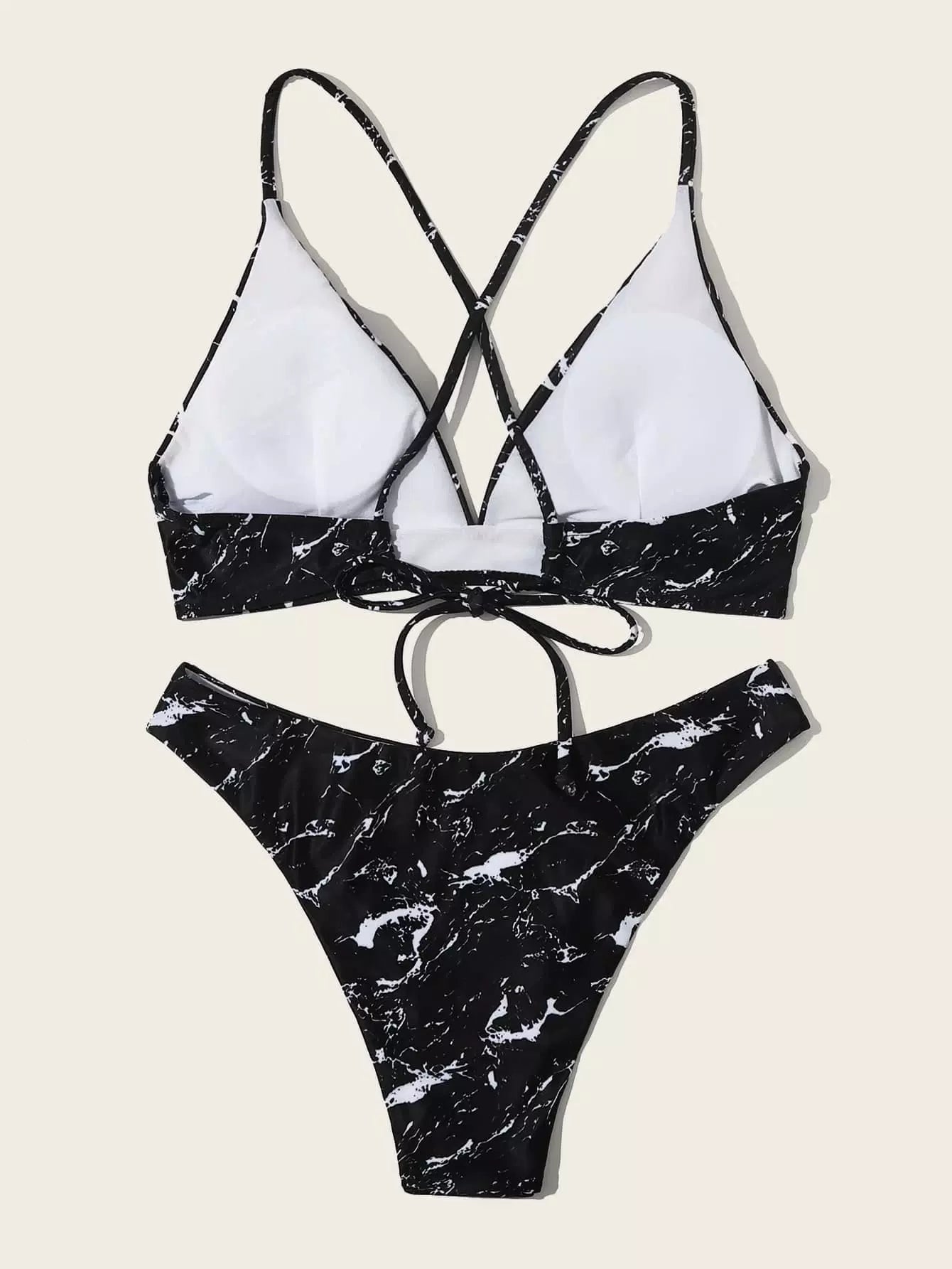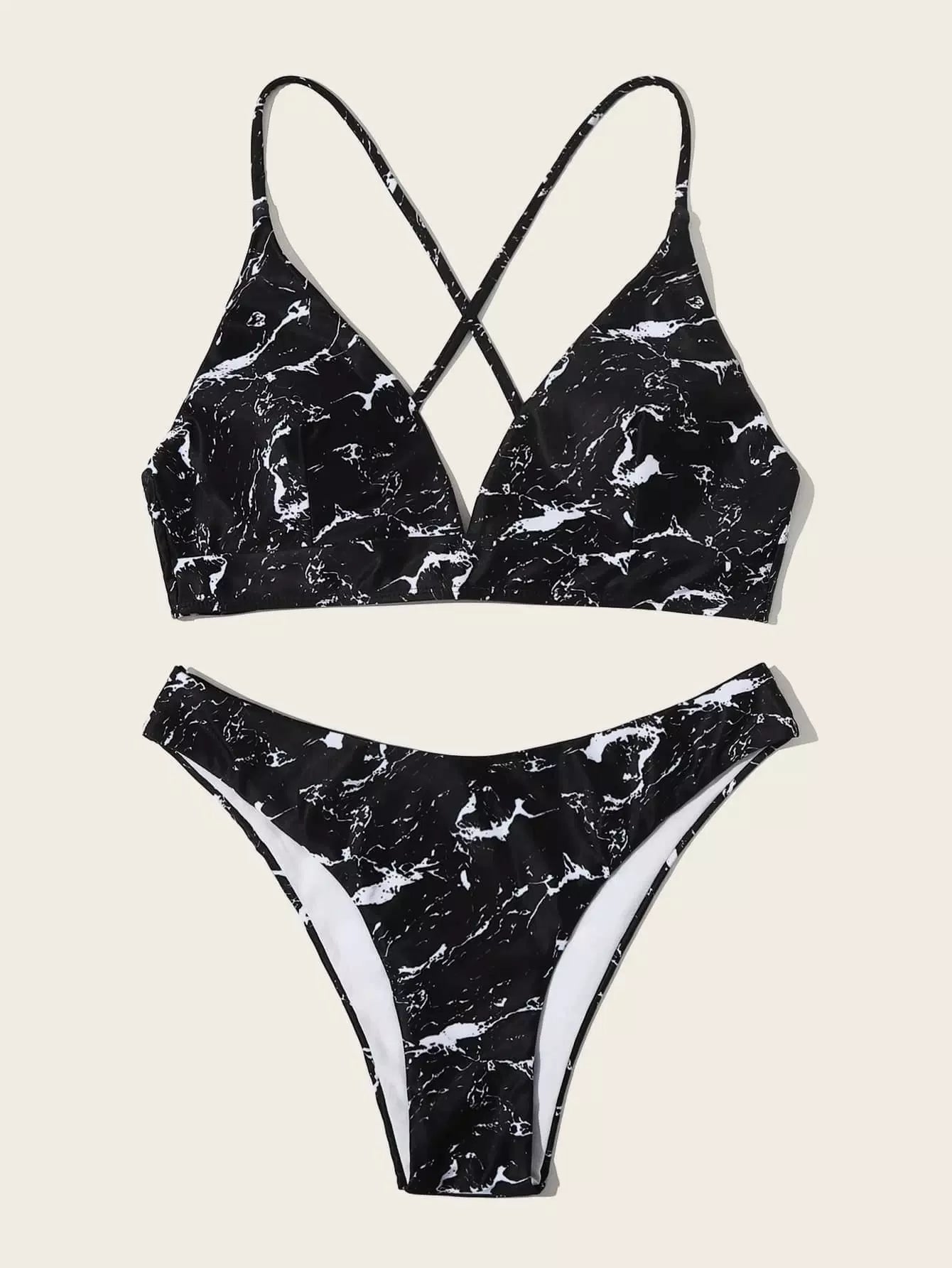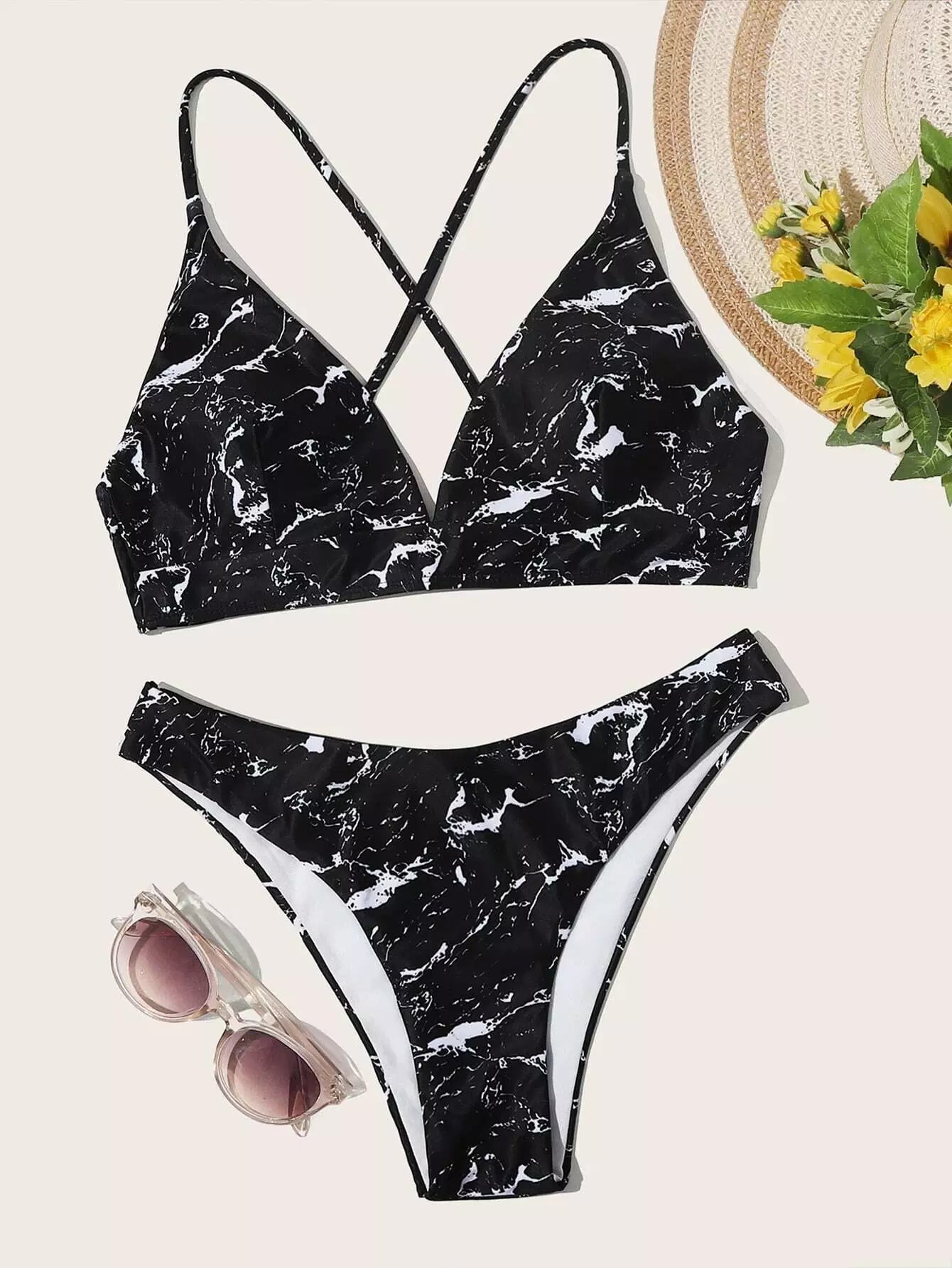 بدلة سباحة بيكيني بنقشة الرخام الصفيق
