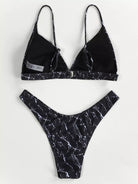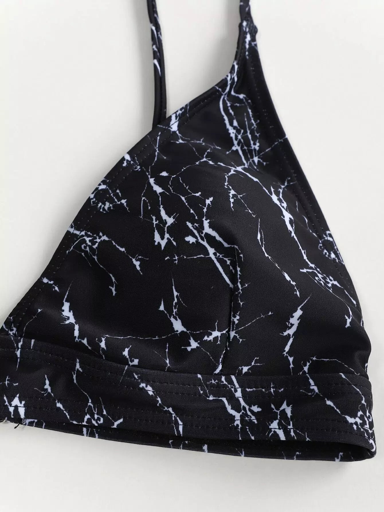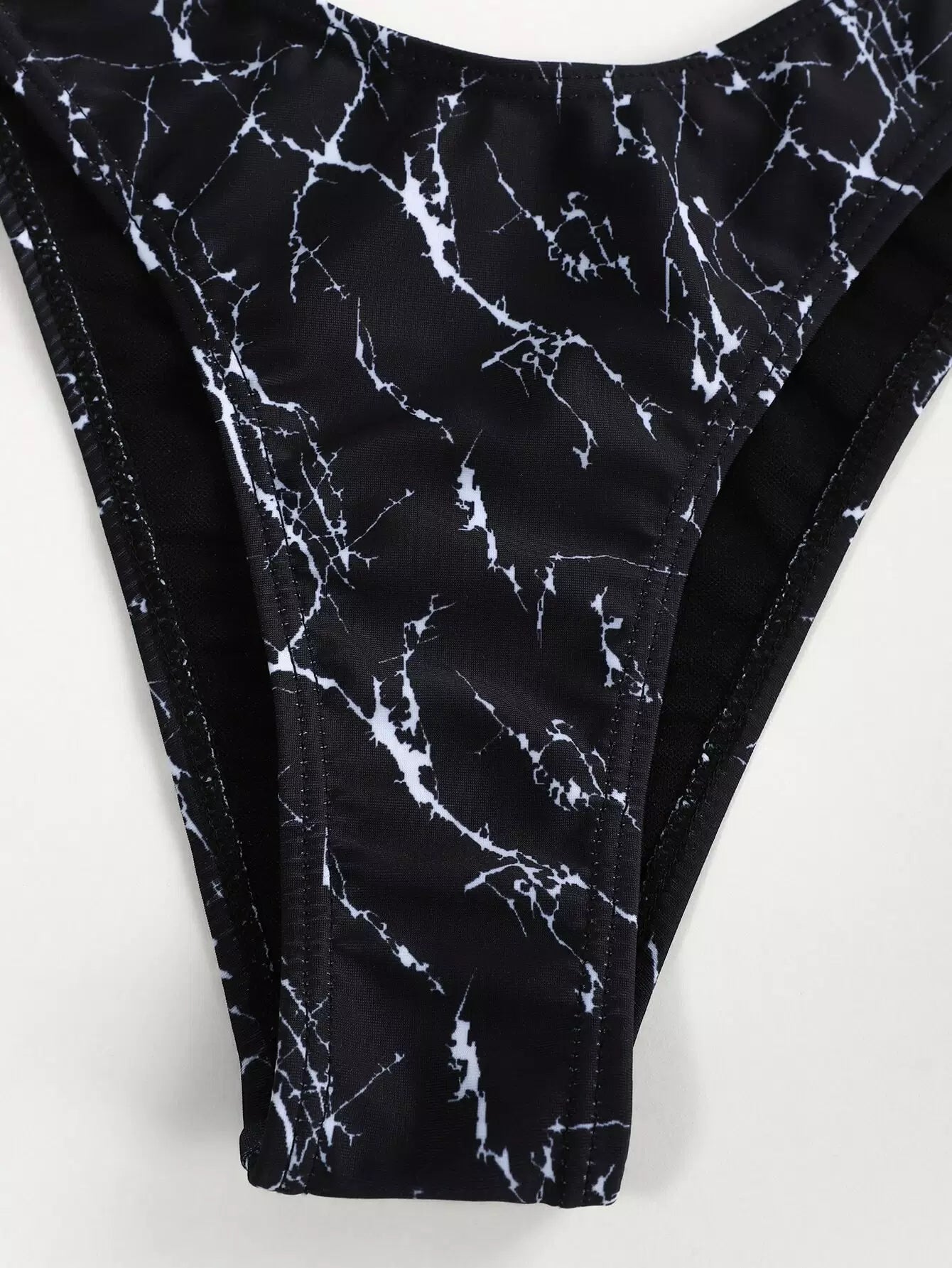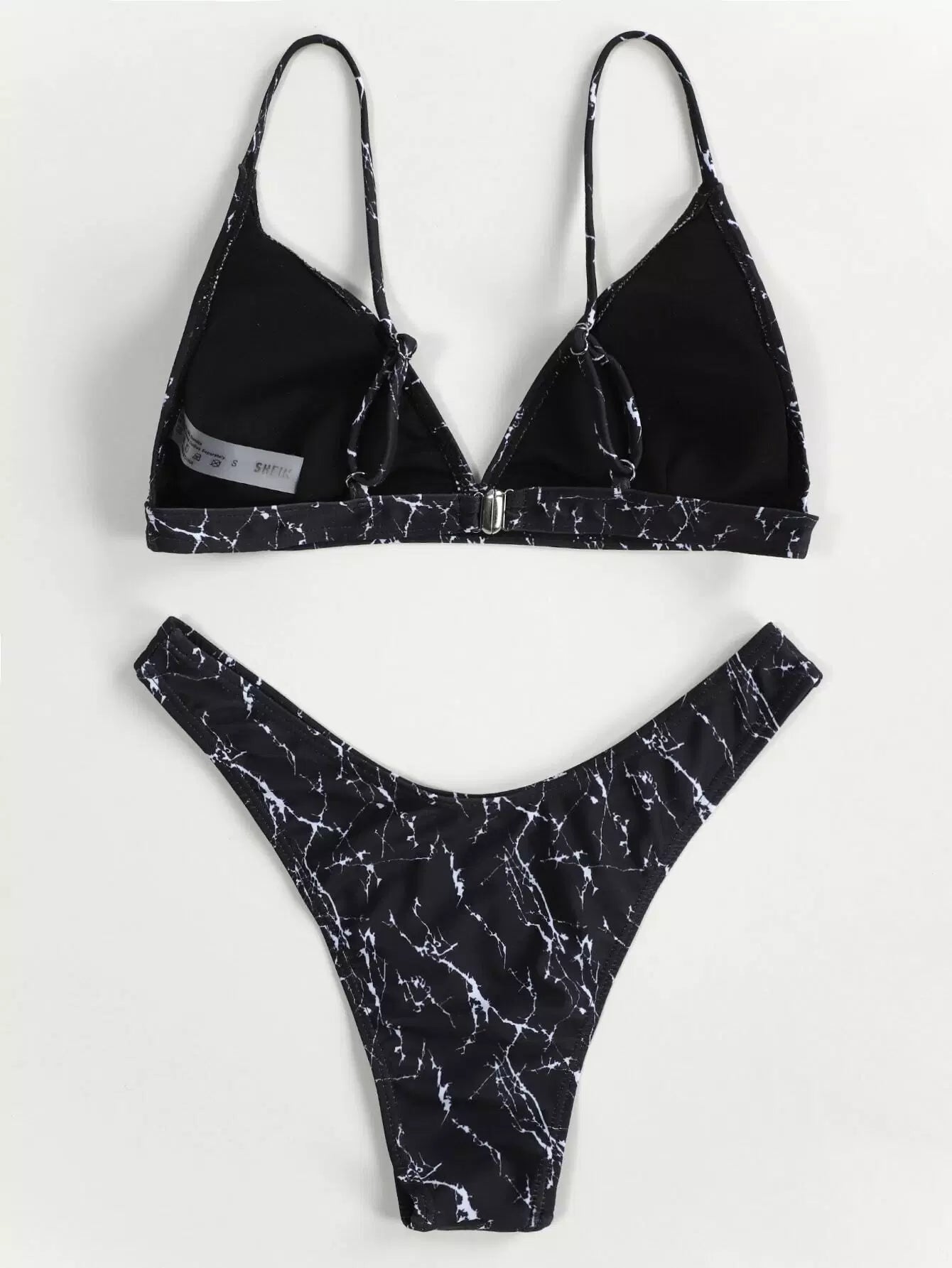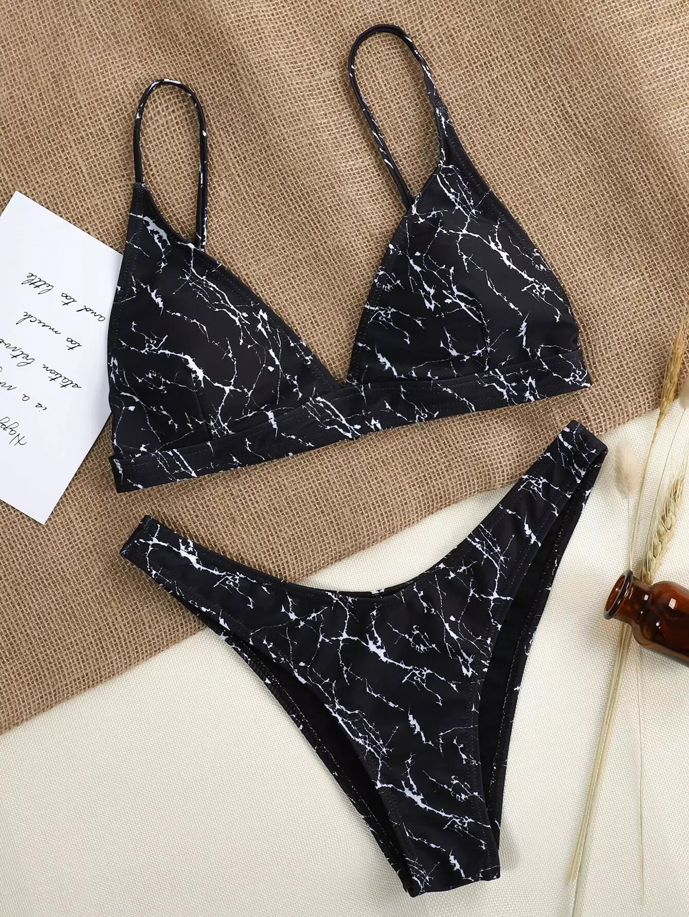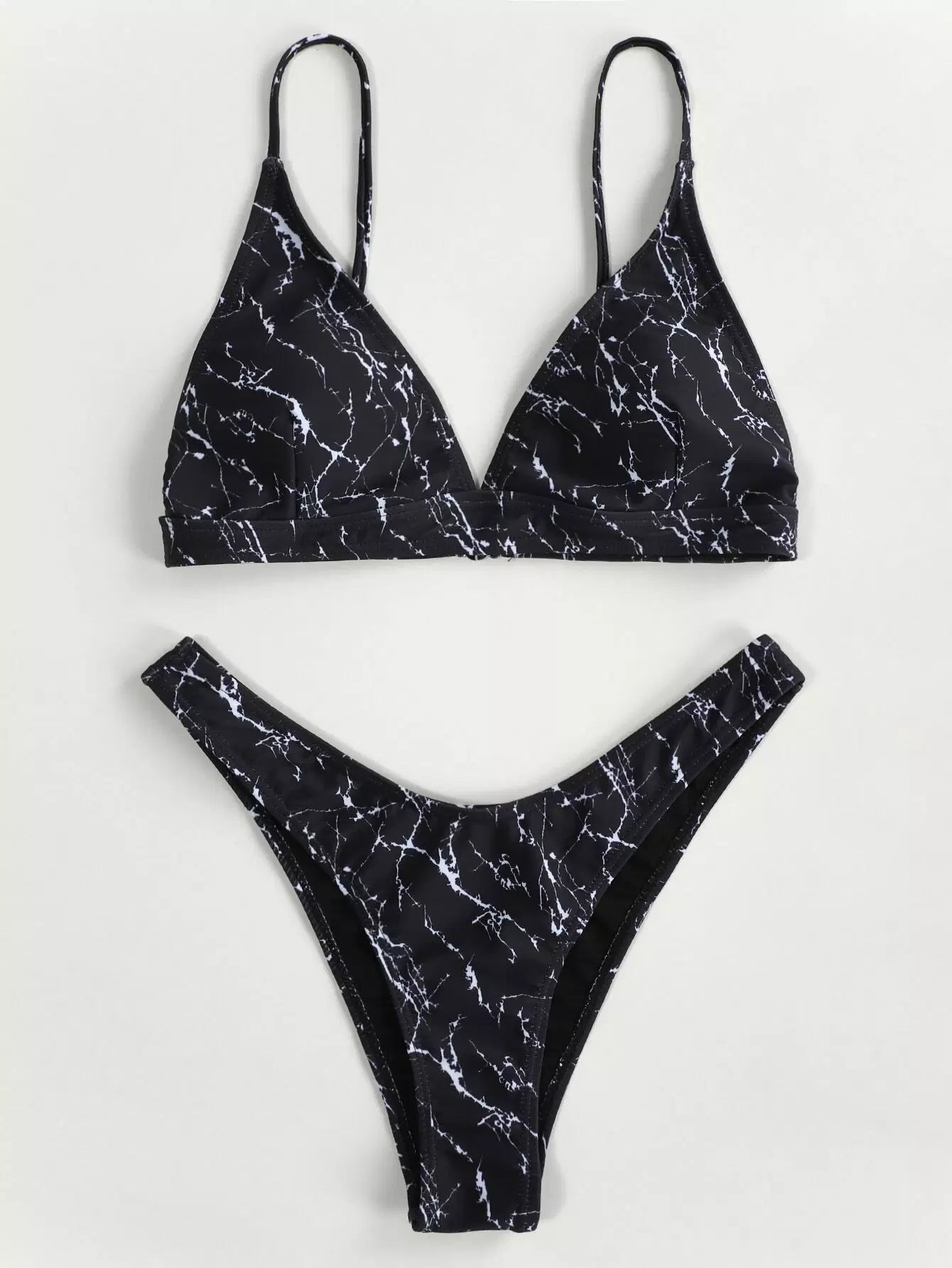 ملابس سباحة بيكيني بطبعة رخامية مثلثة بقصّة عالية