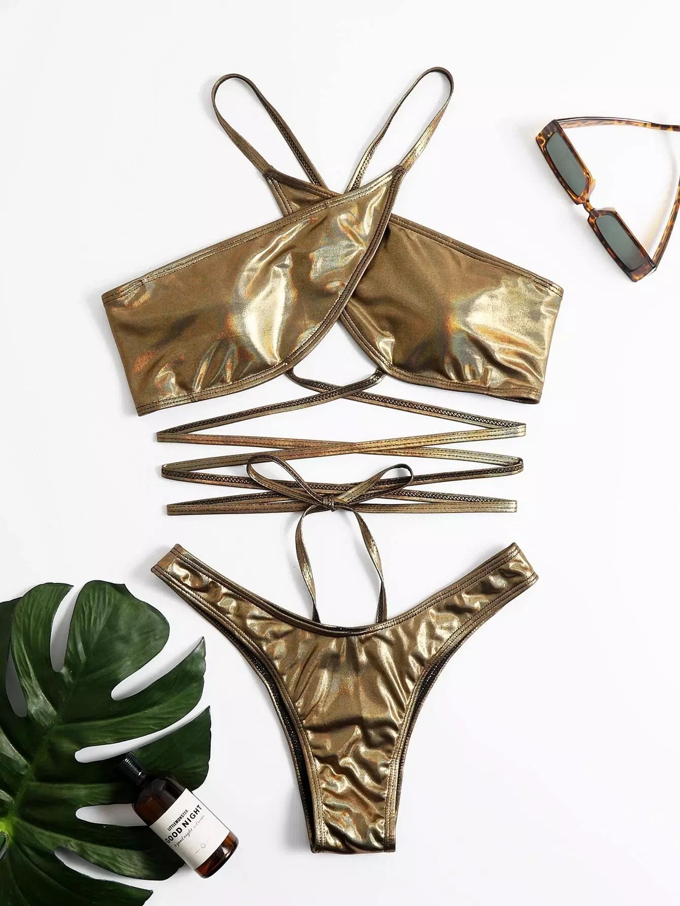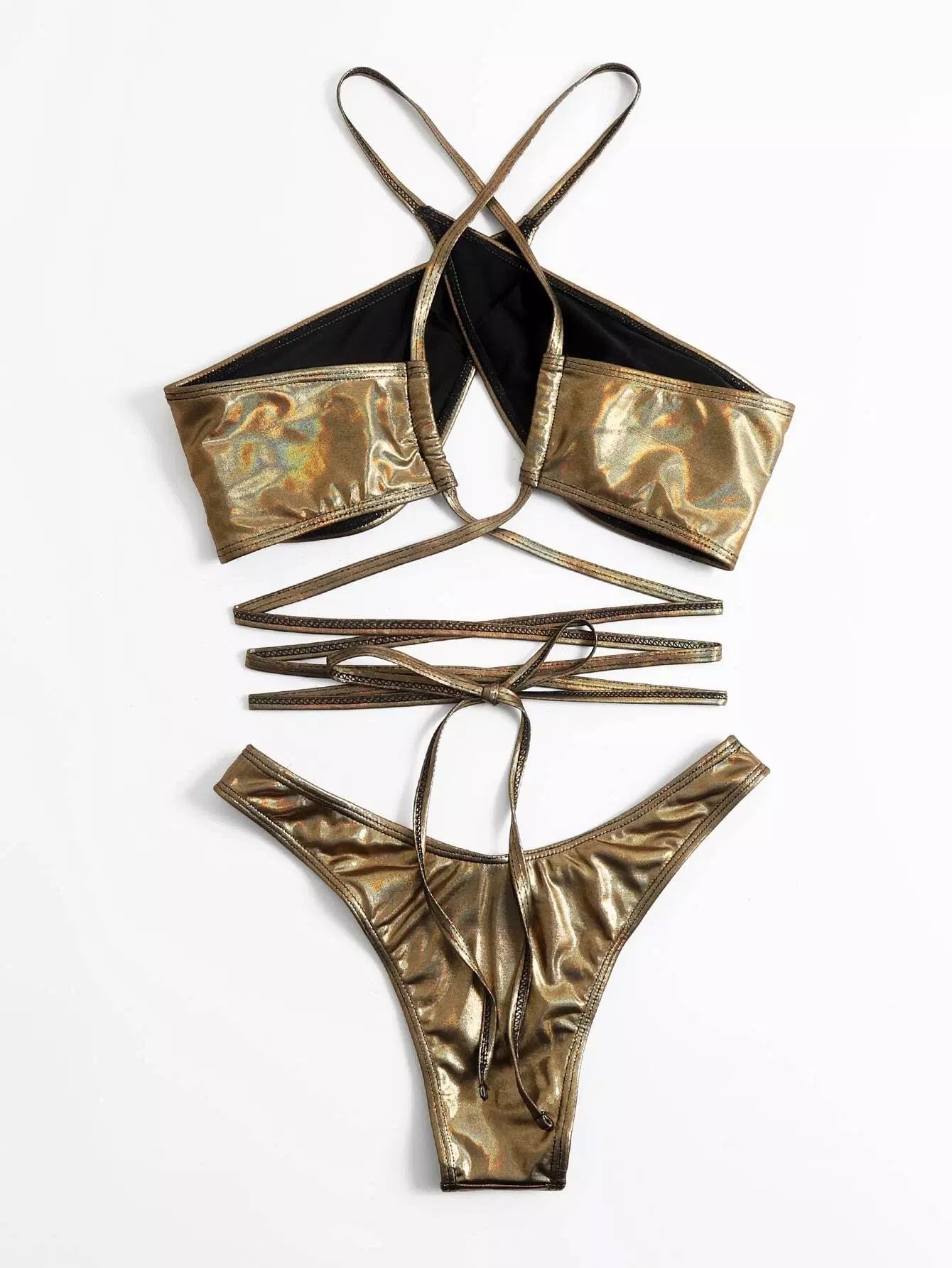 بدلة سباحة بيكيني بقصّة عالية متقاطعة معدنية