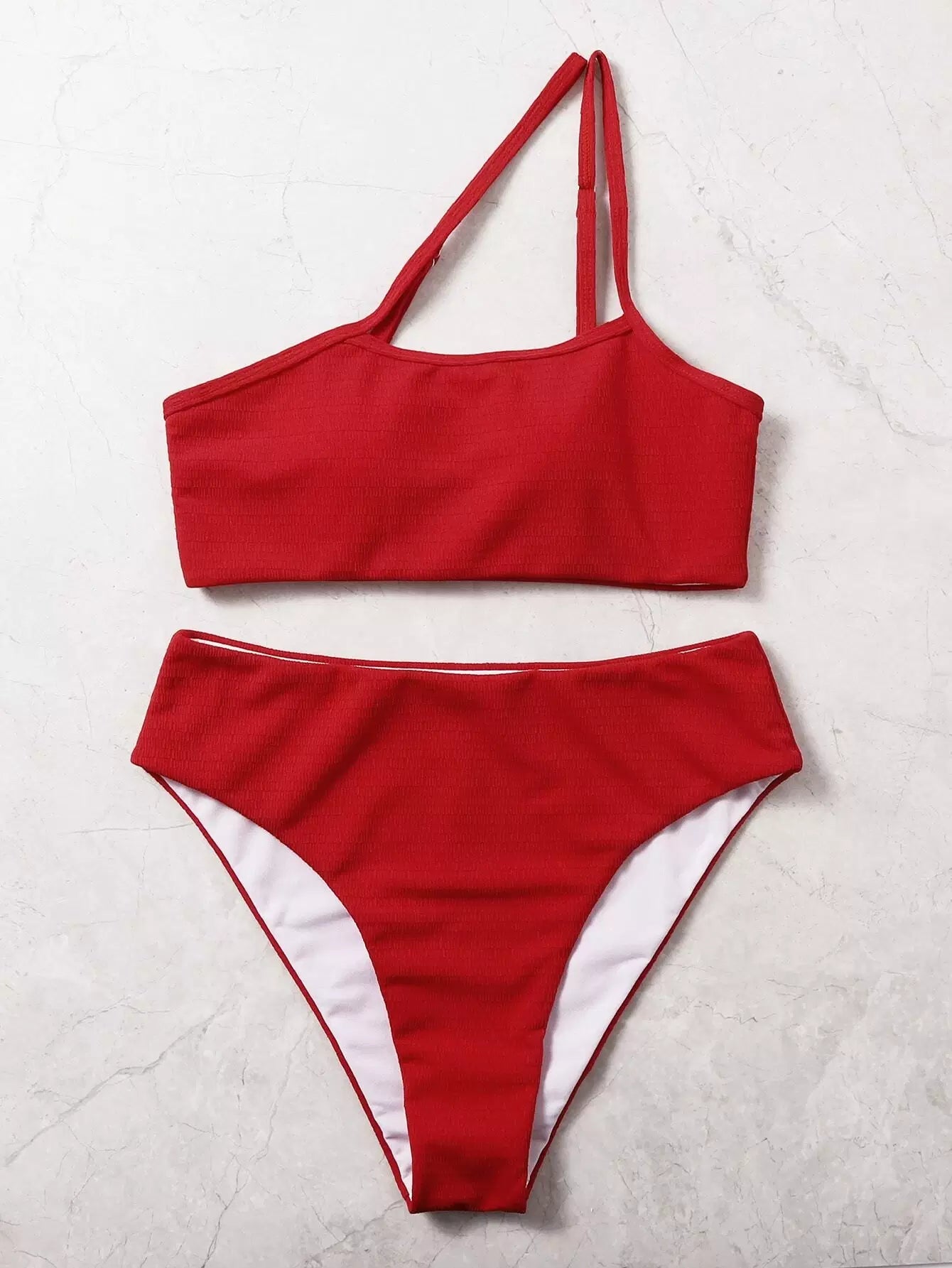 بدلة سباحة بيكيني عالي الخصر بكتف واحد