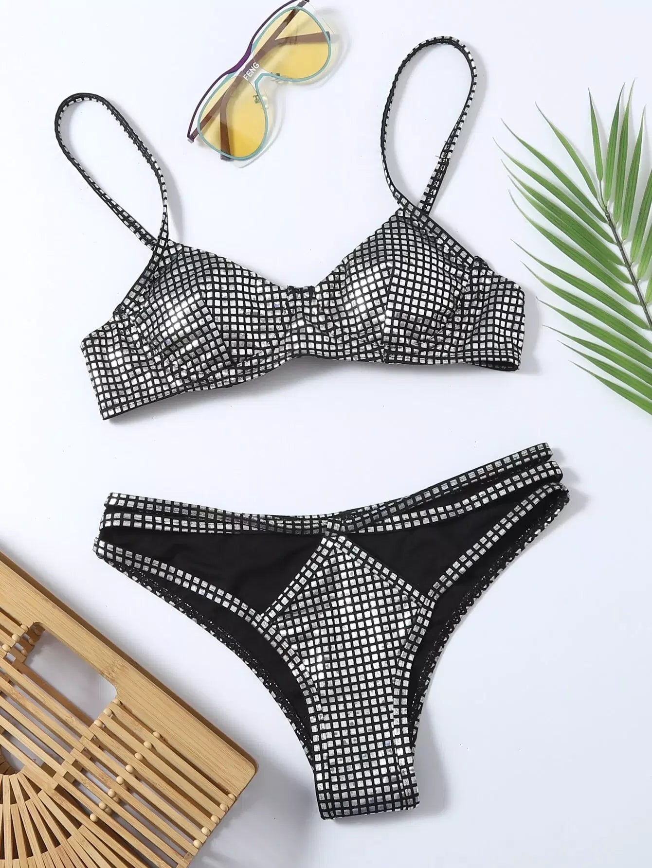 بيكيني سباحة بيكيني منقوش من الأسلاك الداخلية المعدنية