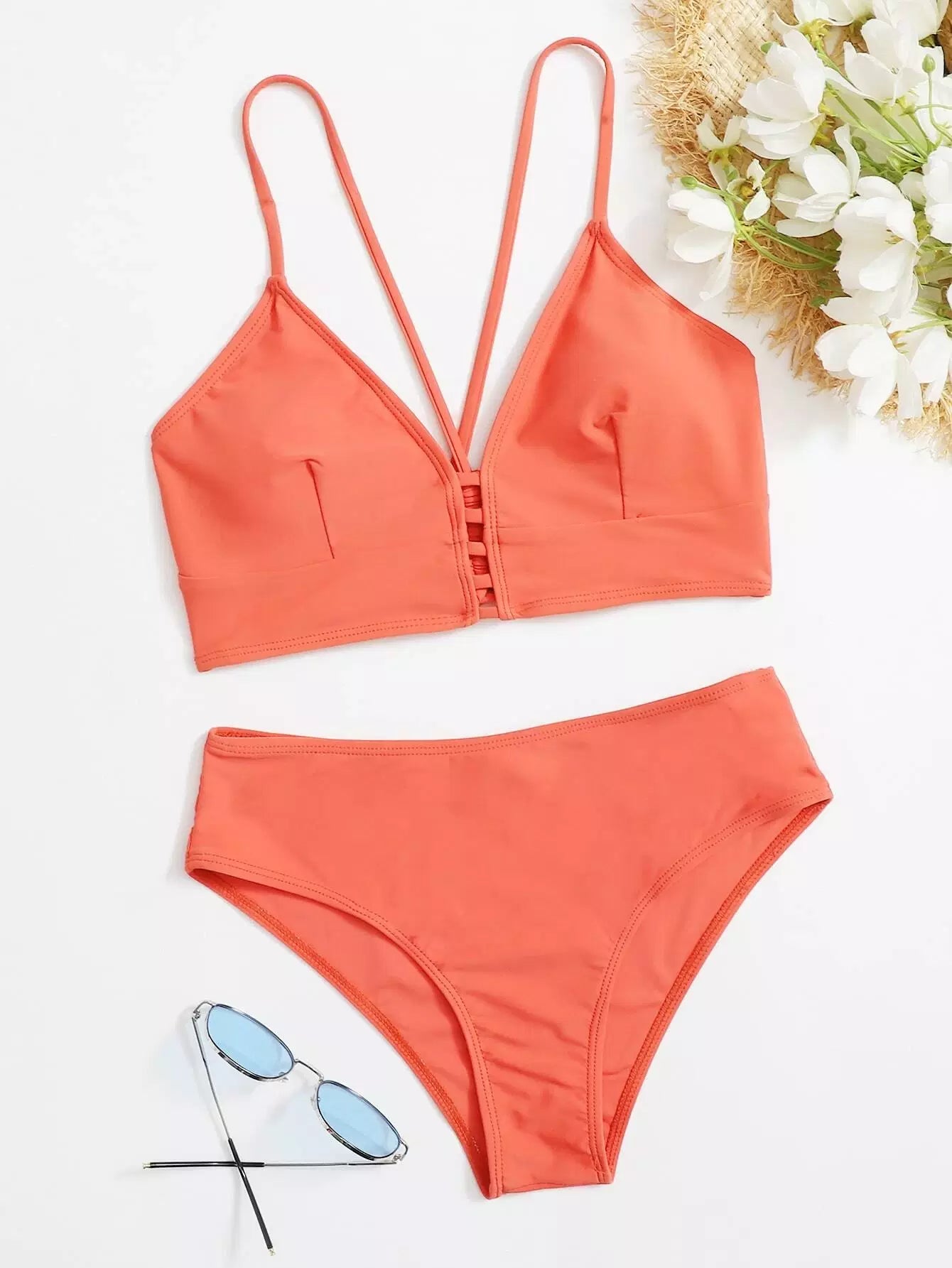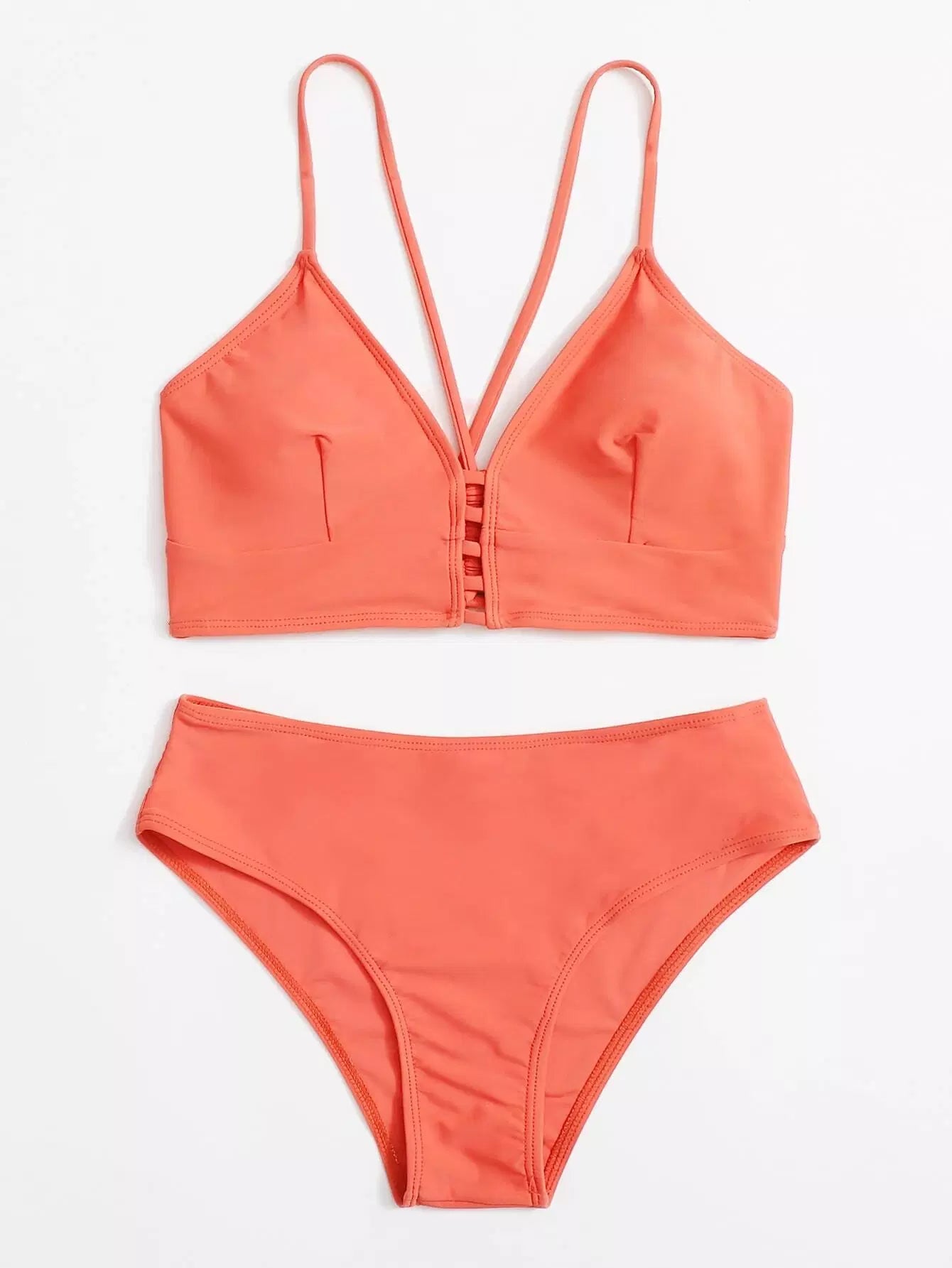 بدلة سباحة بيكيني سادة بقصات مكشوفة
