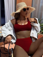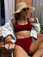 مايوه بيكيني سادة عالي الخصر سادة