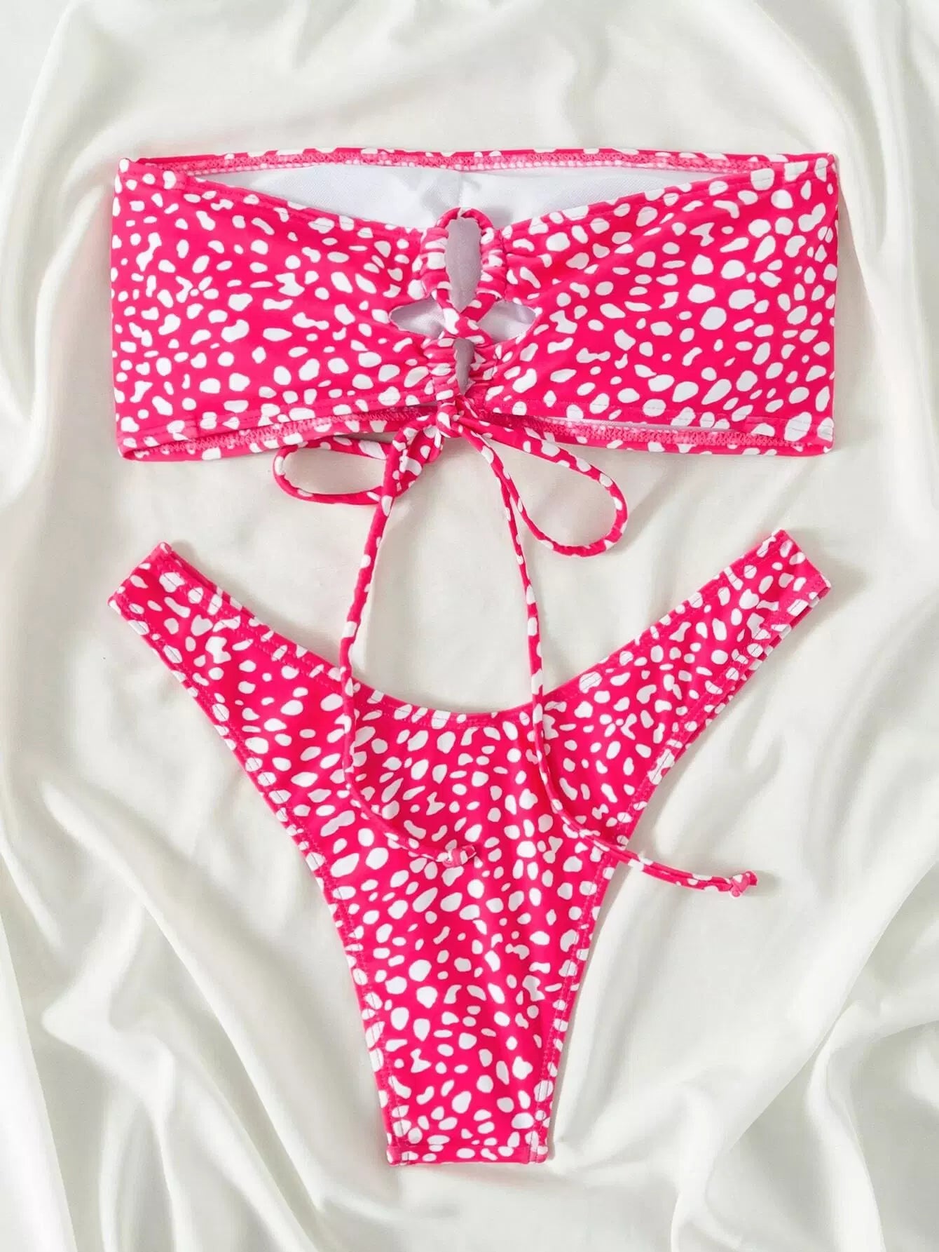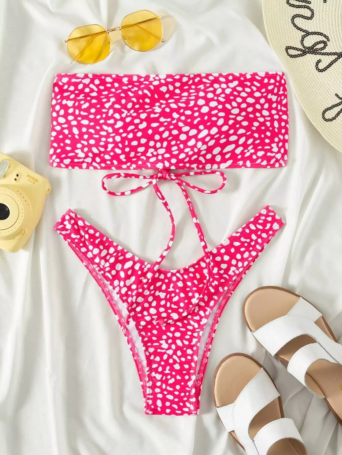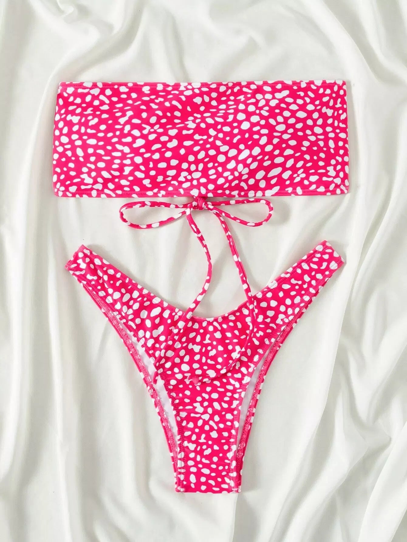 بذلة سباحة بيكيني بطبعة دالمسيان عشوائية بطبعة دالمسيان