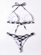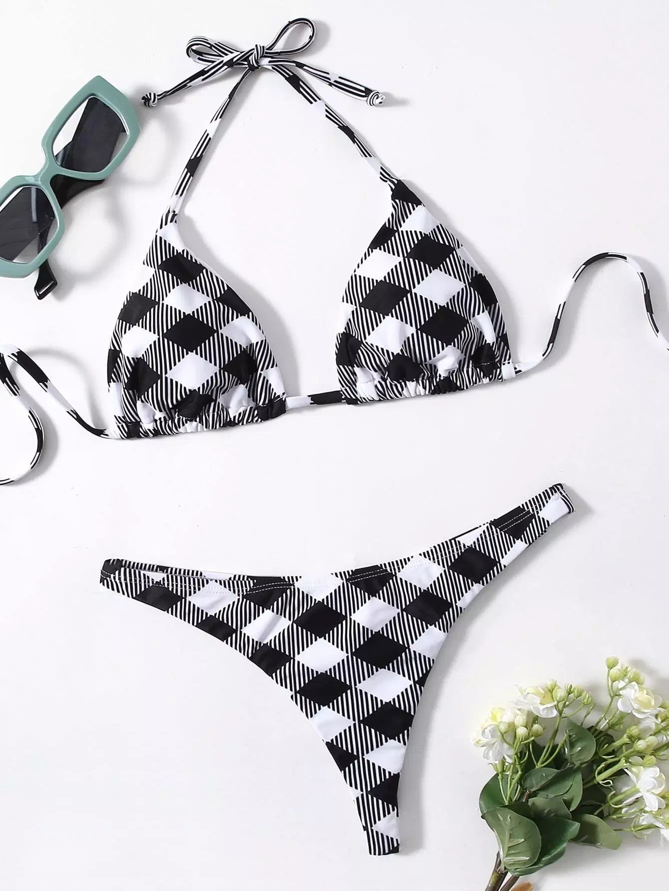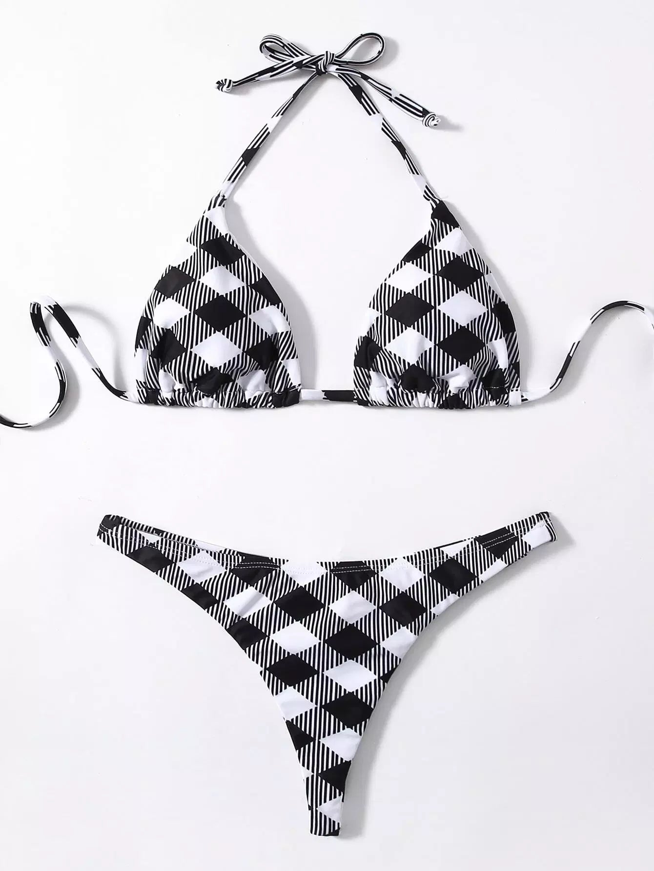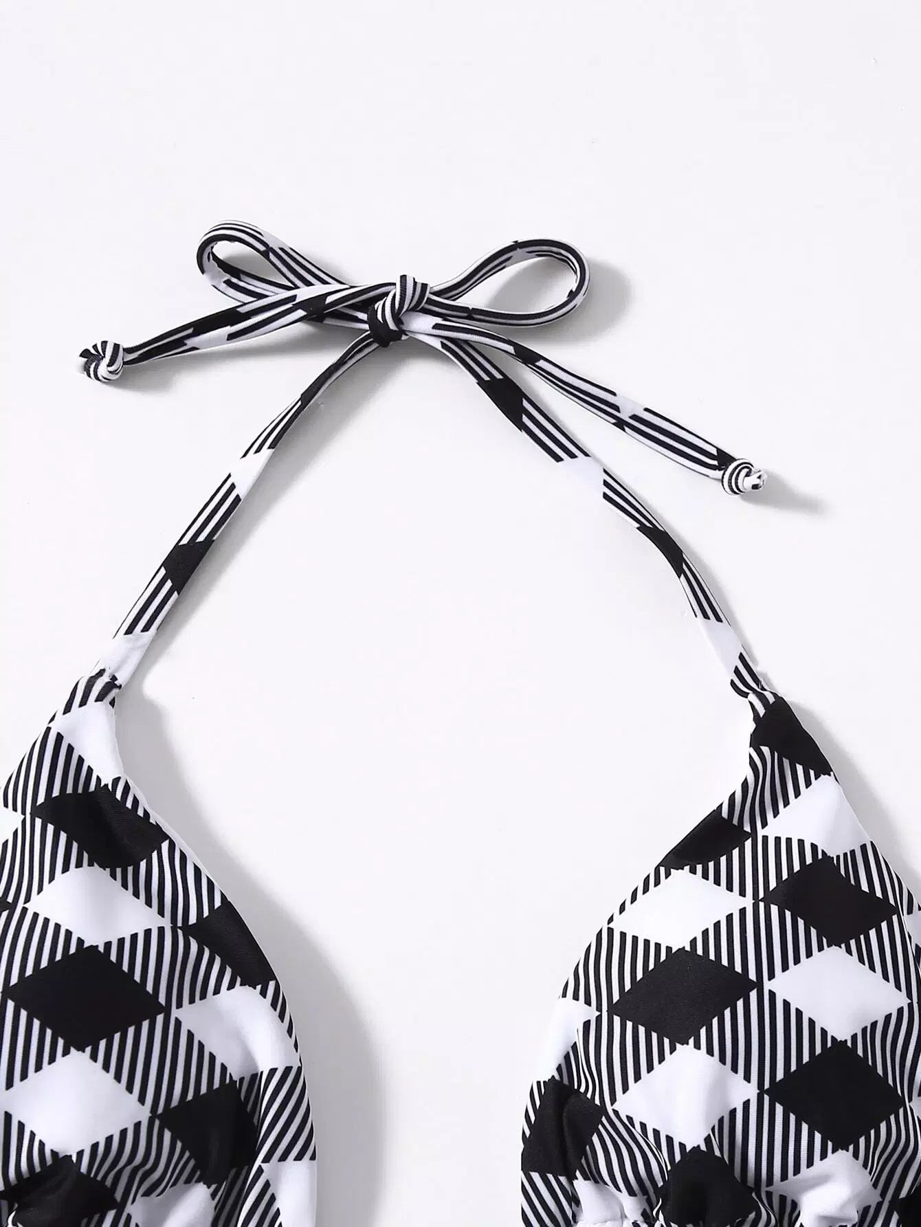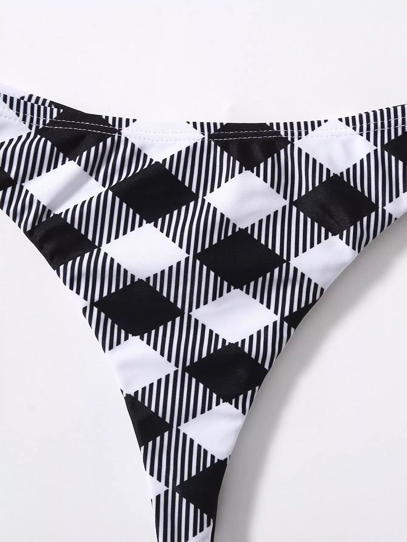 ملابس سباحة بيكيني بطبعة مربعات عشوائية