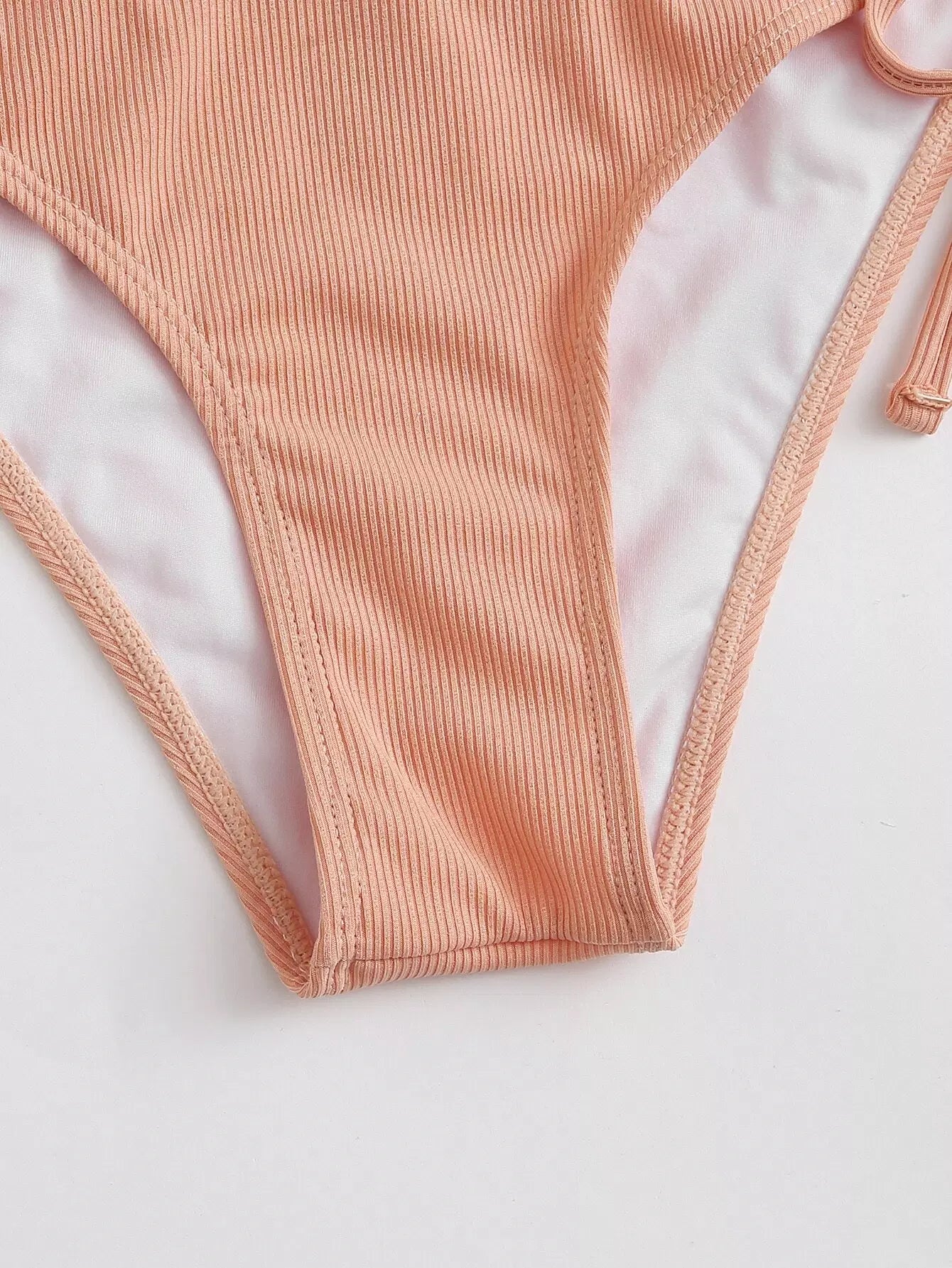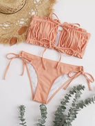 بدلة سباحة بيكيني مكشكشة مكشكشة على شكل ضلع برباط جانبي