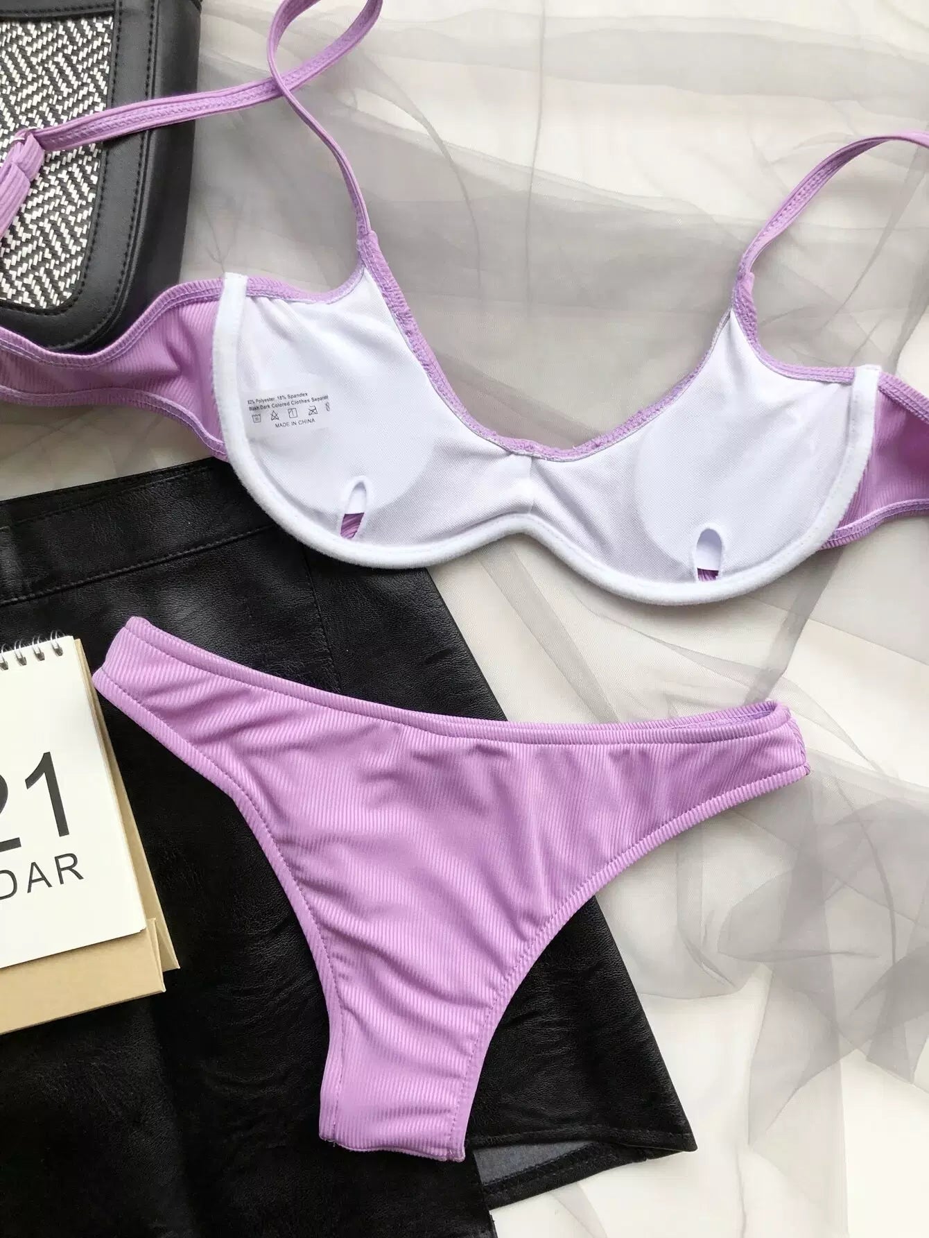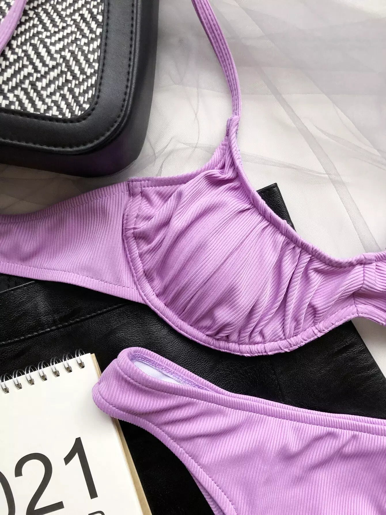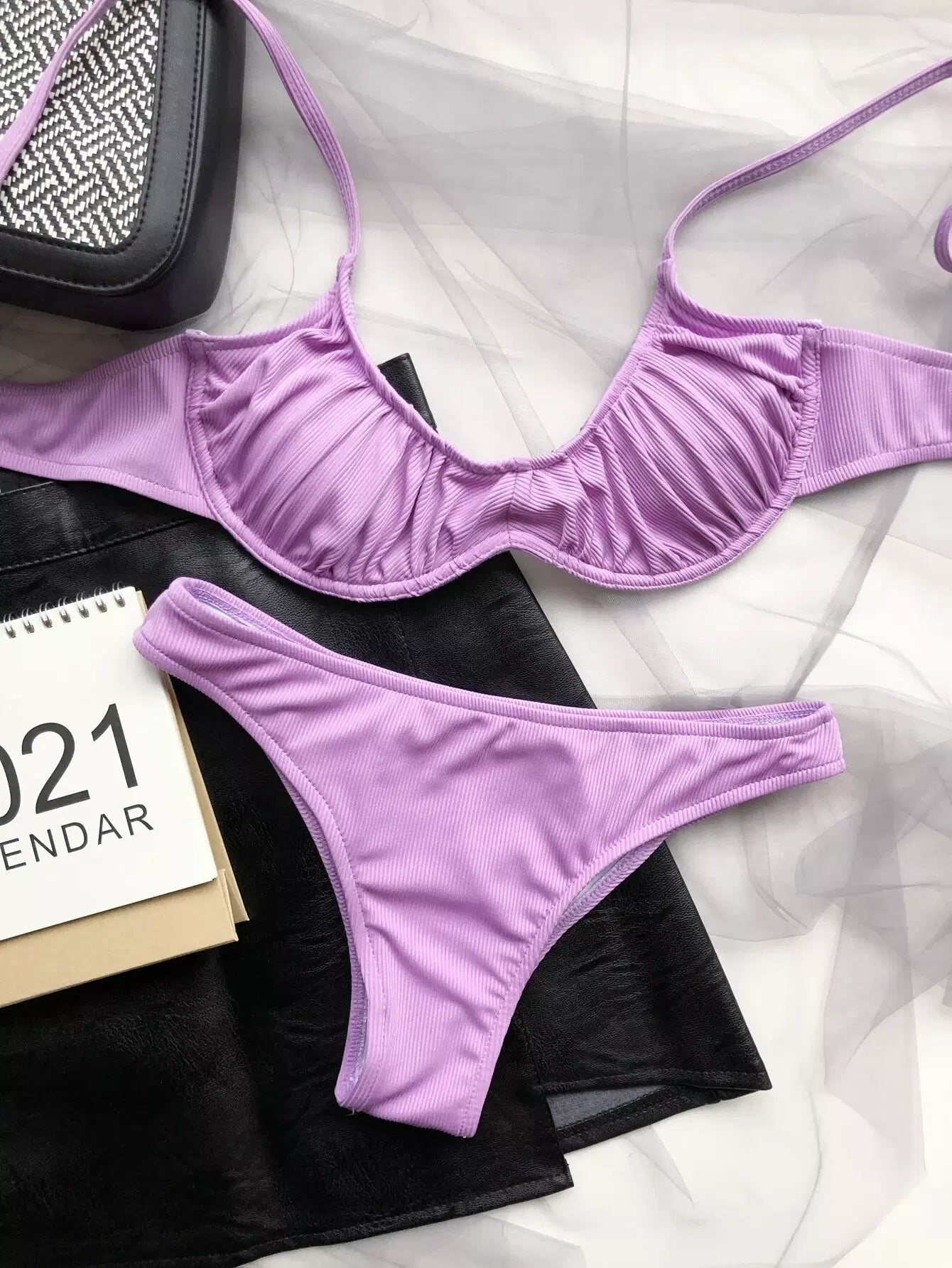 بدلة سباحة بيكيني بيكيني مكشكشة على شكل ضلع