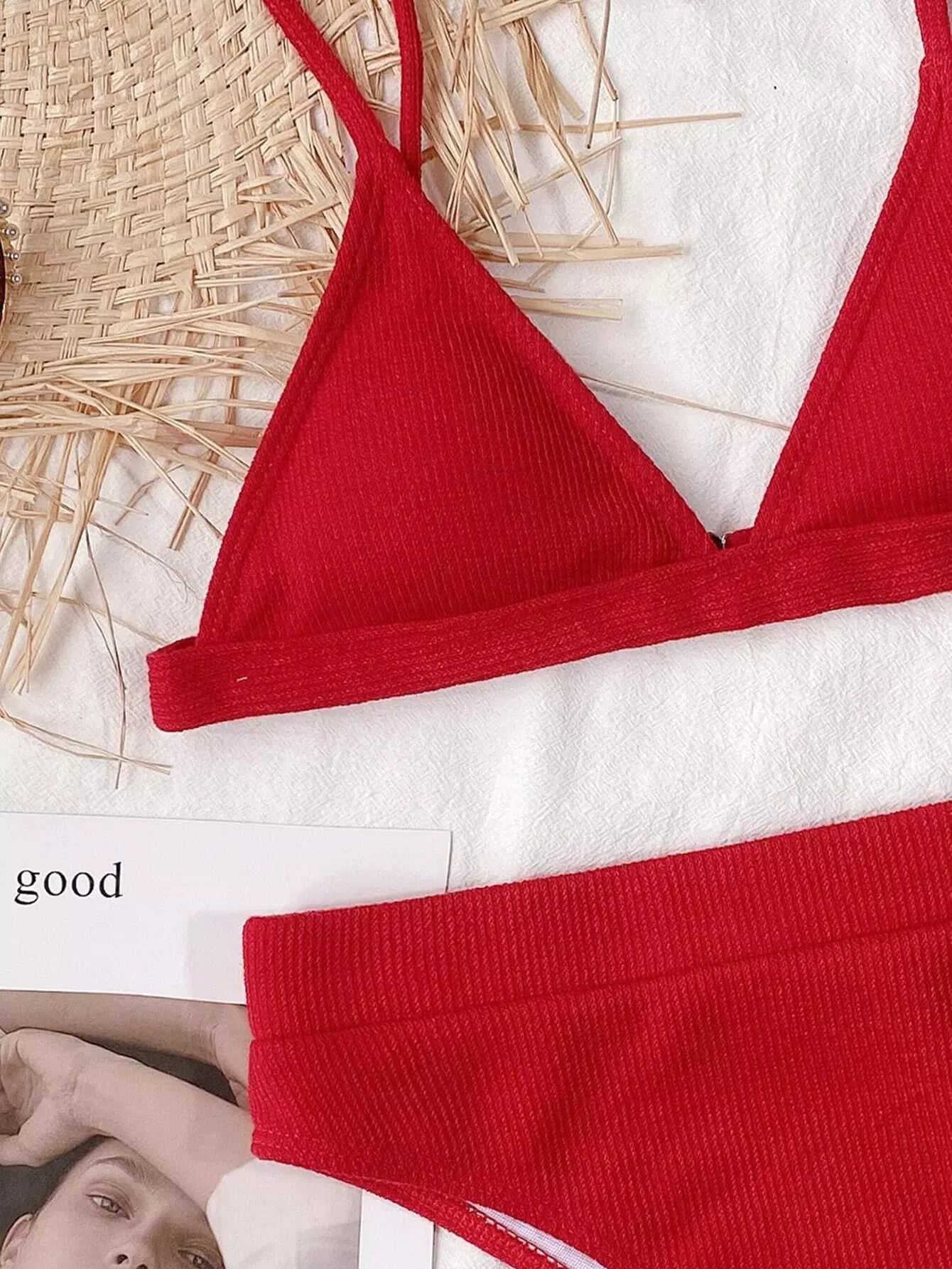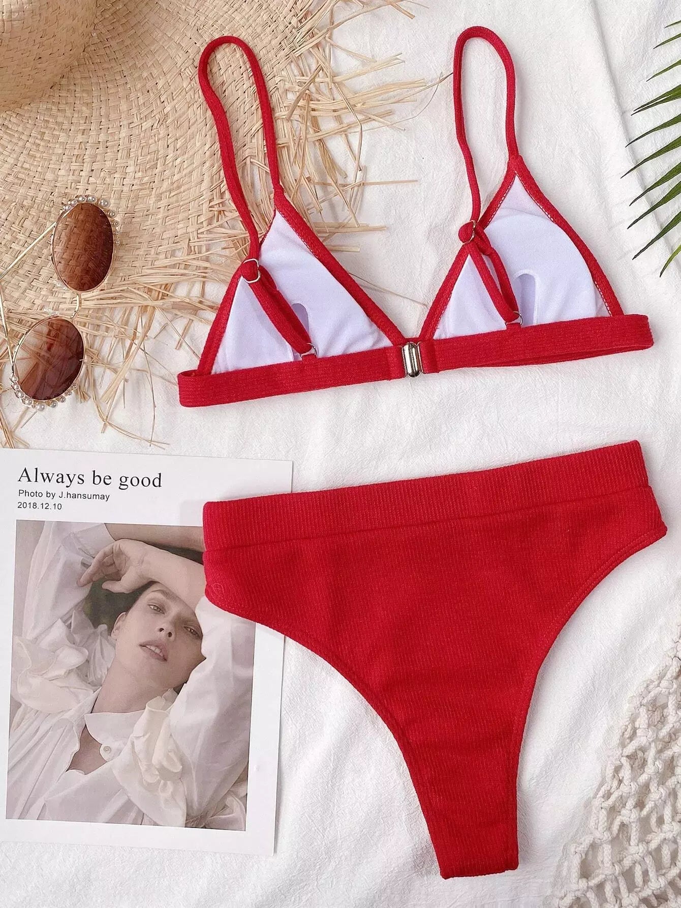 الملابس - ملابس سباحة بكيني مثلثة عالية الخصر
