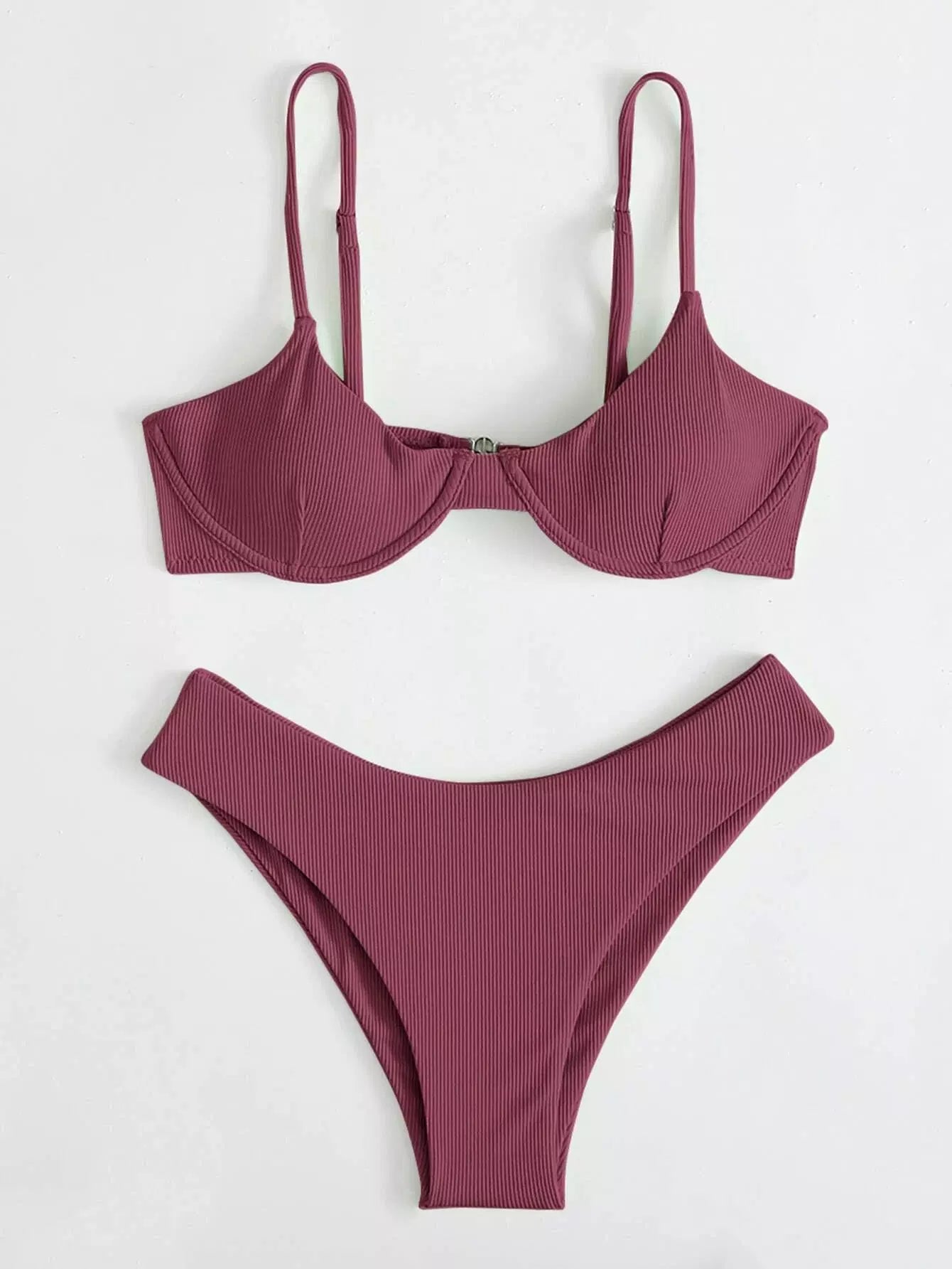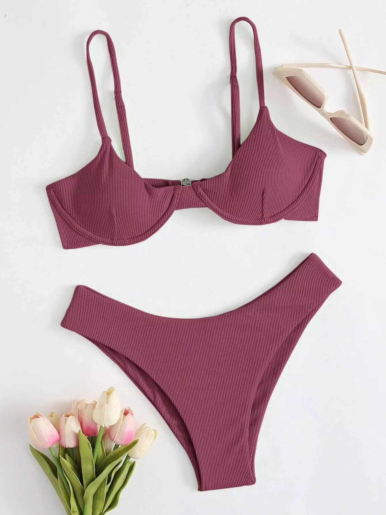 بدلة سباحة بيكيني بحمالات ضلعية تحت السلك