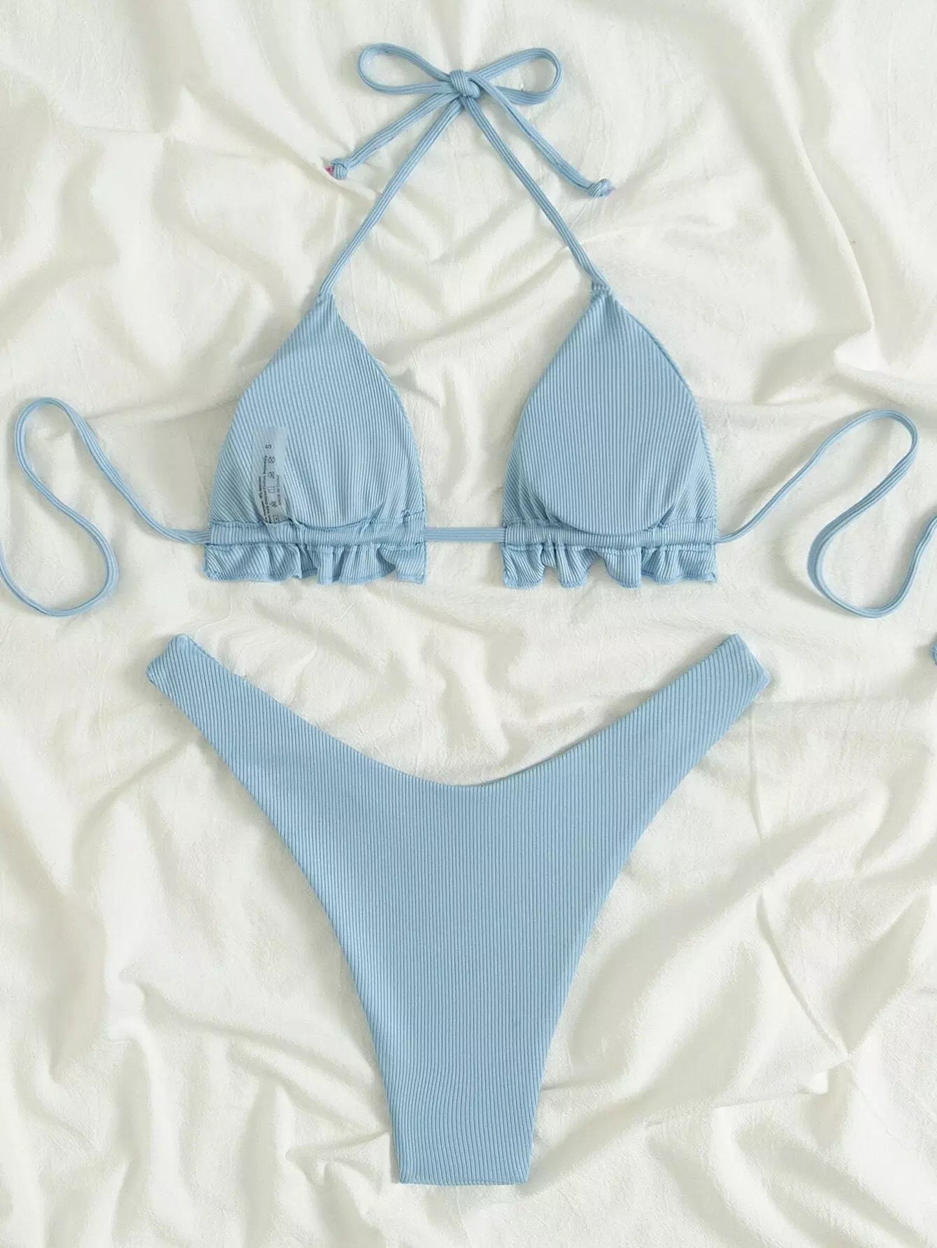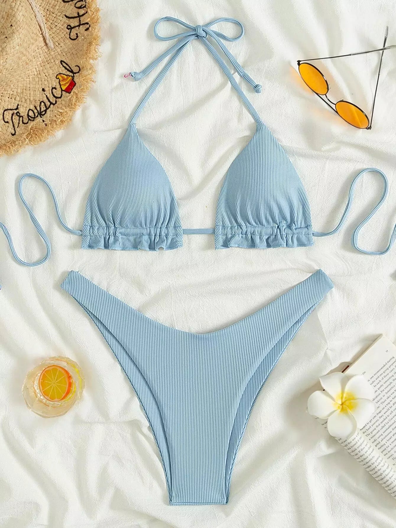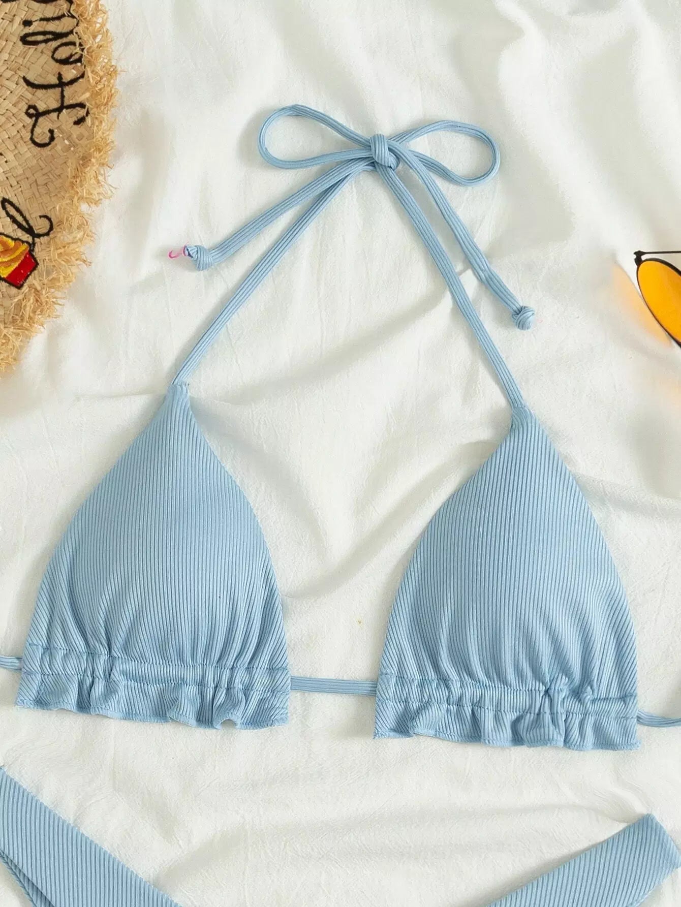 بدلة سباحة بيكيني بيكيني مثلث بحافة كشكش مضلعة