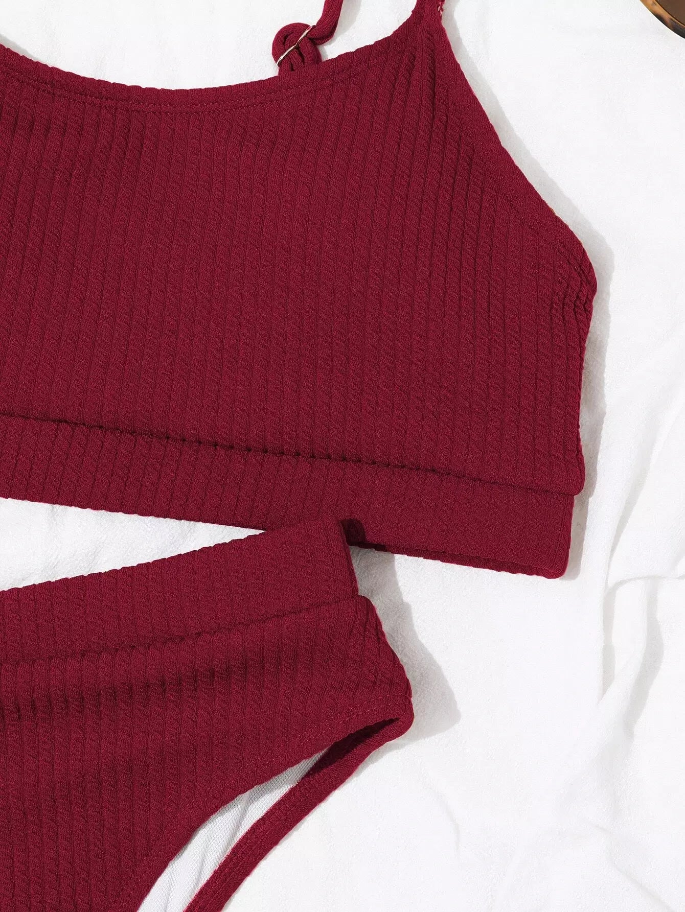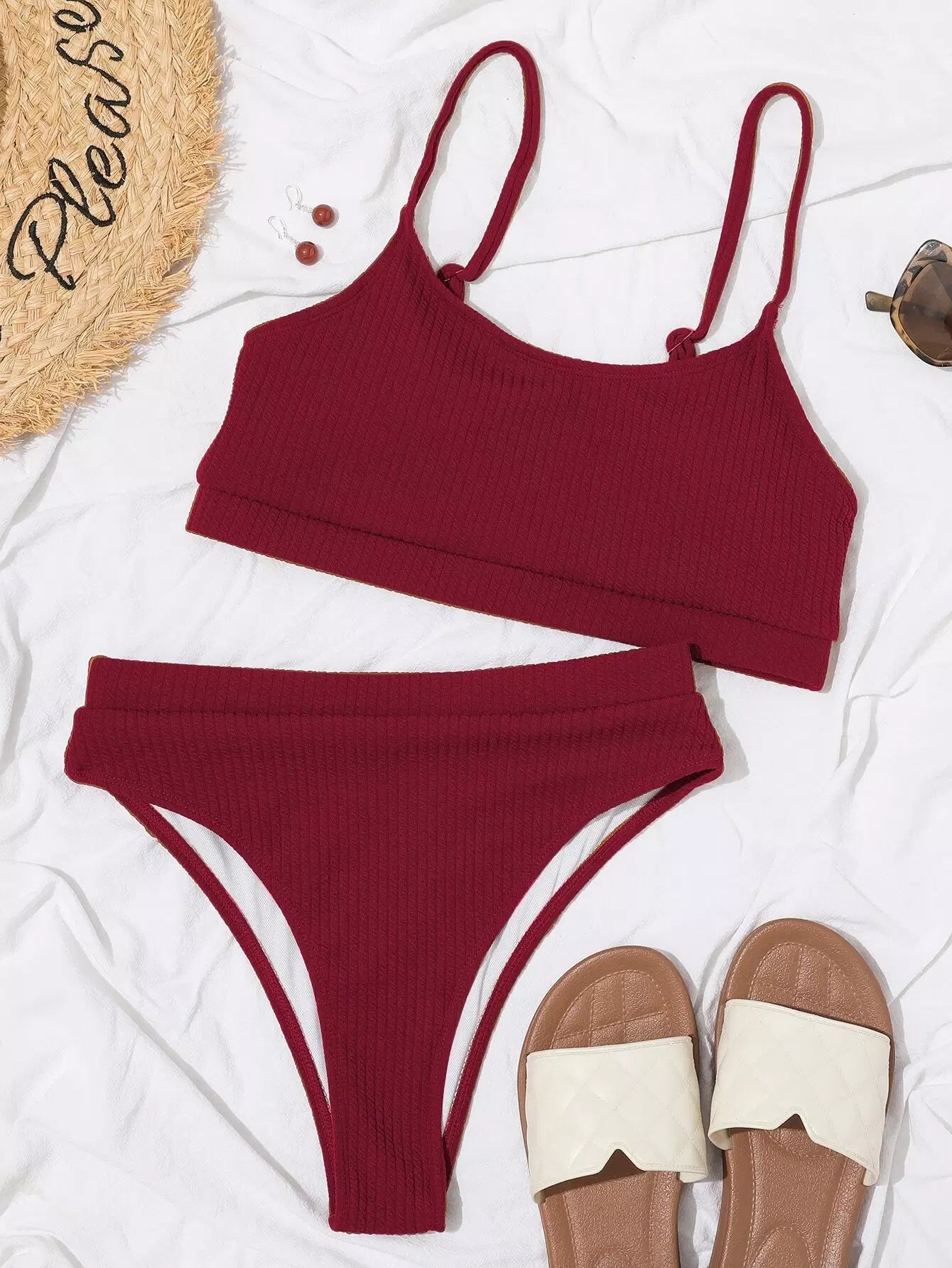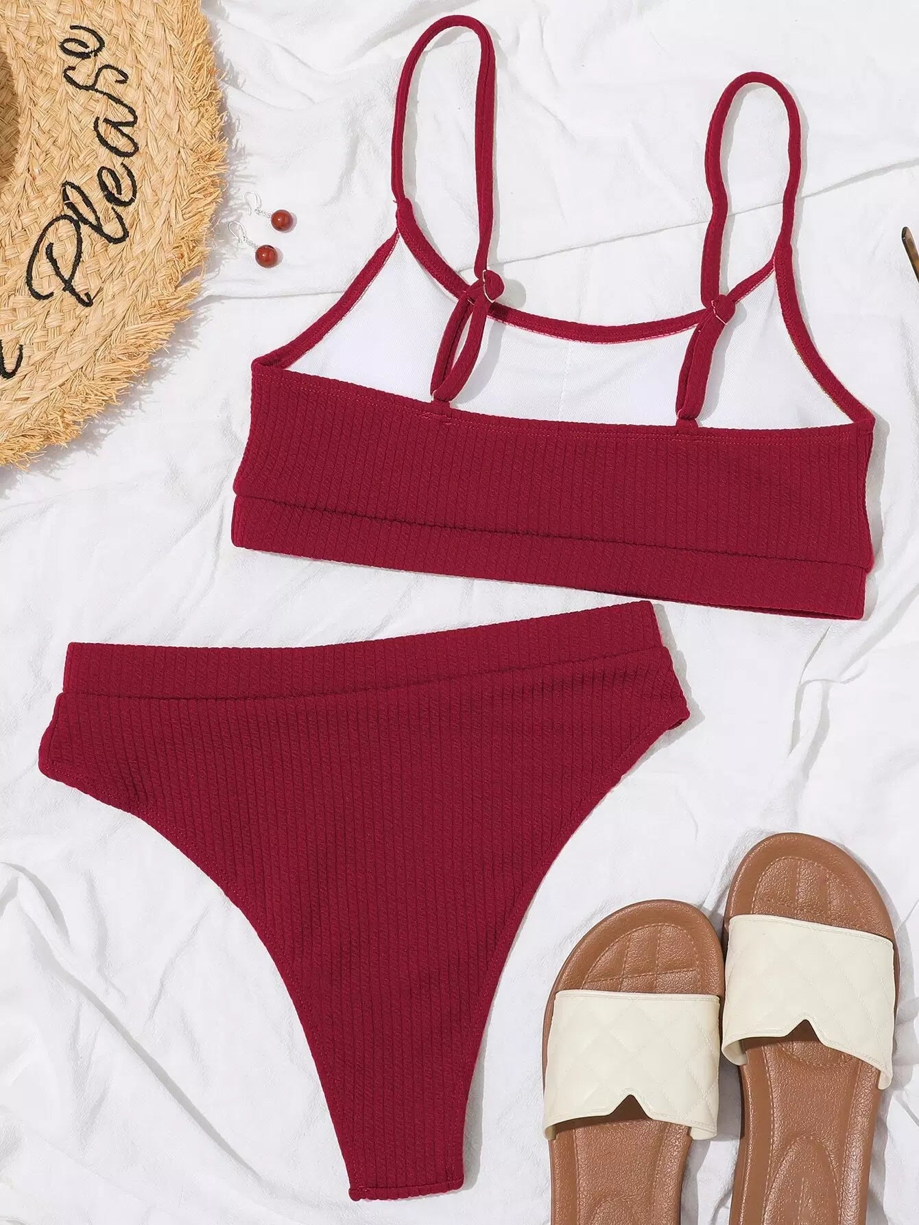 بدلة سباحة بيكيني عالية الخصر مضلعة