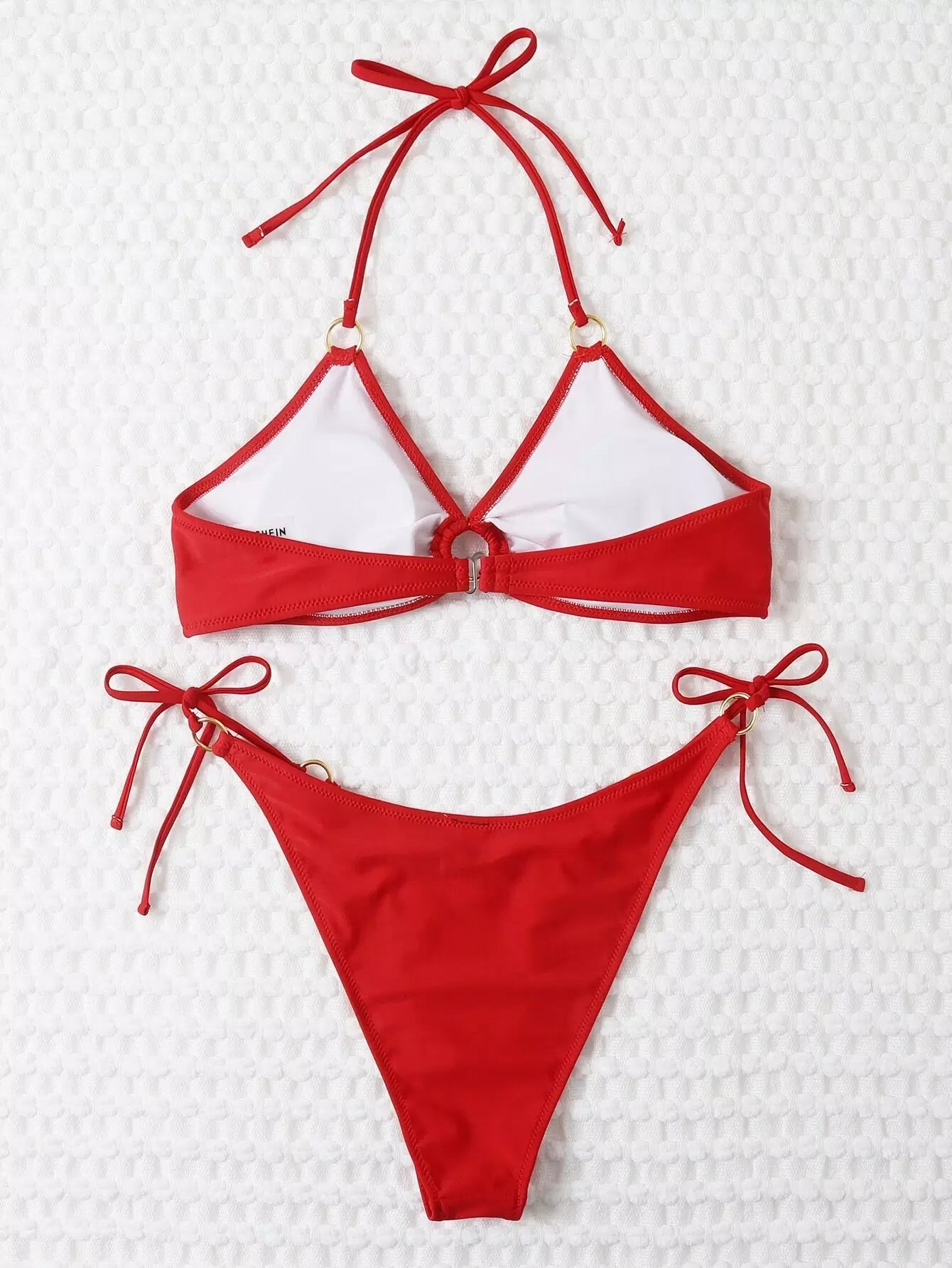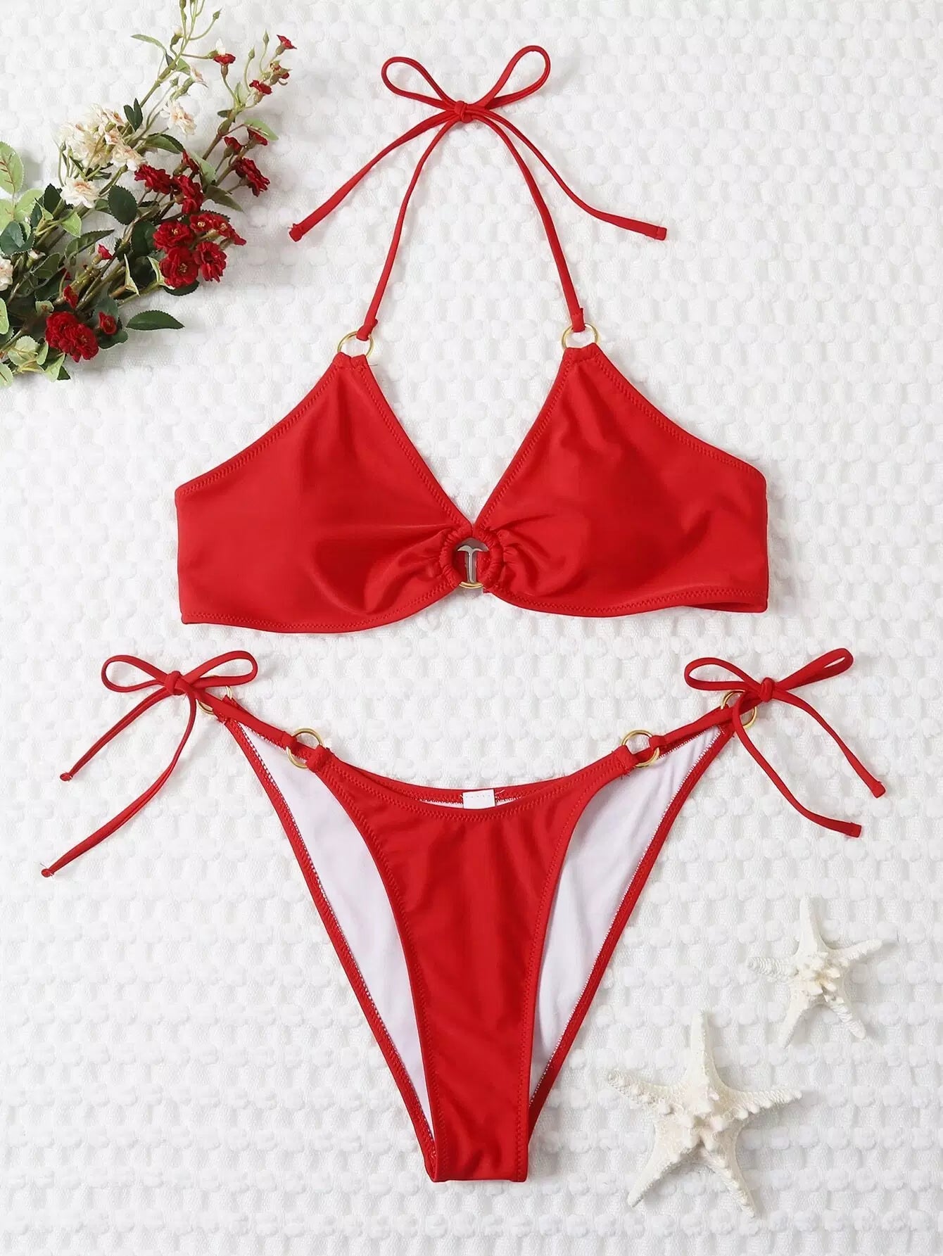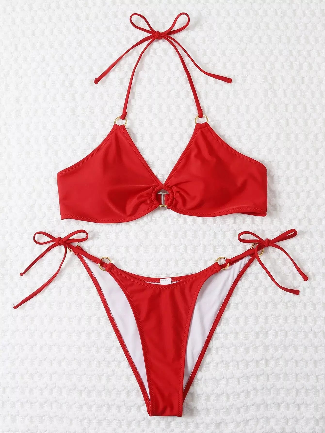 مايوه بكيني سباحة بيكيني بربطة رباط جانبي مربوط بحلقة