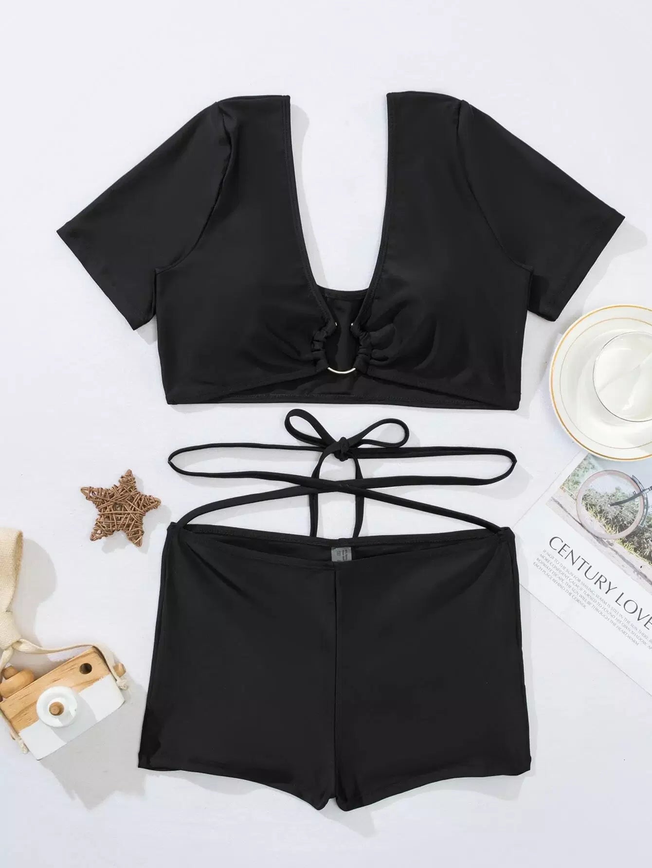 شورت سباحة بيكيني قصير مربوط بحلقة خاتم متصل
