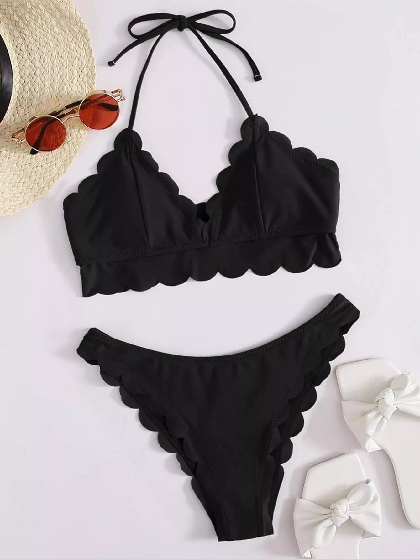 النساء - ملابس السباحة بيكيني ذات حواف صدفية